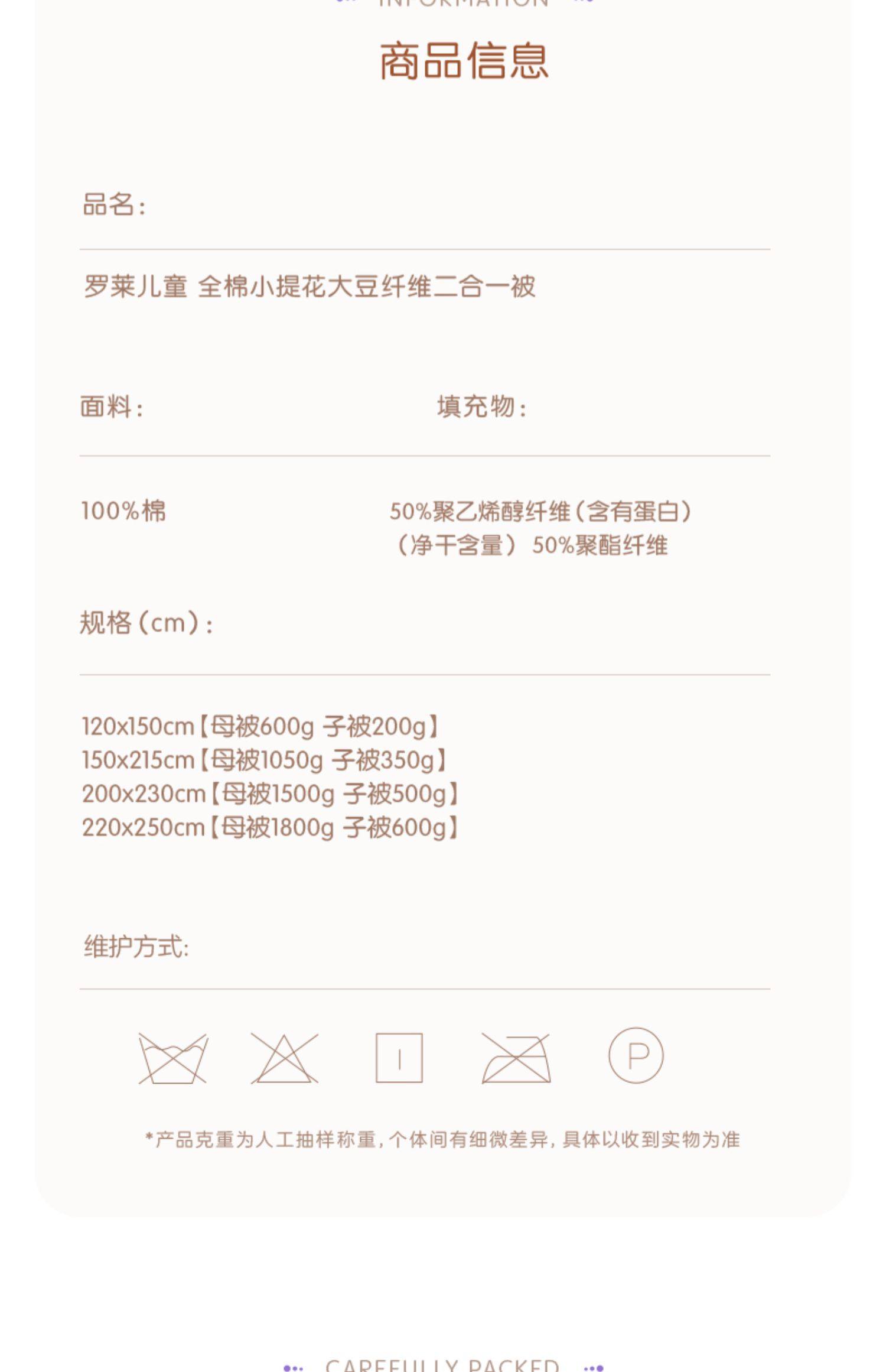 罗莱儿童 XS 全棉小提花大豆纤维春秋被