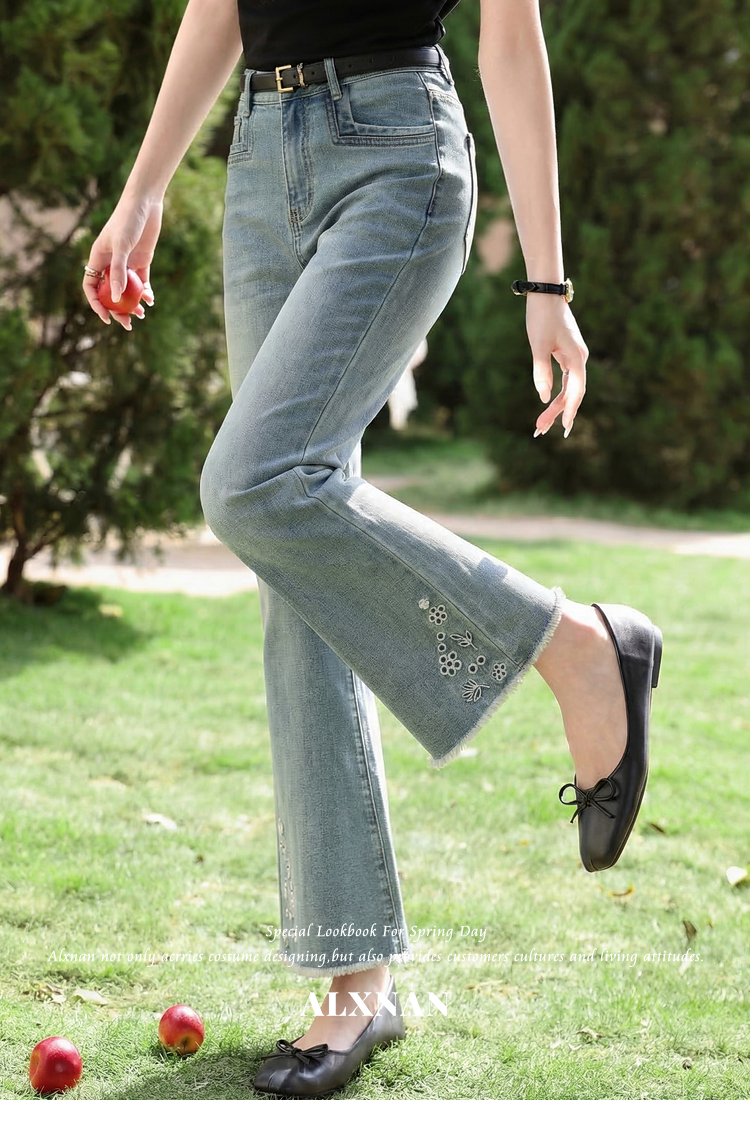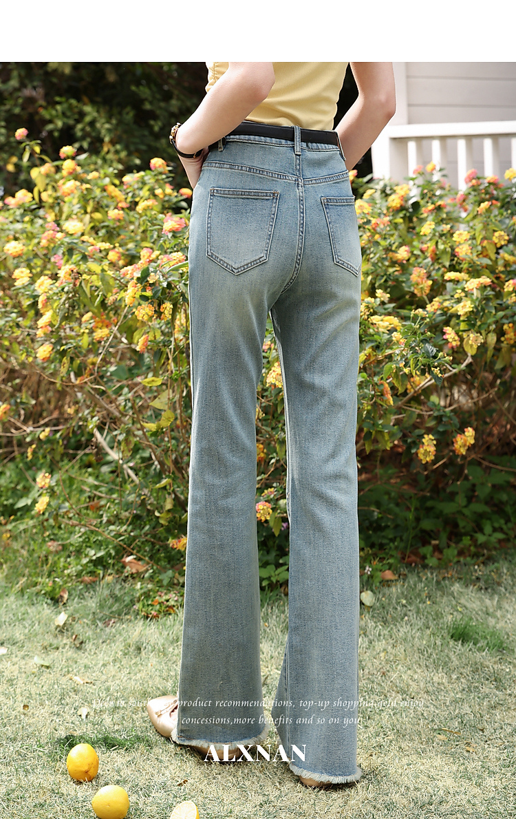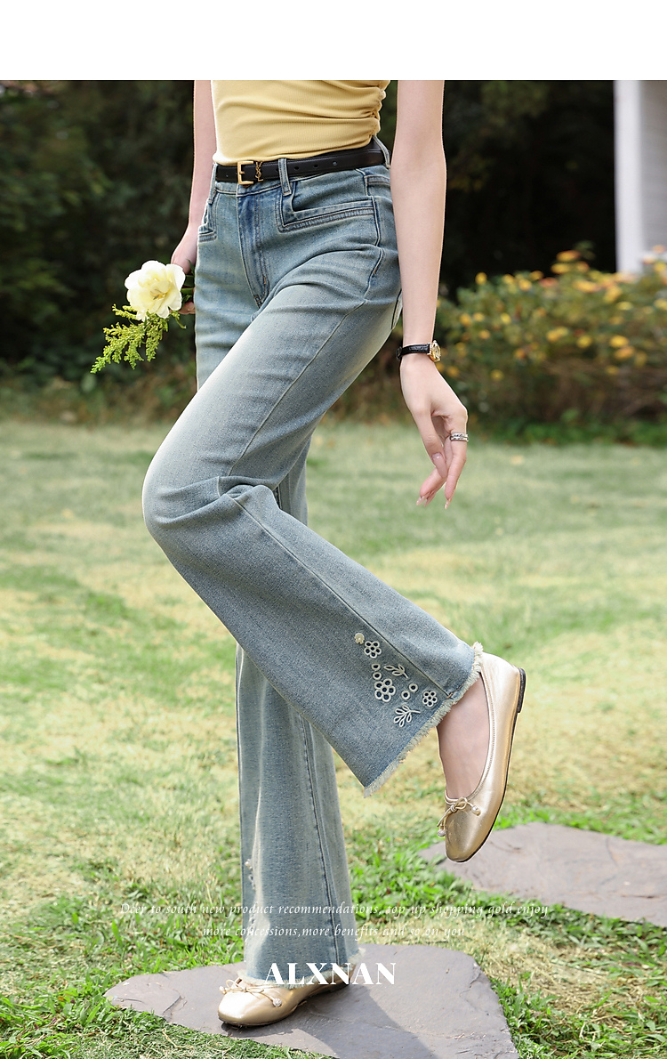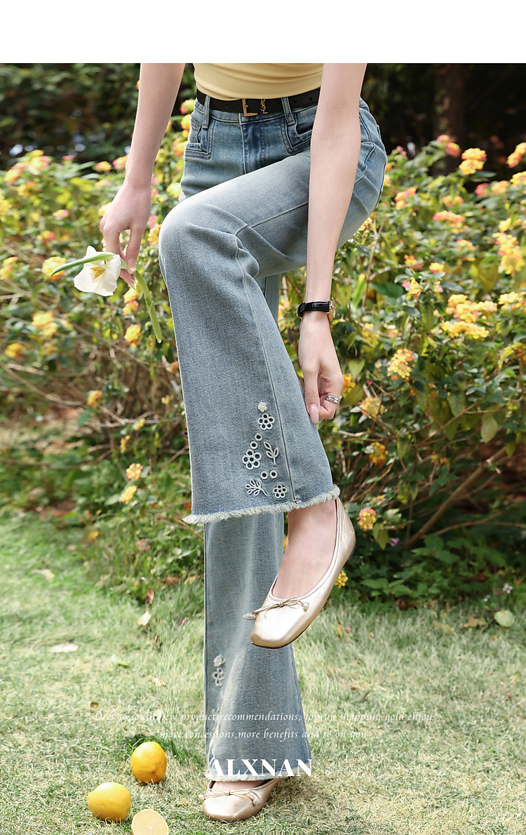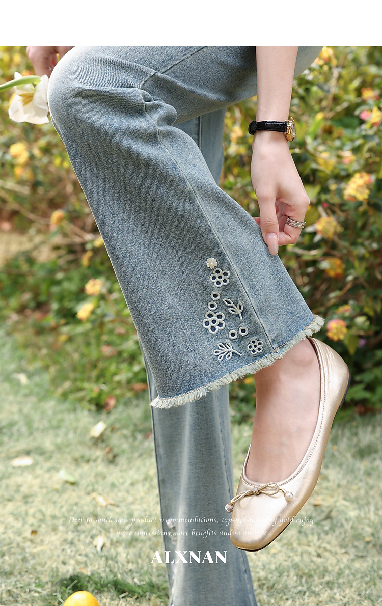 鹿向南「蓝屿花影」复古蓝色高腰显瘦牛仔裤女夏季小个子直筒长裤