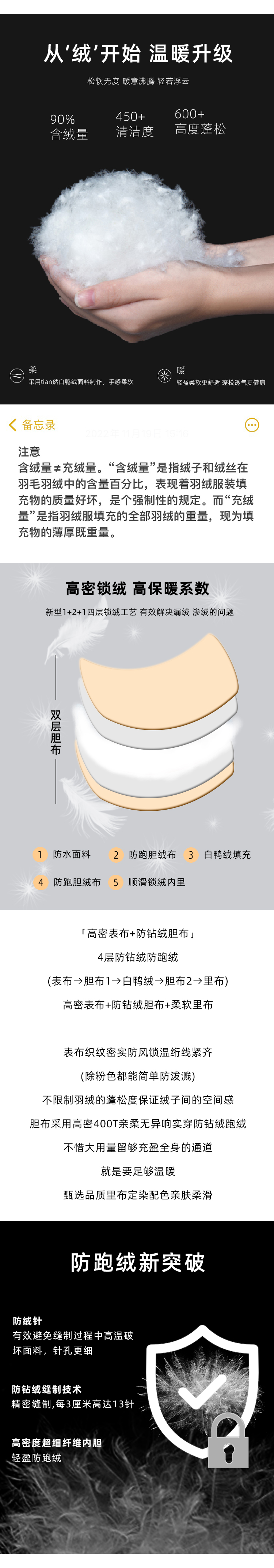 | 面料: | 涤纶 | 填充:90%白鸭绒 | ||||