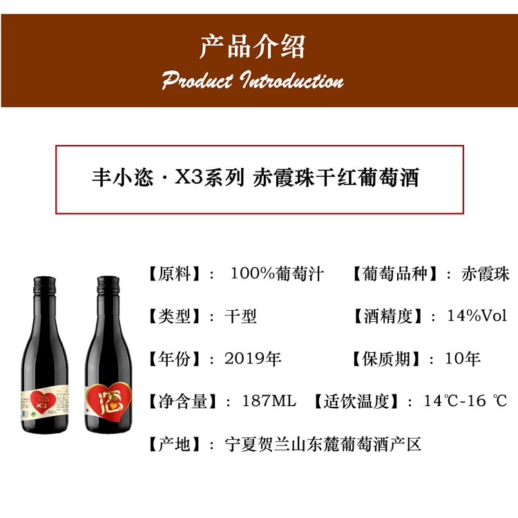 【丰小恣-宁夏红酒】丰小恣·X3系列 赤霞珠干红葡萄酒 187ML 100%葡萄原汁 贺兰山东麓产区 酒庄直售 顺丰包邮到家