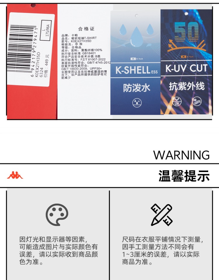 Kappa卡帕短袖2024新款情侣男女夏运动圆领防泼水T恤休闲防晒半袖K0EX2TH35D