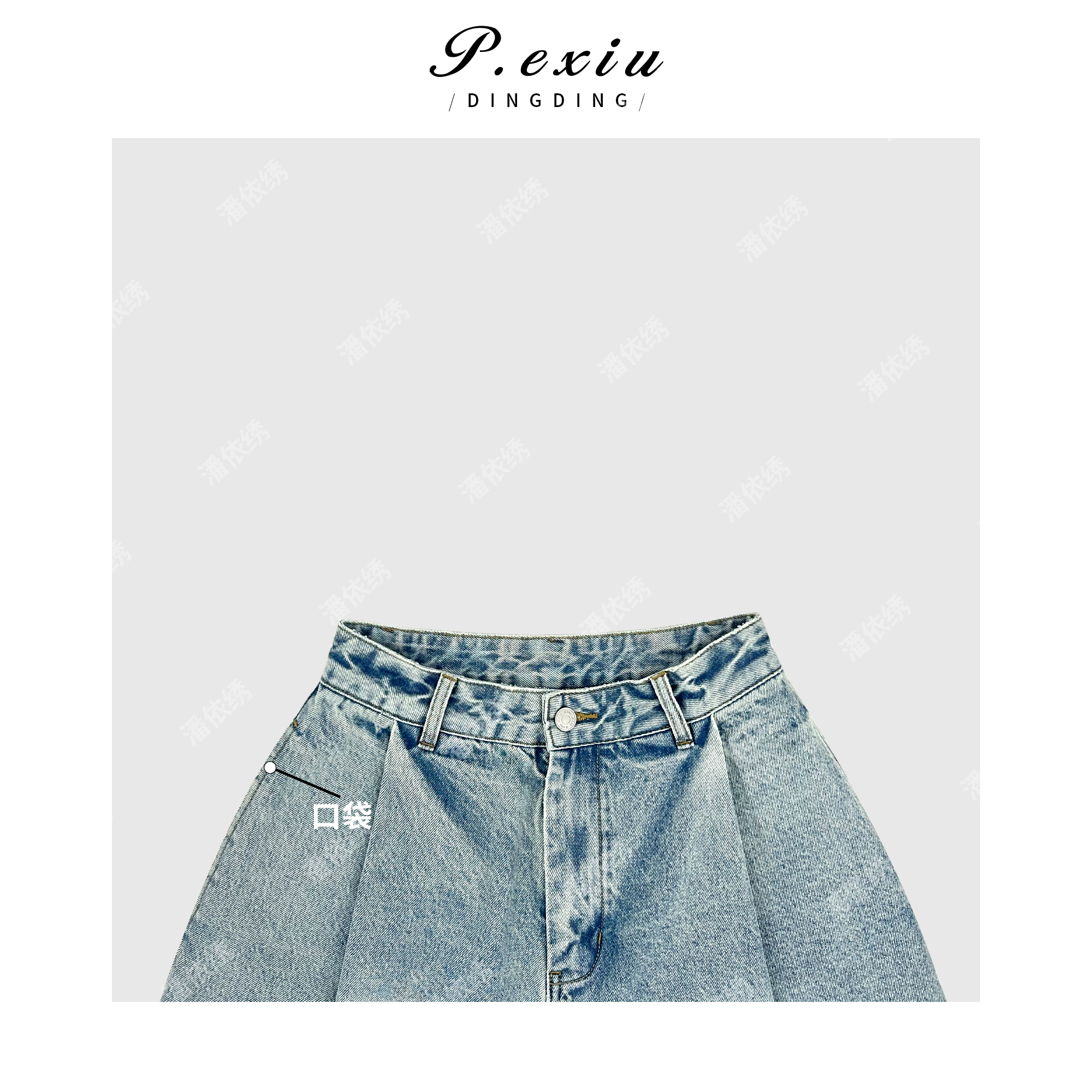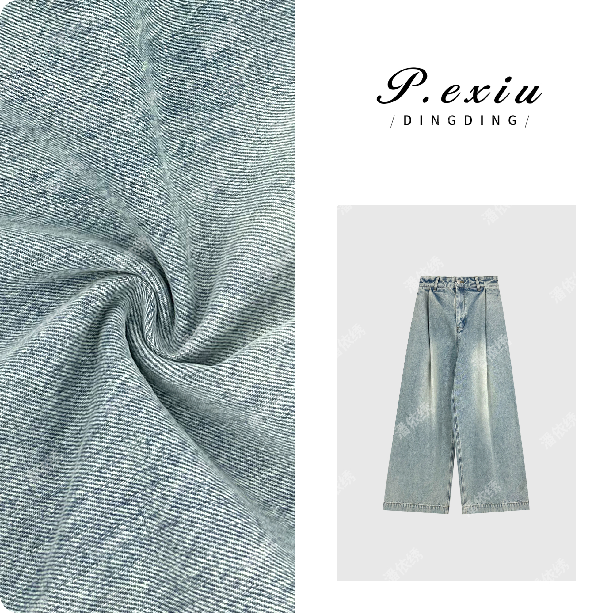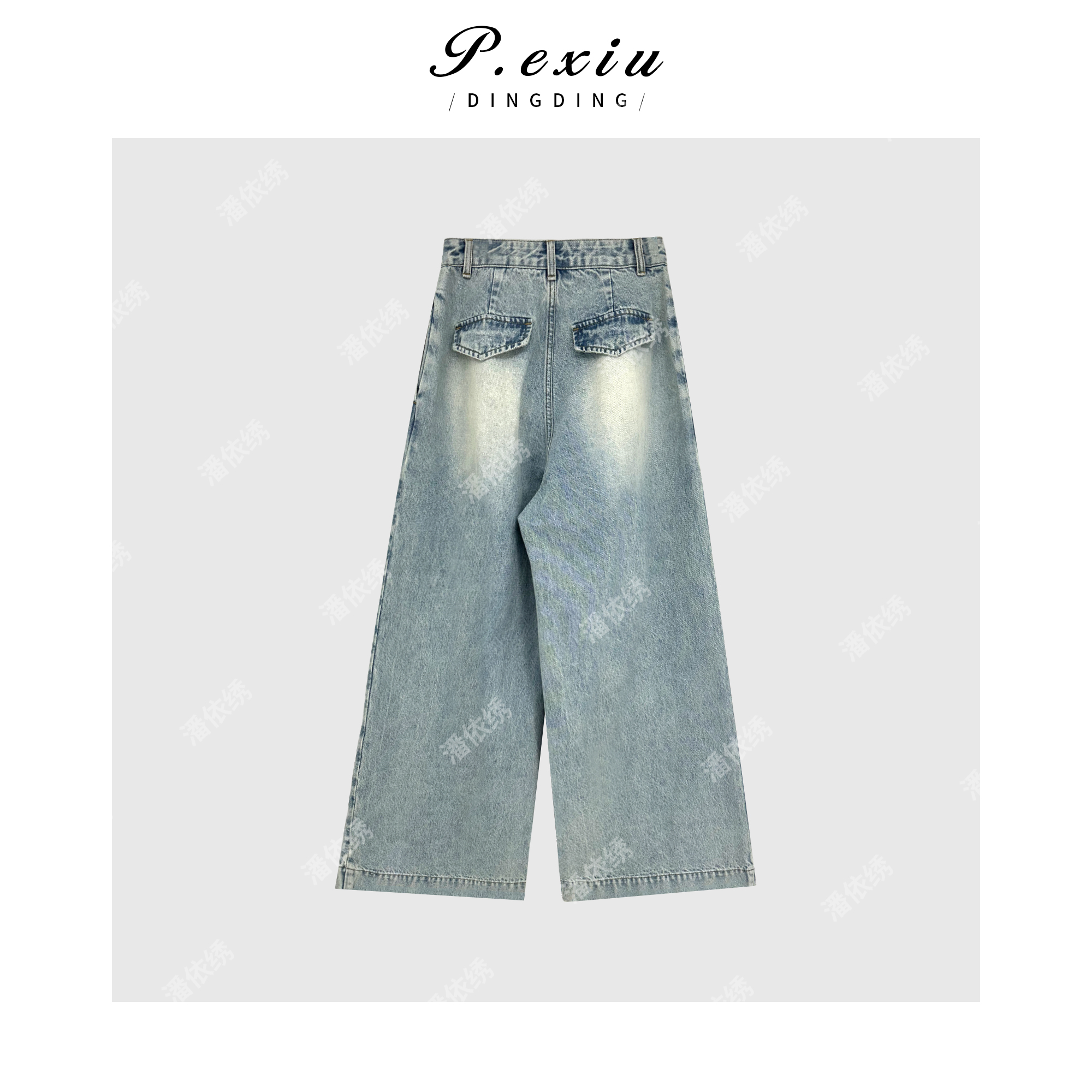PanYiXiu/潘依绣重工水洗磨白褶皱设计阔腿休闲牛仔裤 D6294