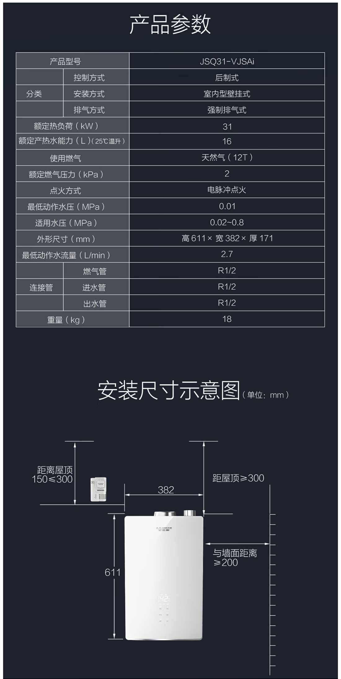 史密斯/燃气热水器/JSQ31-VJSAI/16升燃气热水器1级静音零冷水智慧互联16升 智慧互联零冷水一级静音款