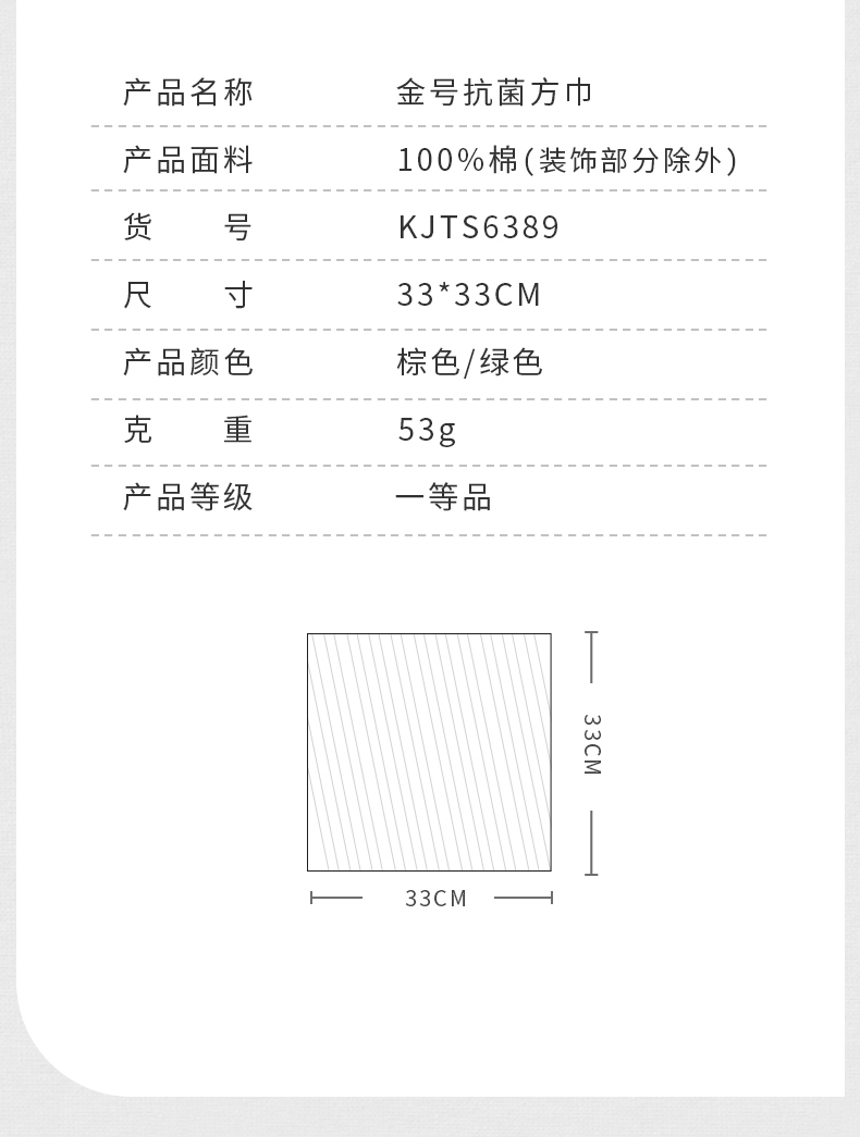 金号4A级抗菌方巾KJTS6389
