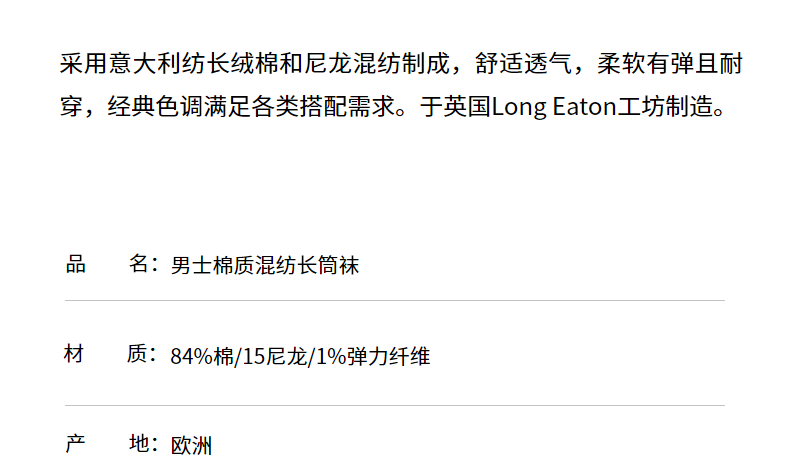 SUNSPEL男士棉混纺长筒袜男袜经典纯色袜子