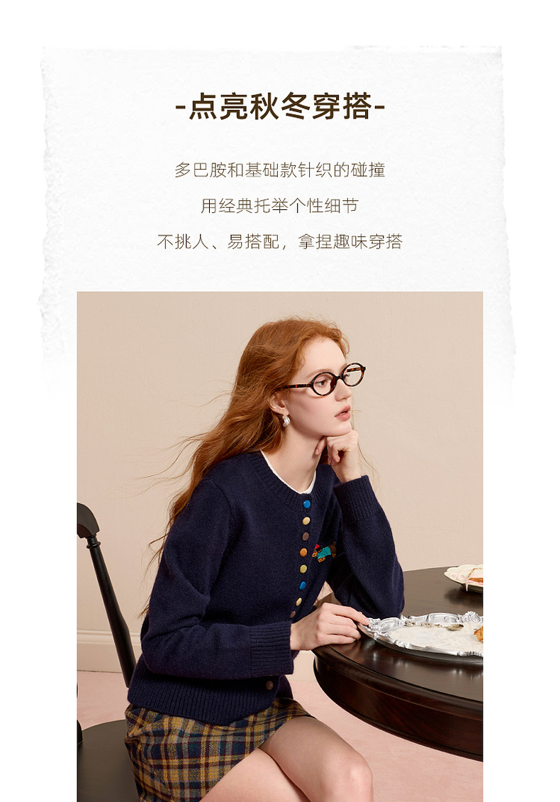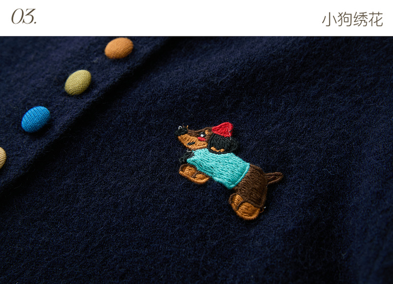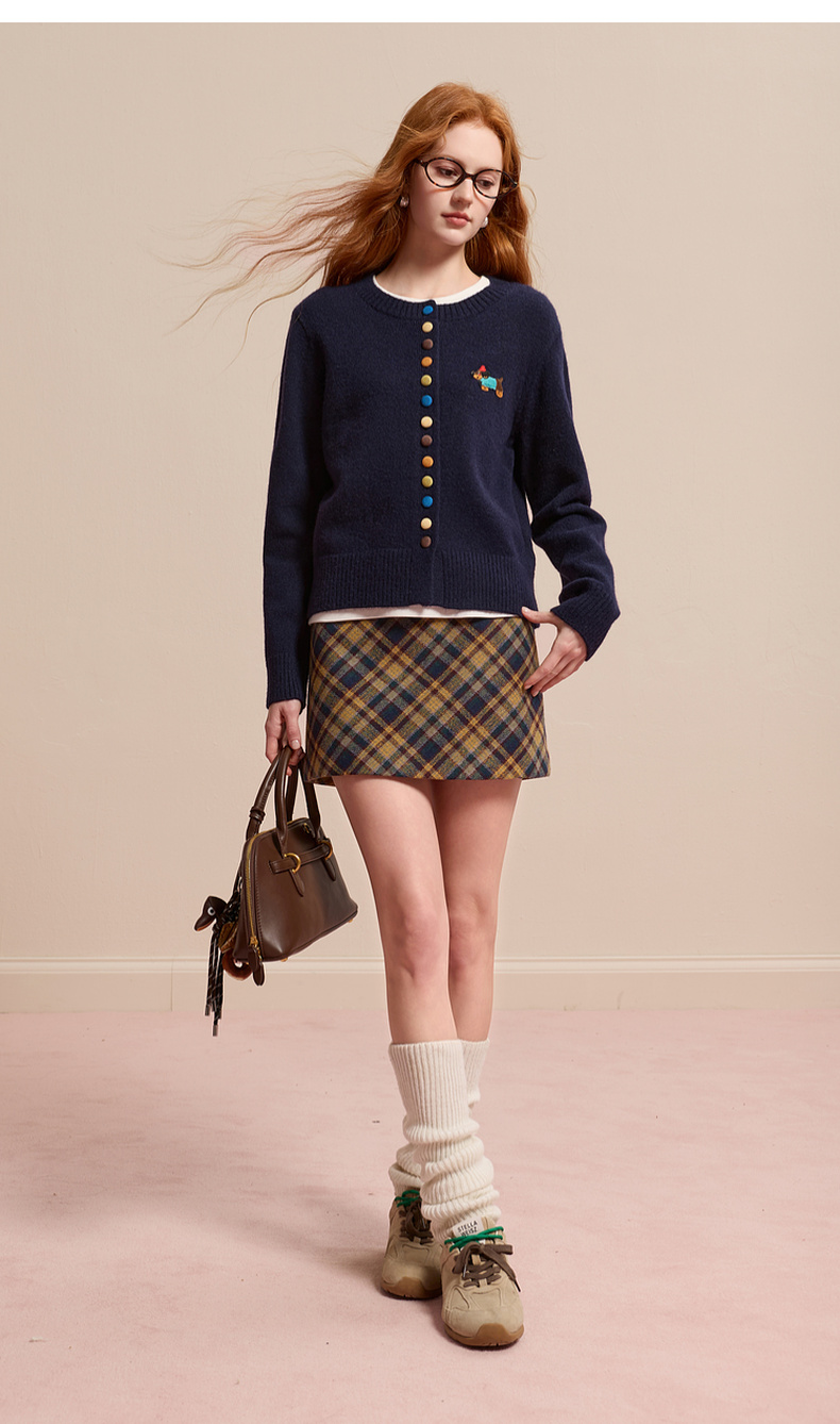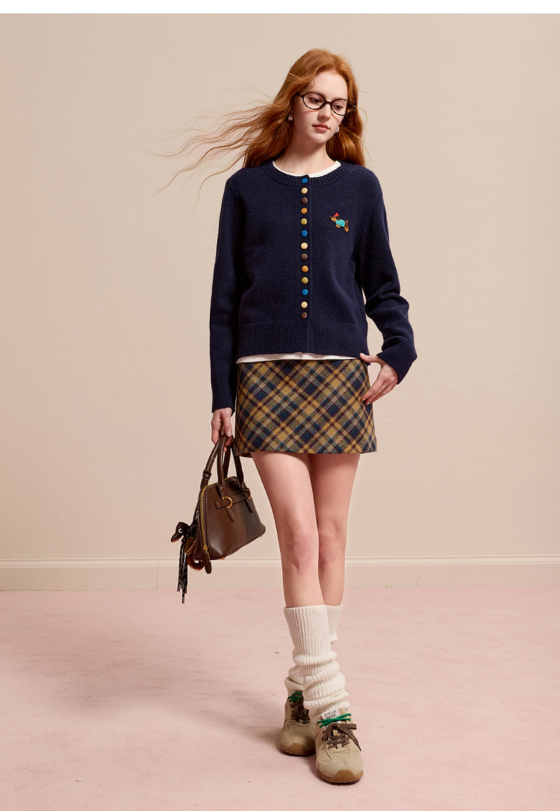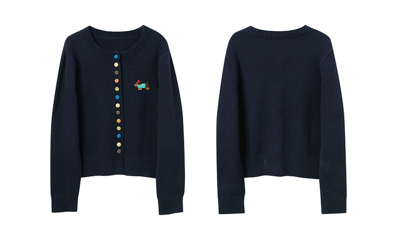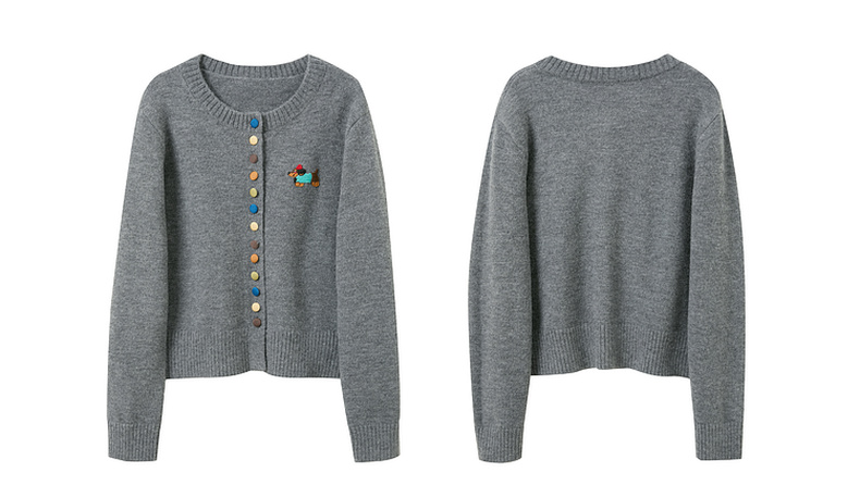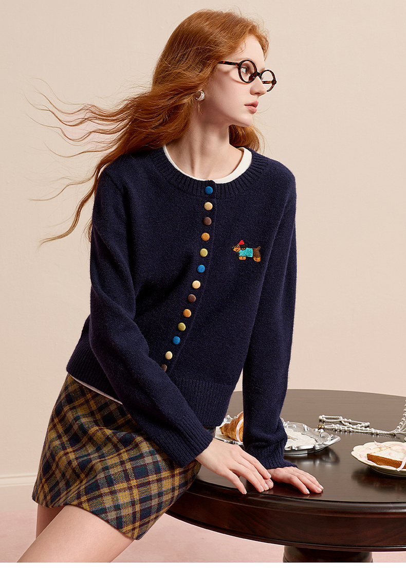 三彩2025冬季新款彩色单排扣小狗针织衫开衫外套圆领长袖百搭M