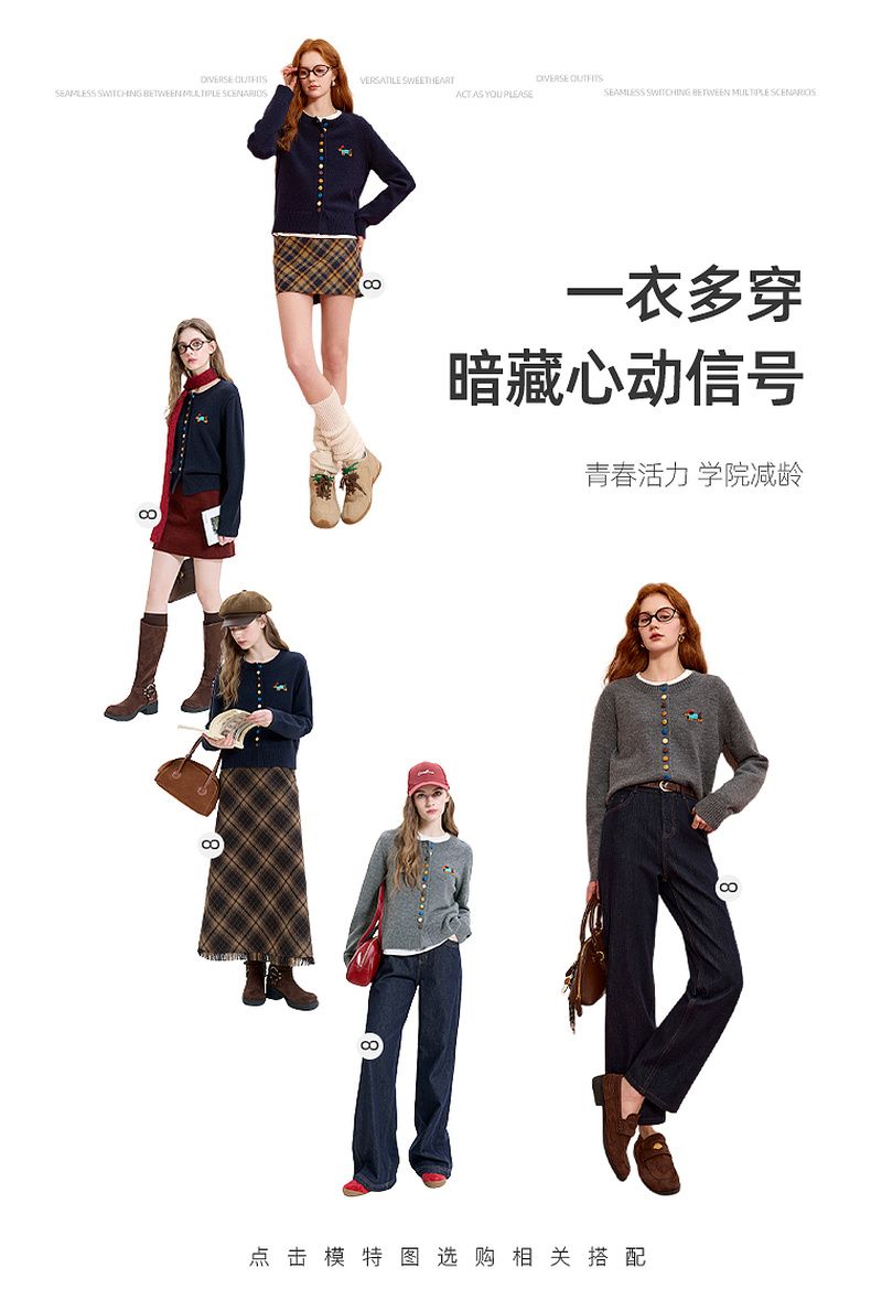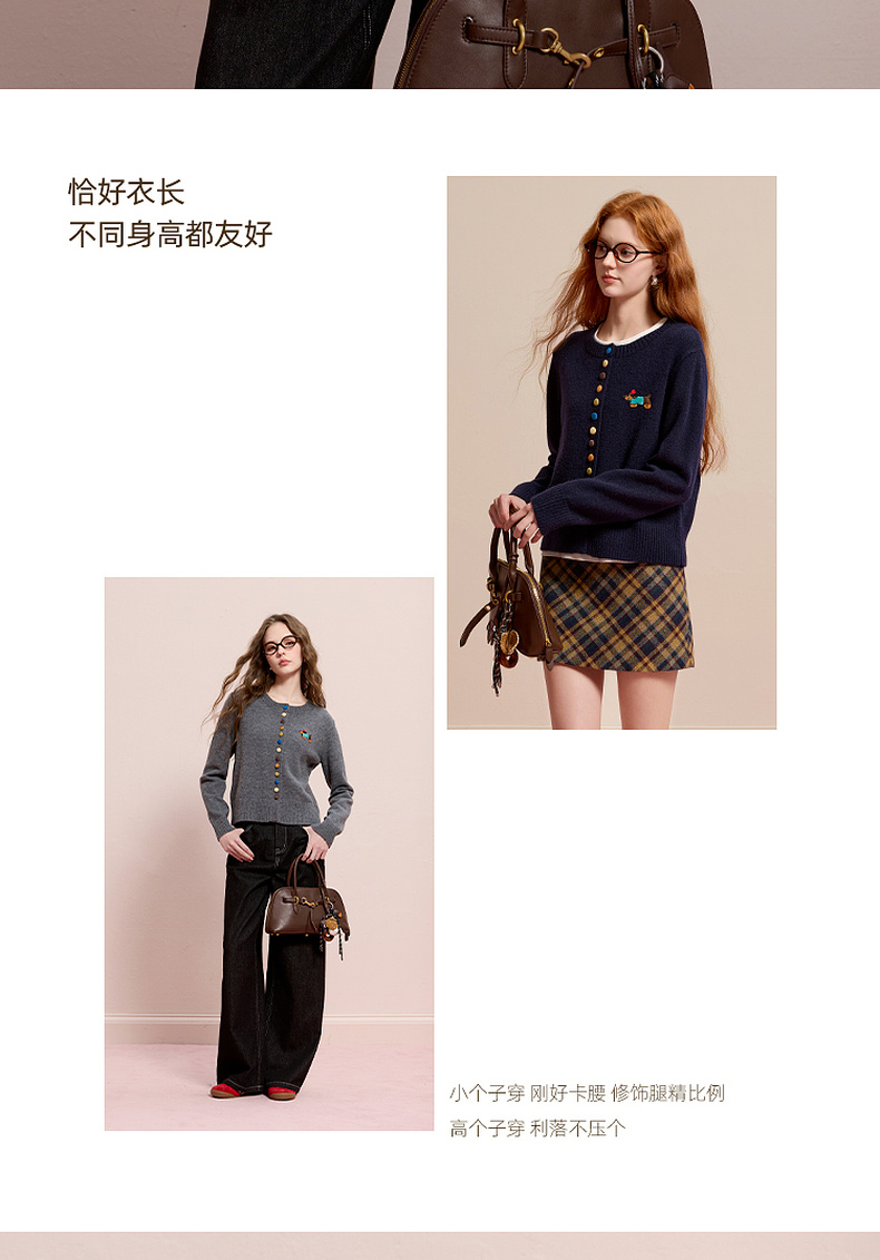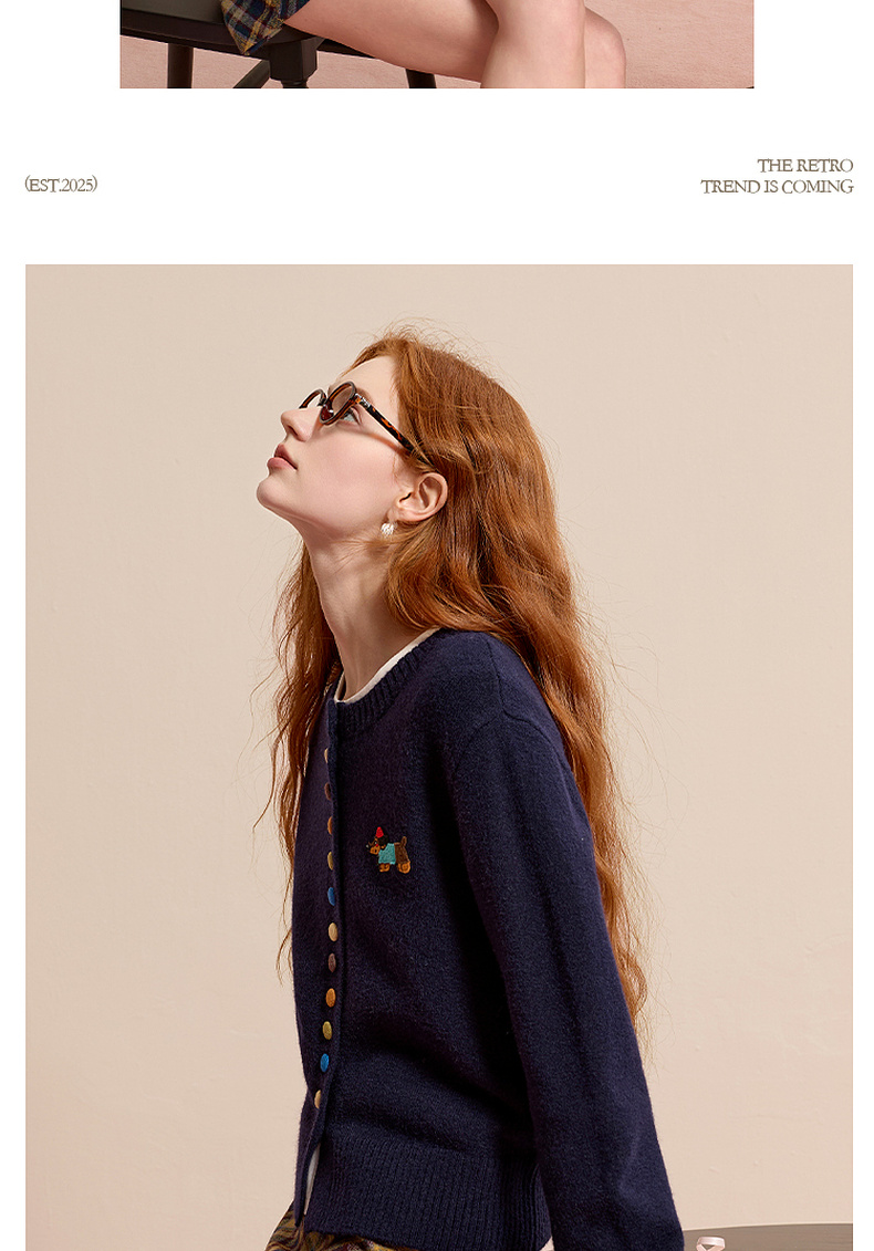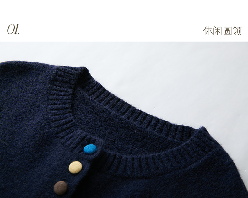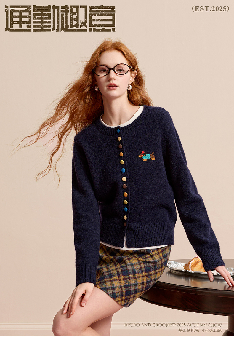 三彩2025冬季新款彩色单排扣小狗针织衫开衫外套圆领长袖百搭M