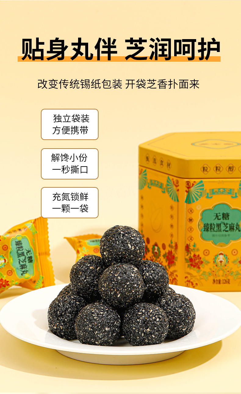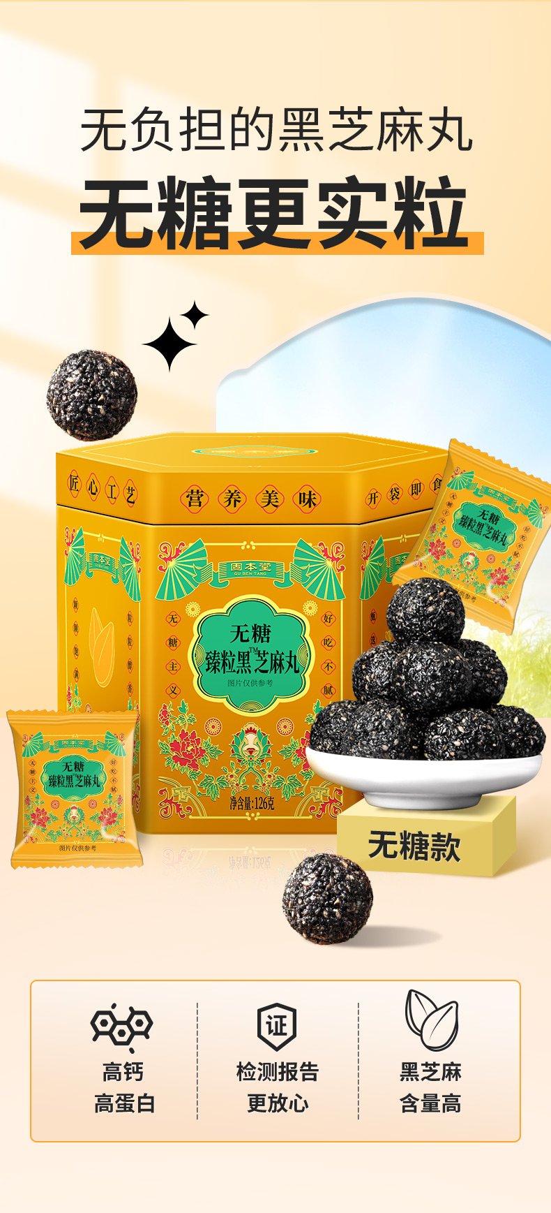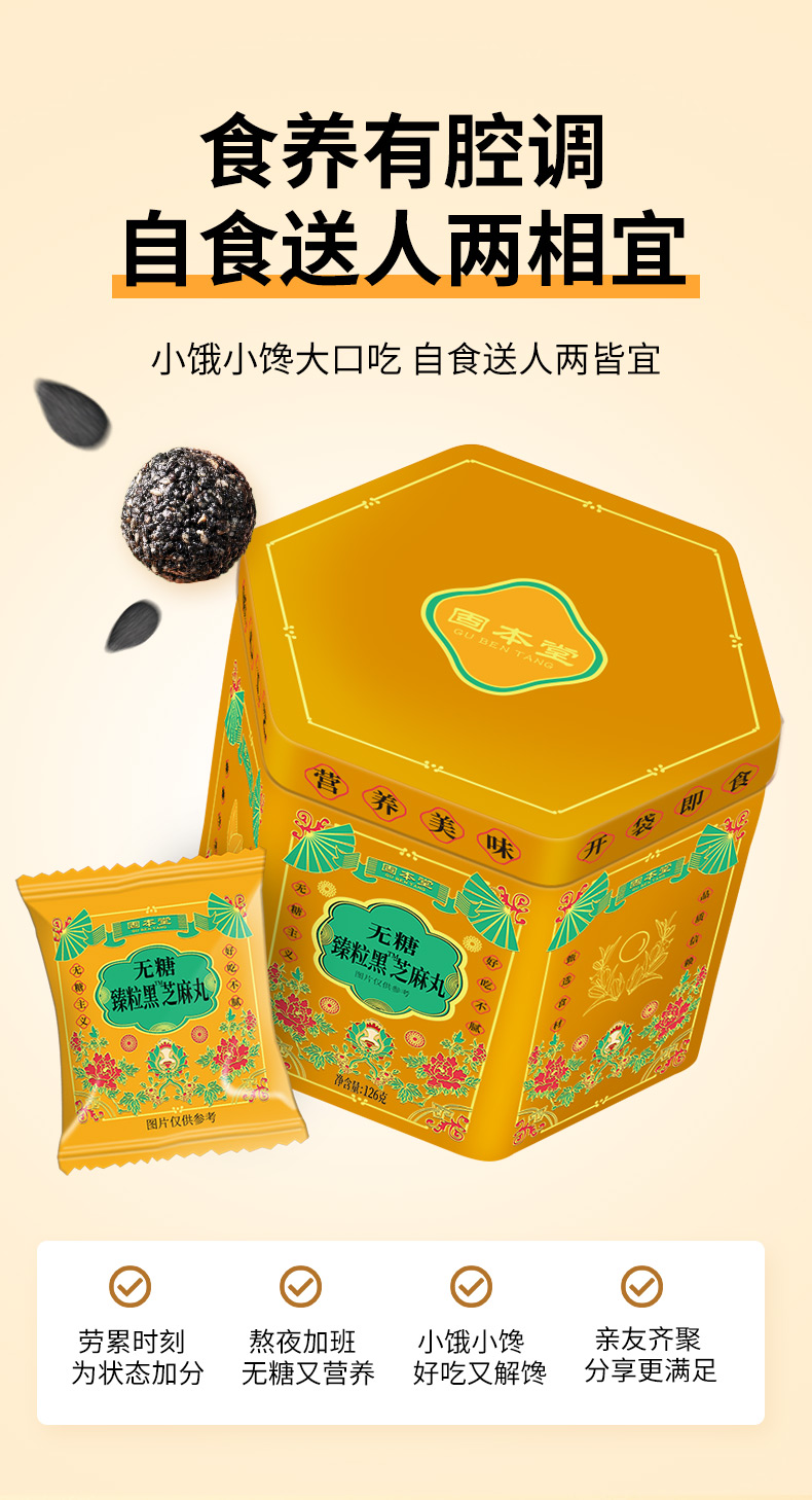 【固本堂】无糖黑芝麻丸126克铁盒装(126克*3罐)