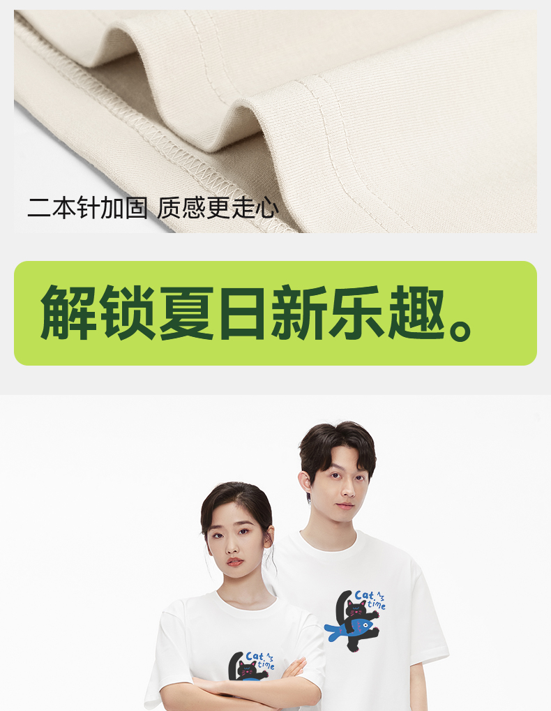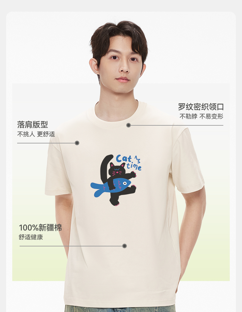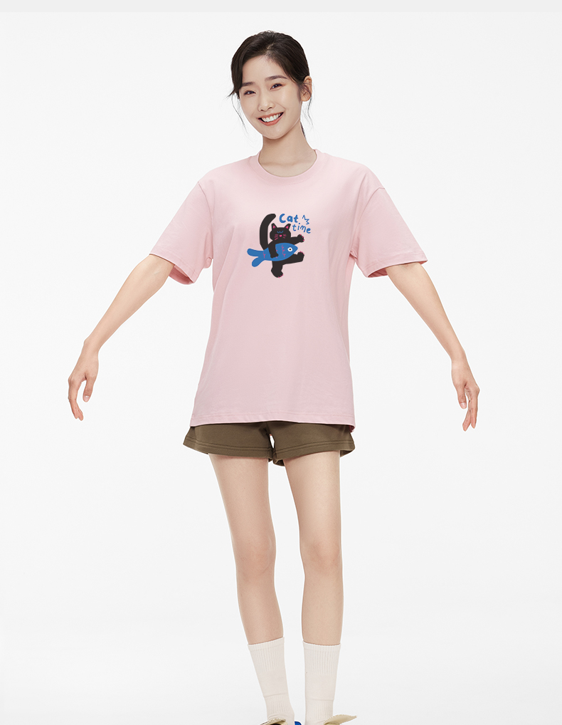 「棉的美学」纯棉摸鱼印花休闲多色系T恤夏季新款宽松短袖男女同款