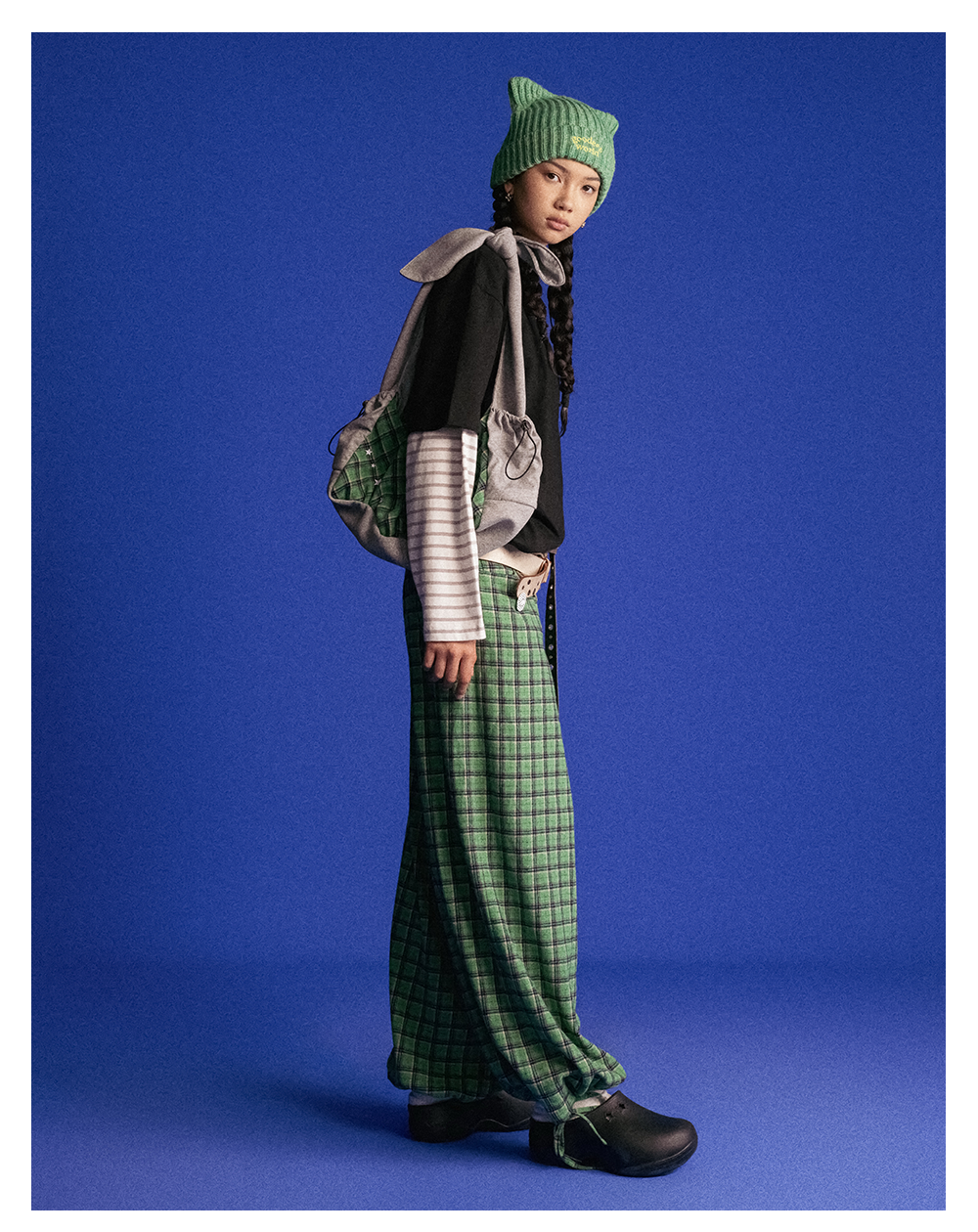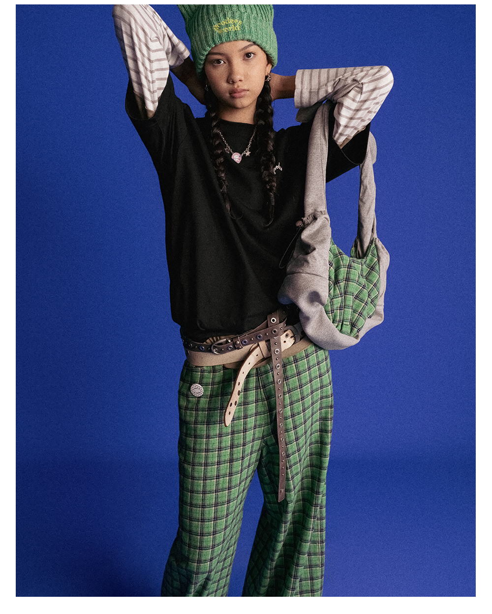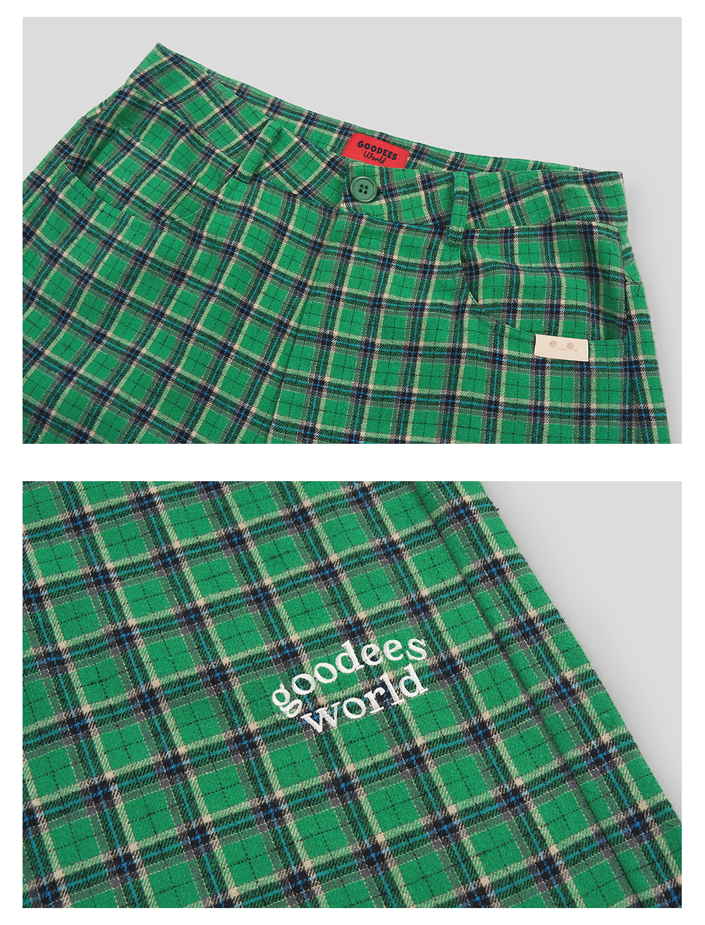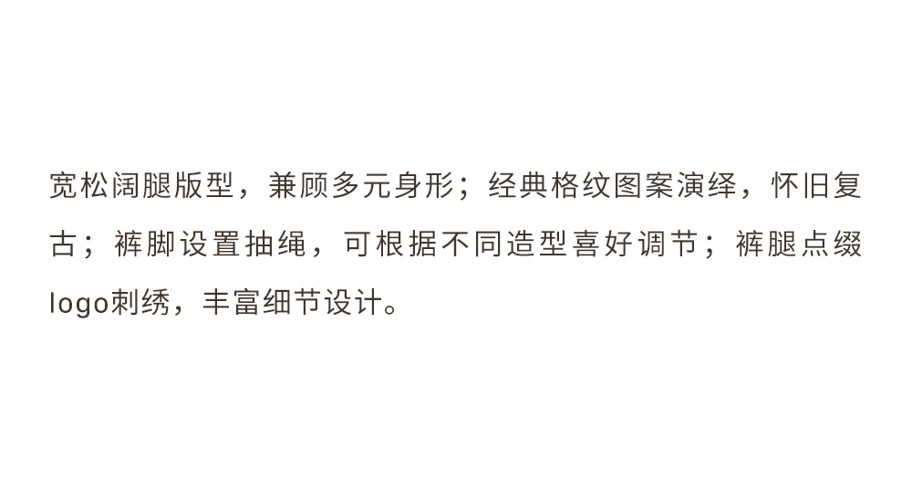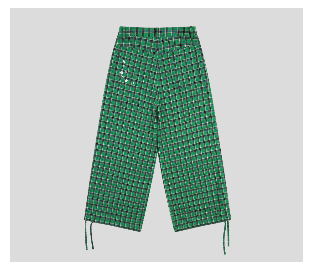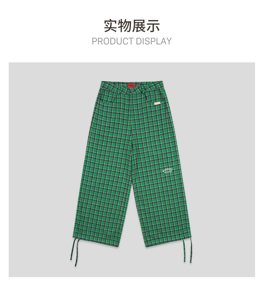 GOODBAI GOODEES 刺绣logo格纹阔腿收口长裤