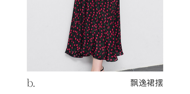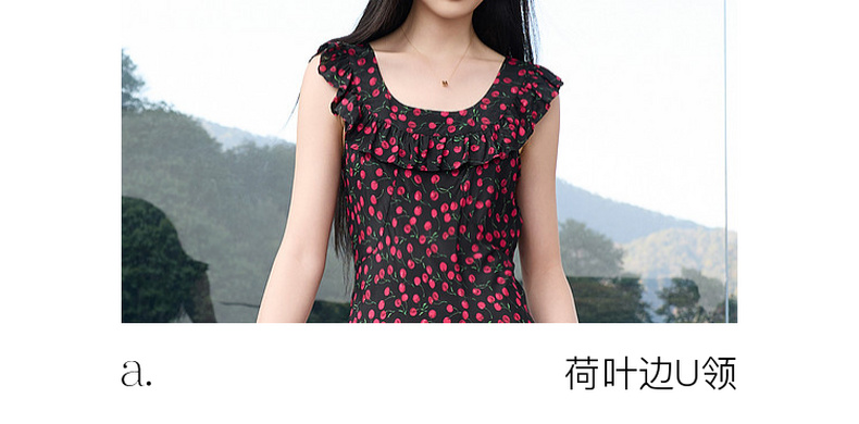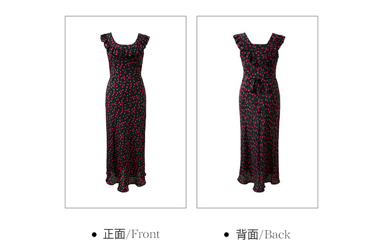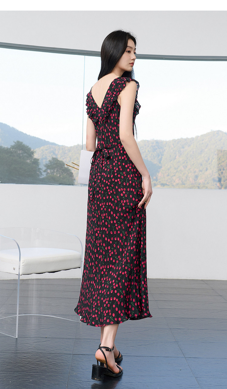 三彩2026春季新款荷叶边碎花连衣裙A字裙收腰长裙气质浪漫法式S