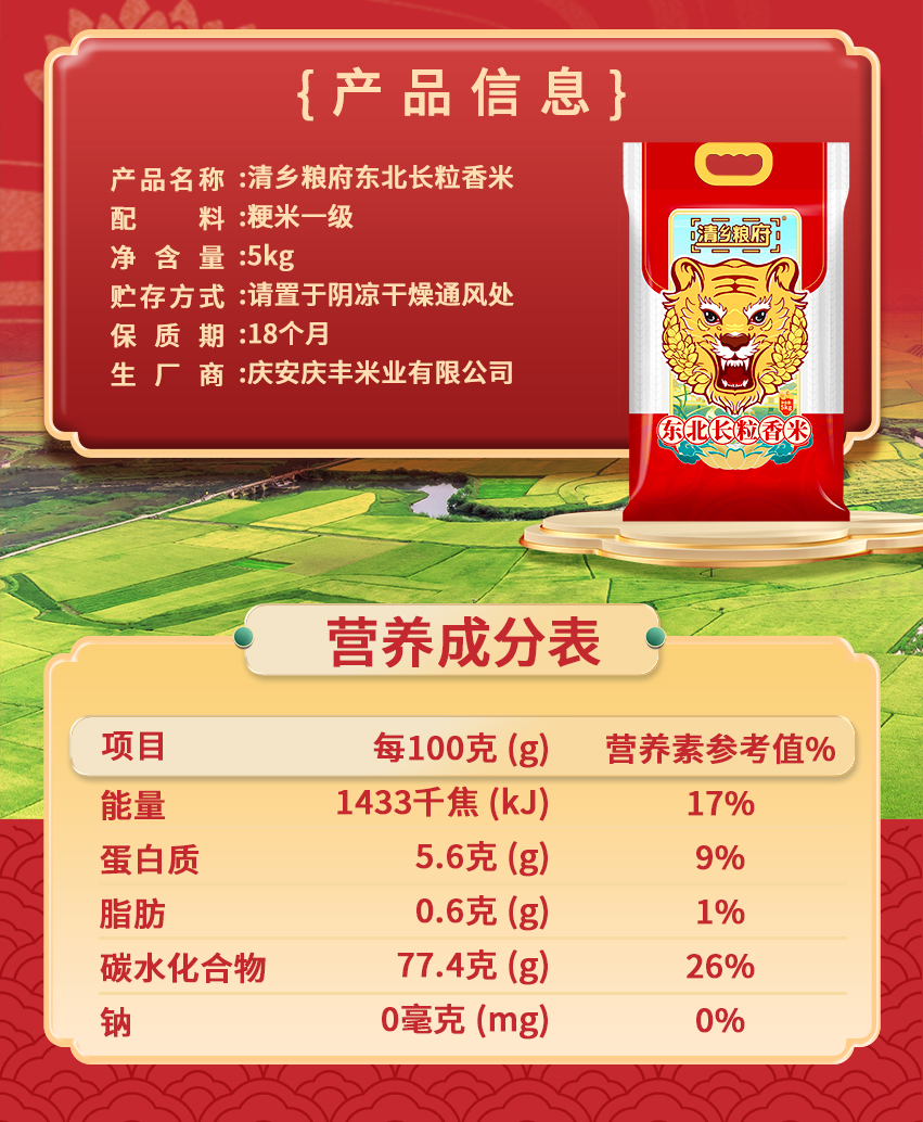 【品名】新米上市-清乡粮府东北长粒香米(2面包装)【产地】黑龙江省绥化市
