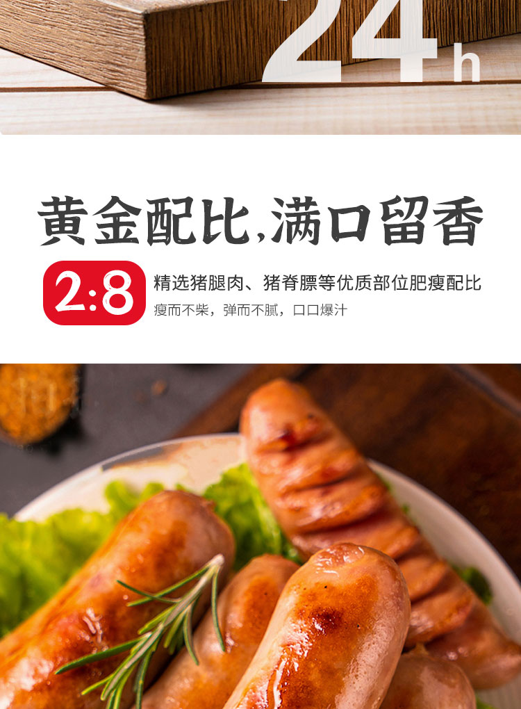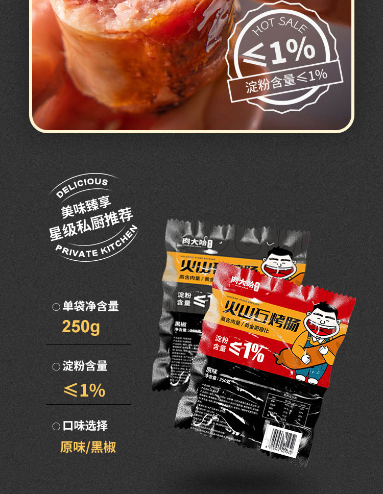 【99-50 199-100】肉大哈火山石烤肠250g*6袋鲜肉肉肠早餐夜宵来一根