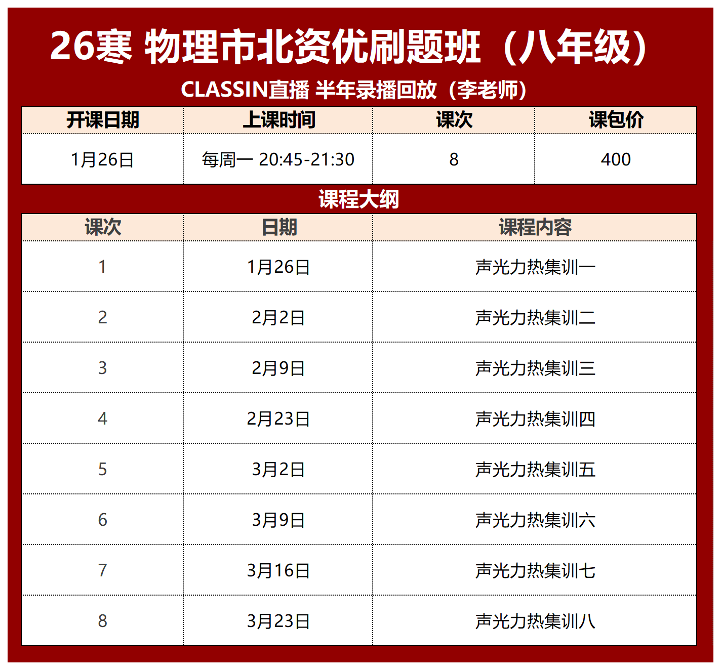 26寒 物理市北资优(八年级)试听