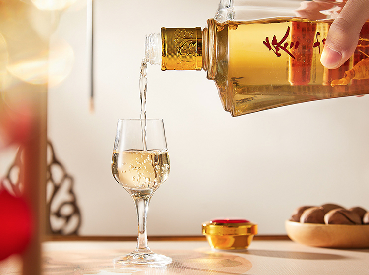 一打开,就能闻到淡淡的参香,它没有传统yao酒的刺激苦涩,口感浓香柔和。轻轻抿上一口。