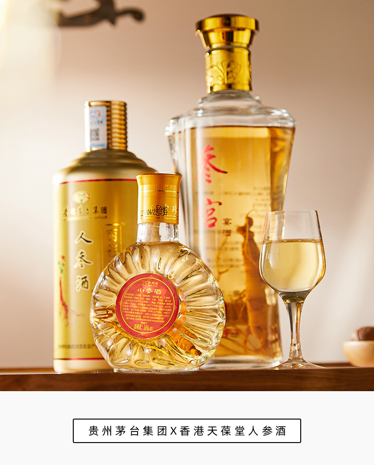 贵州茅台集团X香港天葆堂人参酒,使用五年茅台陈酿作为基酒,辅以人参精华