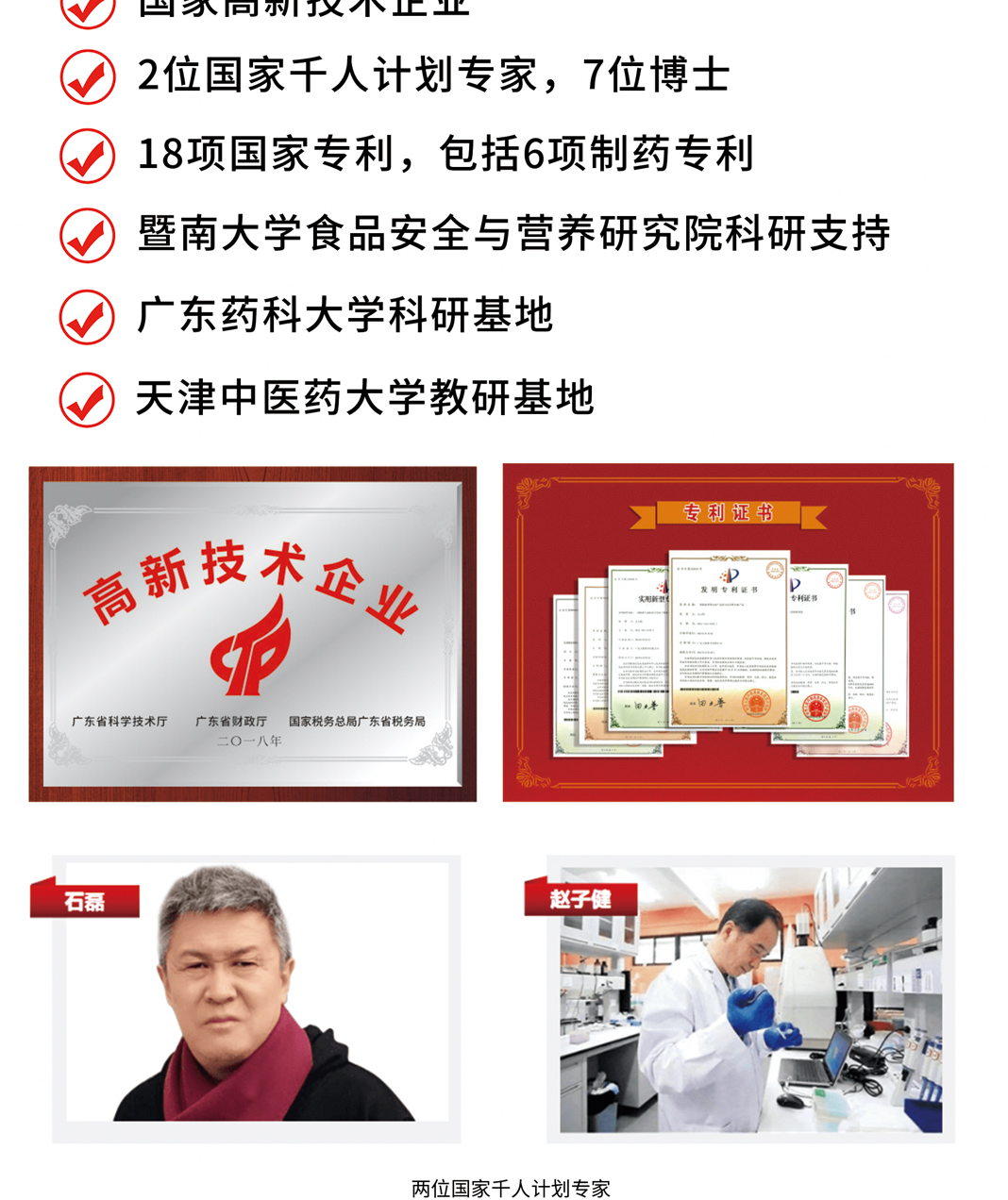 ✅2位国家千人计划专家,7位博士18项国家专利,包括6项制药专利