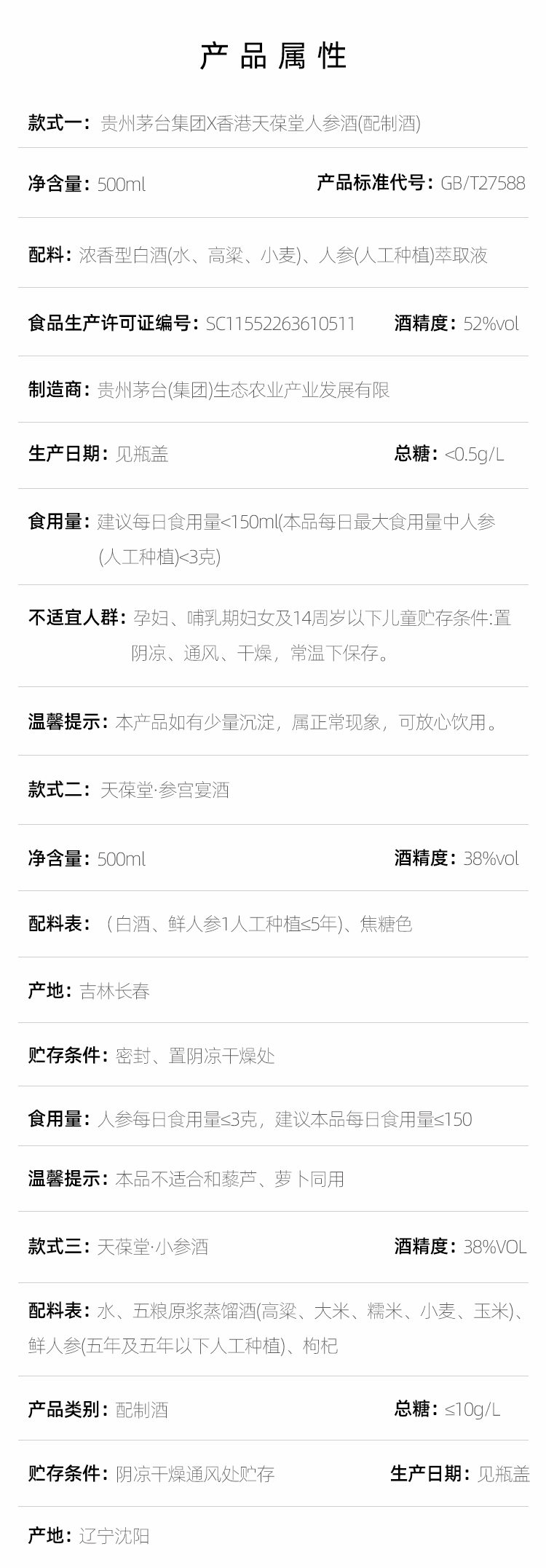 这款产品,掌柜觉得,有两个王牌。一是贵州茅台集团,一是人参。