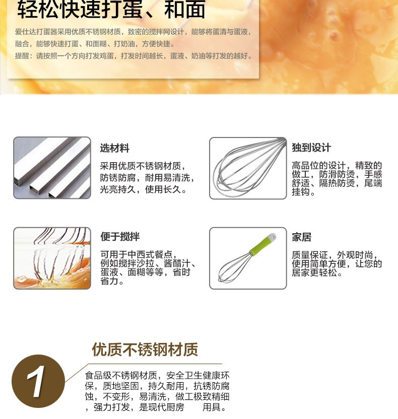 爱仕达ASD 不锈钢手动打蛋器 搅拌器 GJ19C1