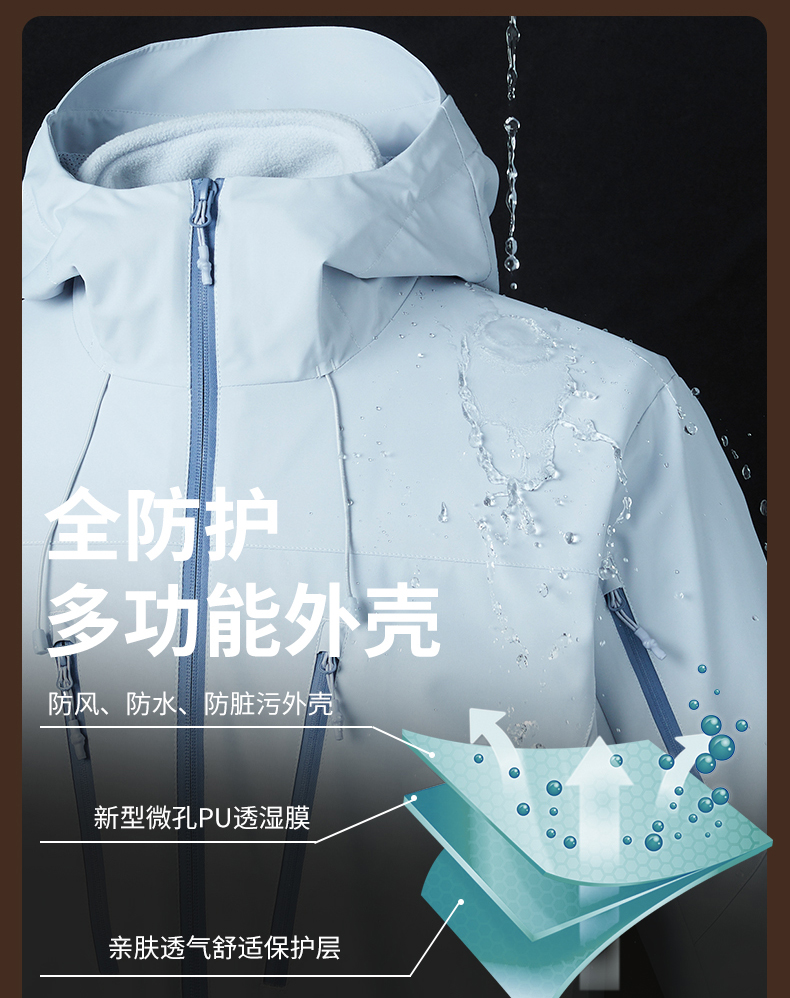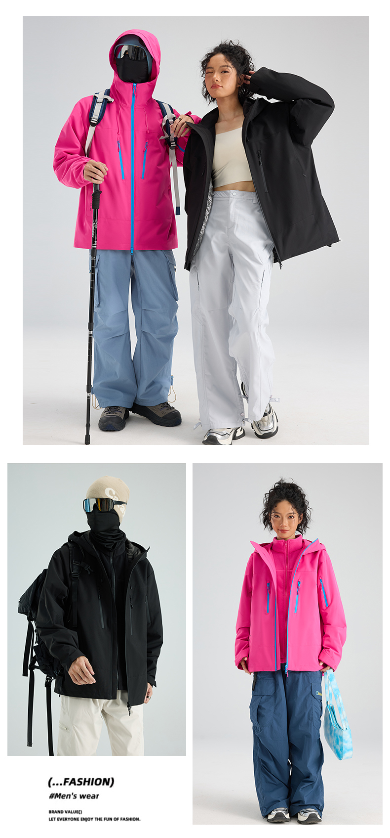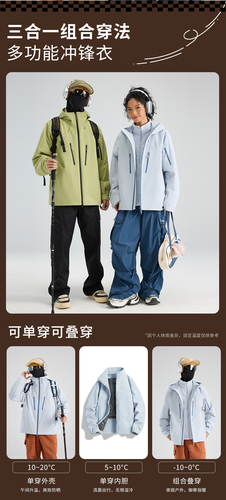 【幸运鹿】情侣款保暖防泼水三合一户外冲锋衣8568