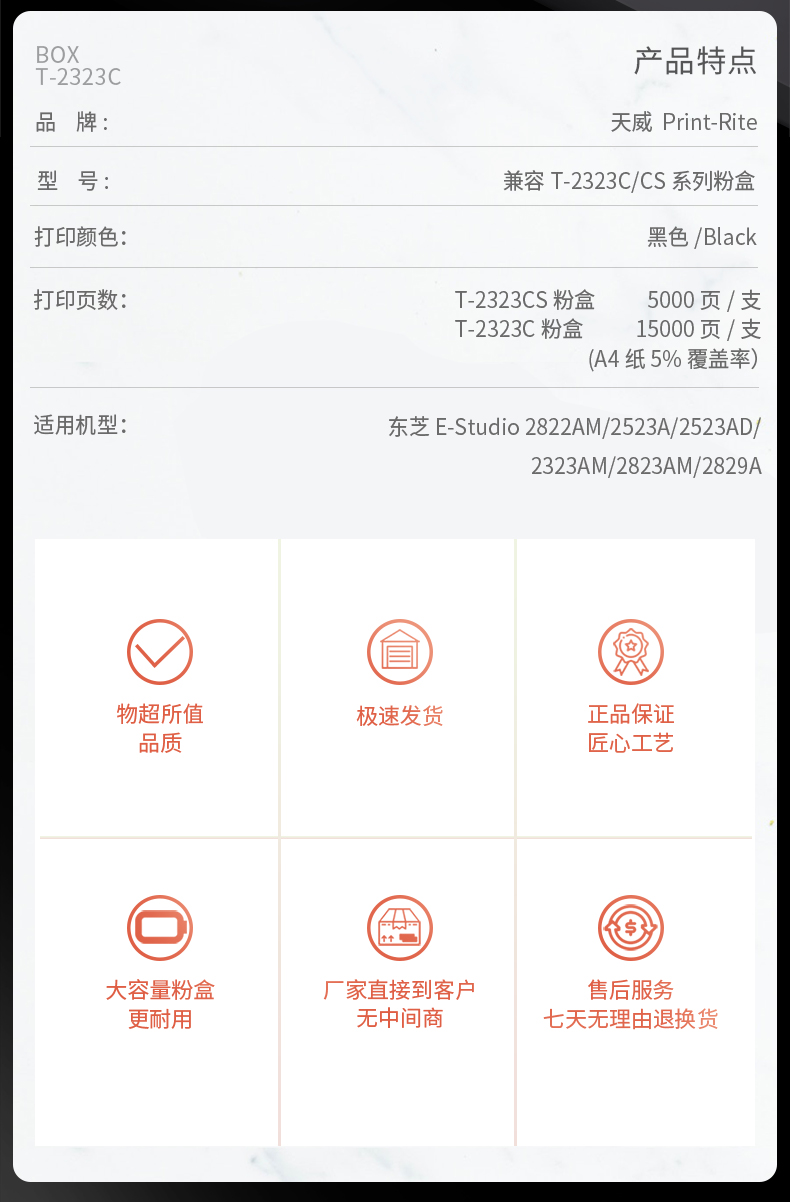 天威T-2323CS墨粉盒 适用东芝2323am粉盒2523A墨粉2822AM 2523AD 2823AM 2829A复印机墨盒 T-2323C硒鼓