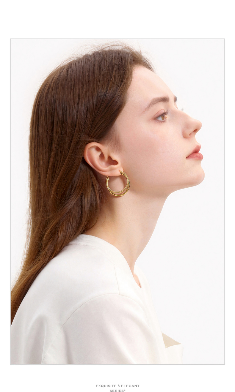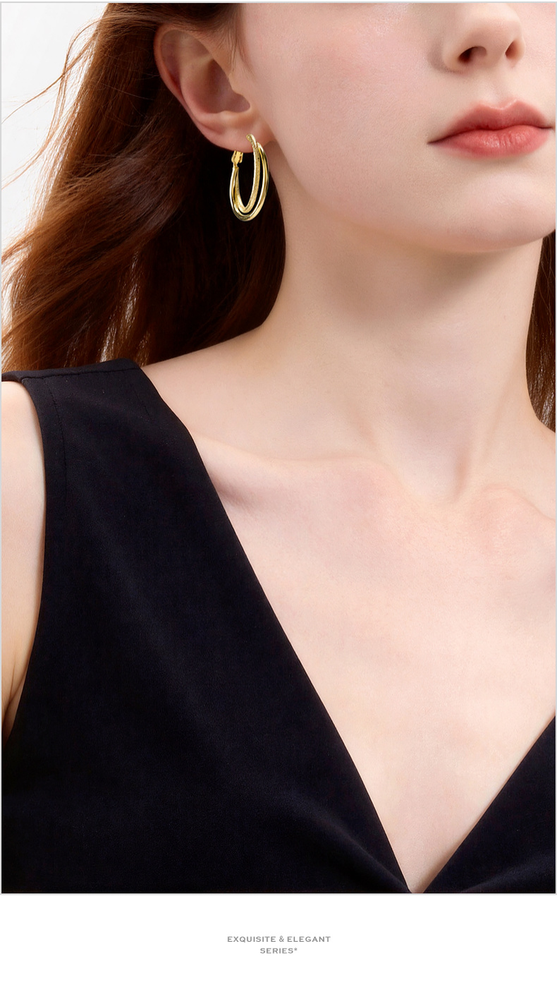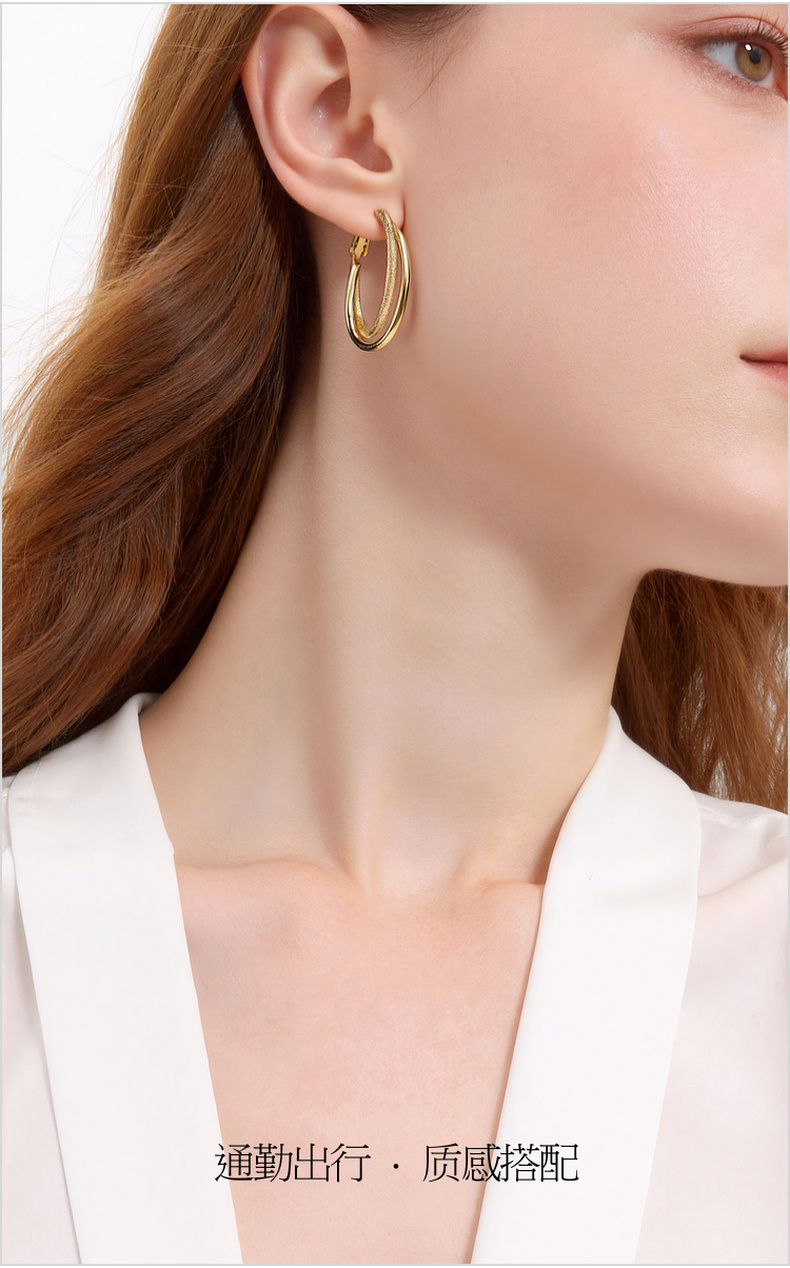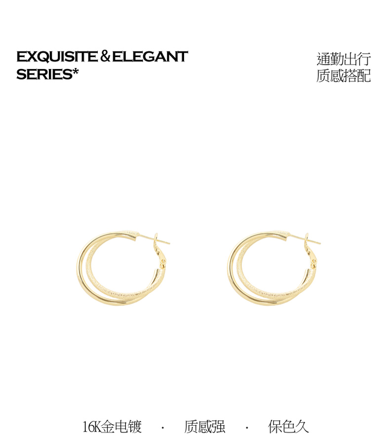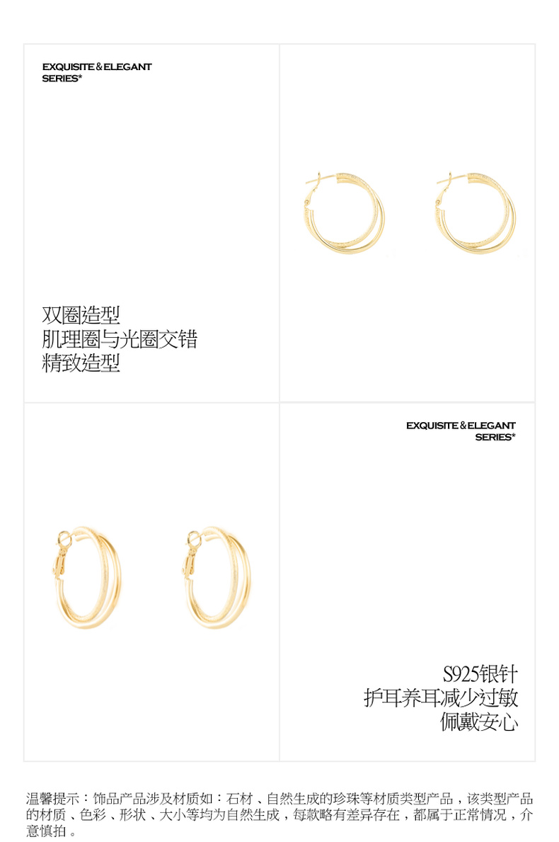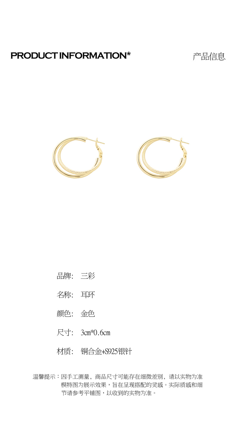 三彩2026新款镀金肌理双圈耳环S925银针复古约会通勤轻熟简约小众