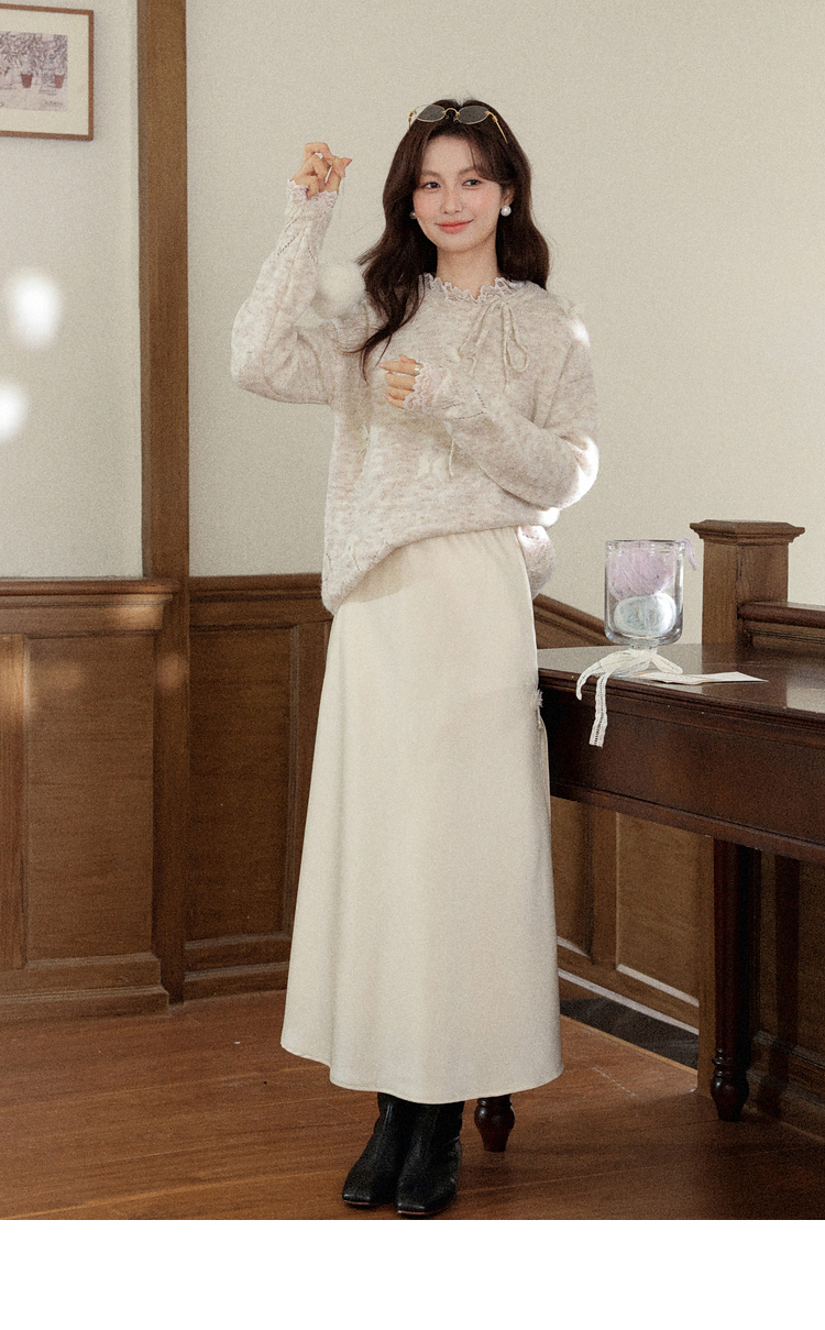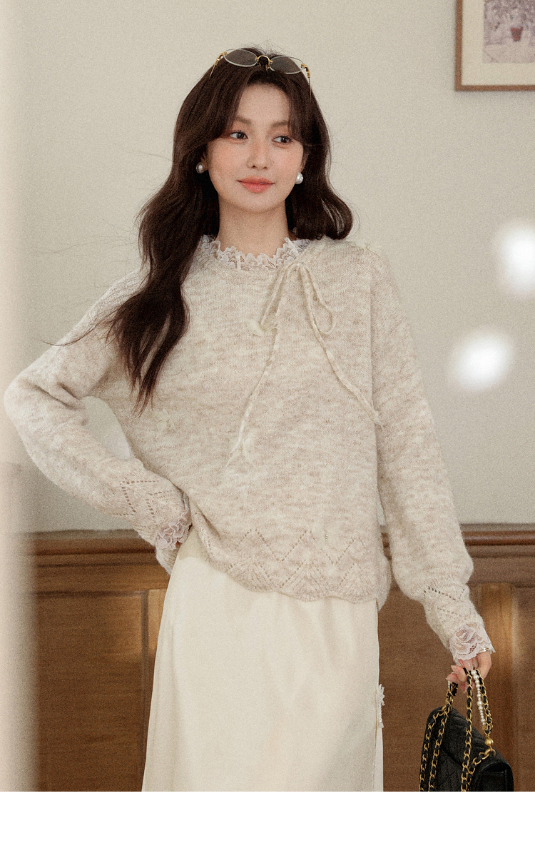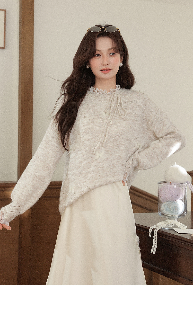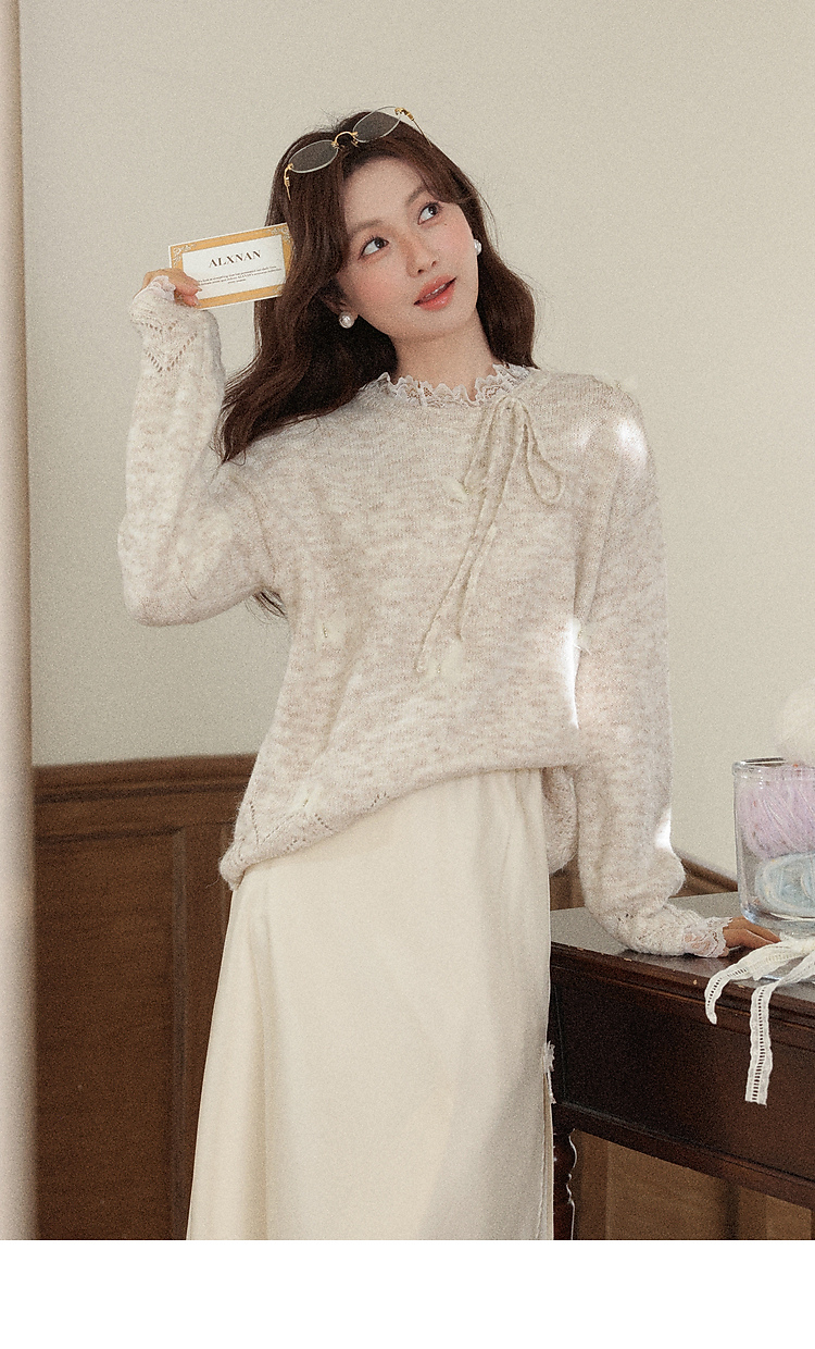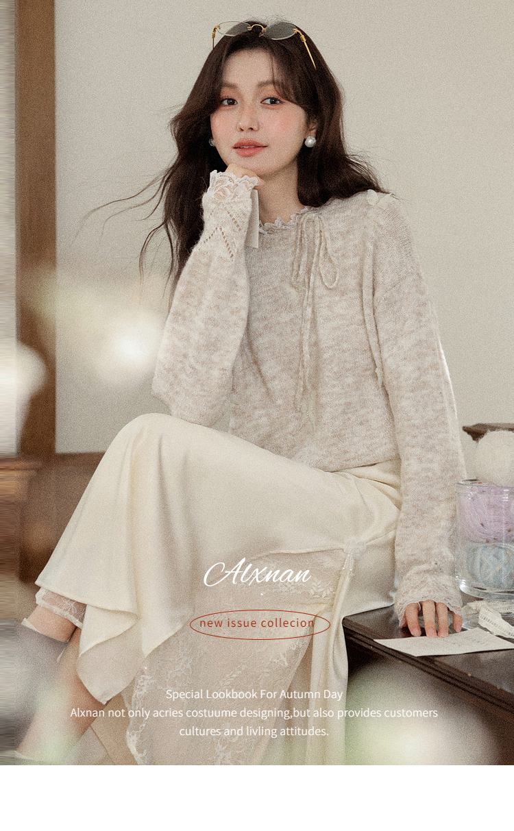 鹿向南「云絮蝶梦」燕麦色宽松长袖内搭针织衫毛衣女秋冬羊毛上衣
