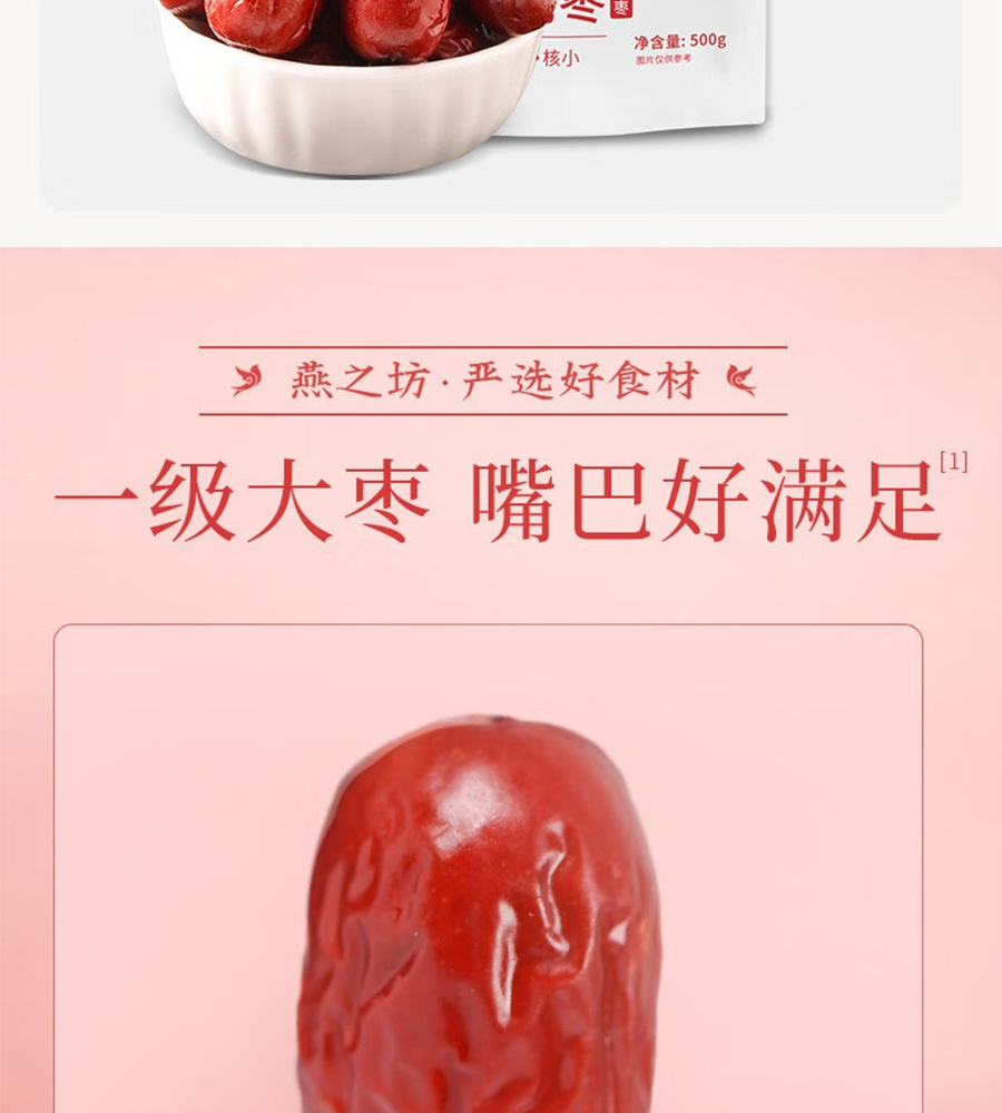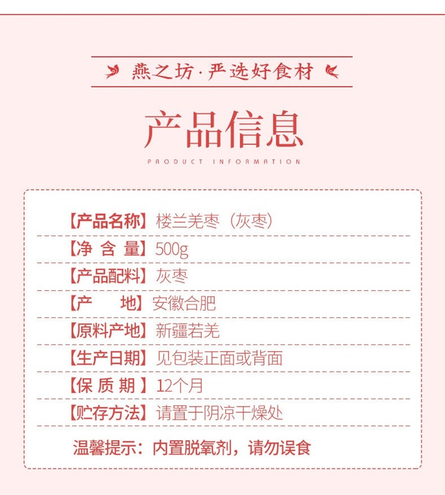 燕之坊 楼兰羌枣 500g×2袋 即食红枣一级灰枣