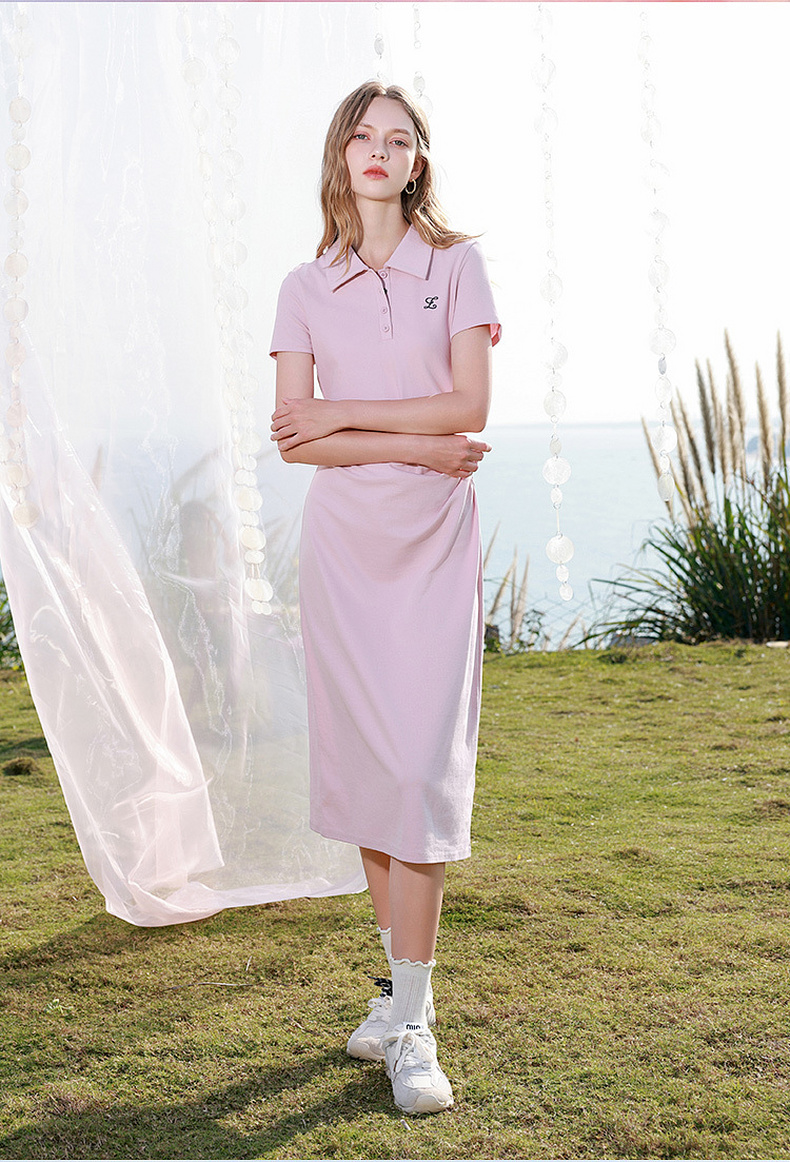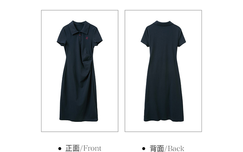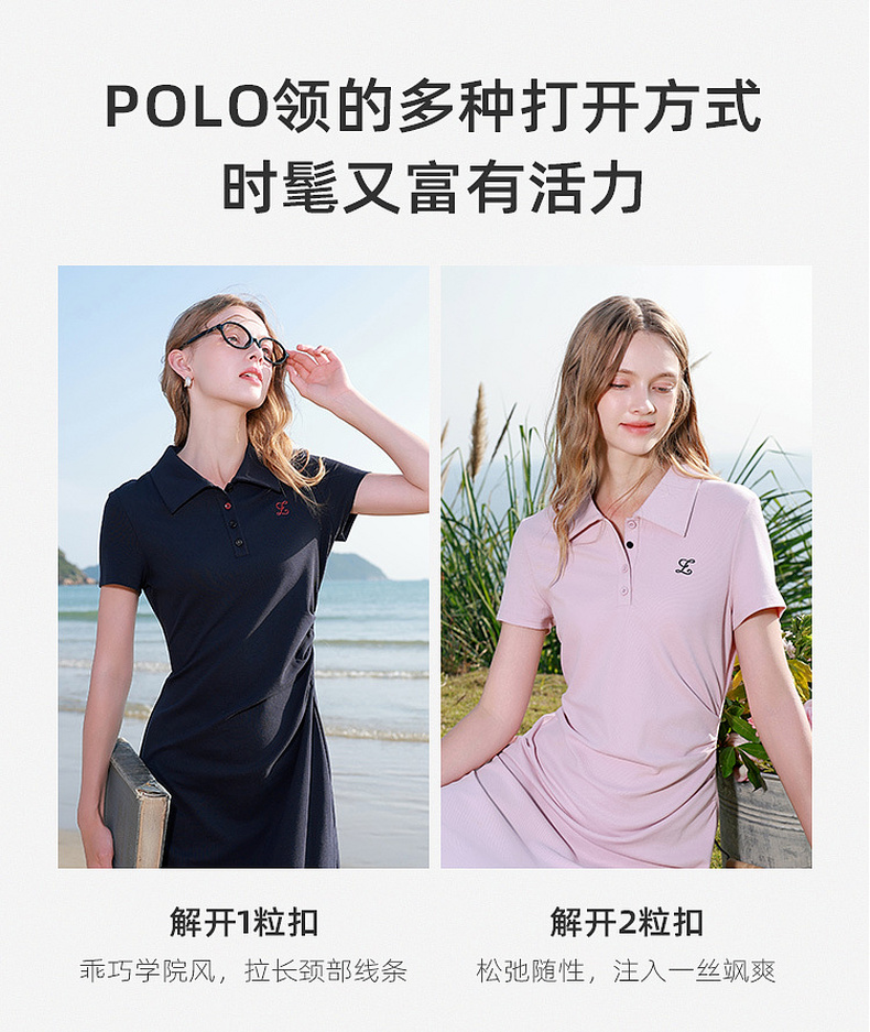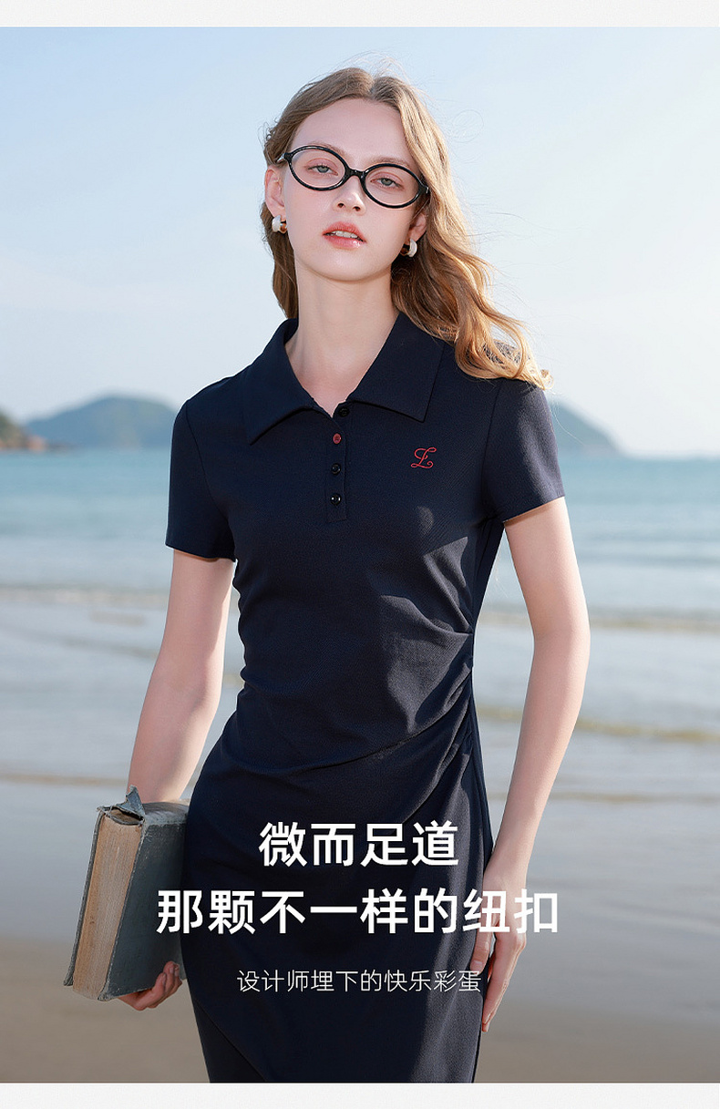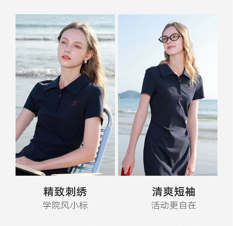 三彩2026春季新款刺绣连衣裙短袖收腰A字裙中长休闲M