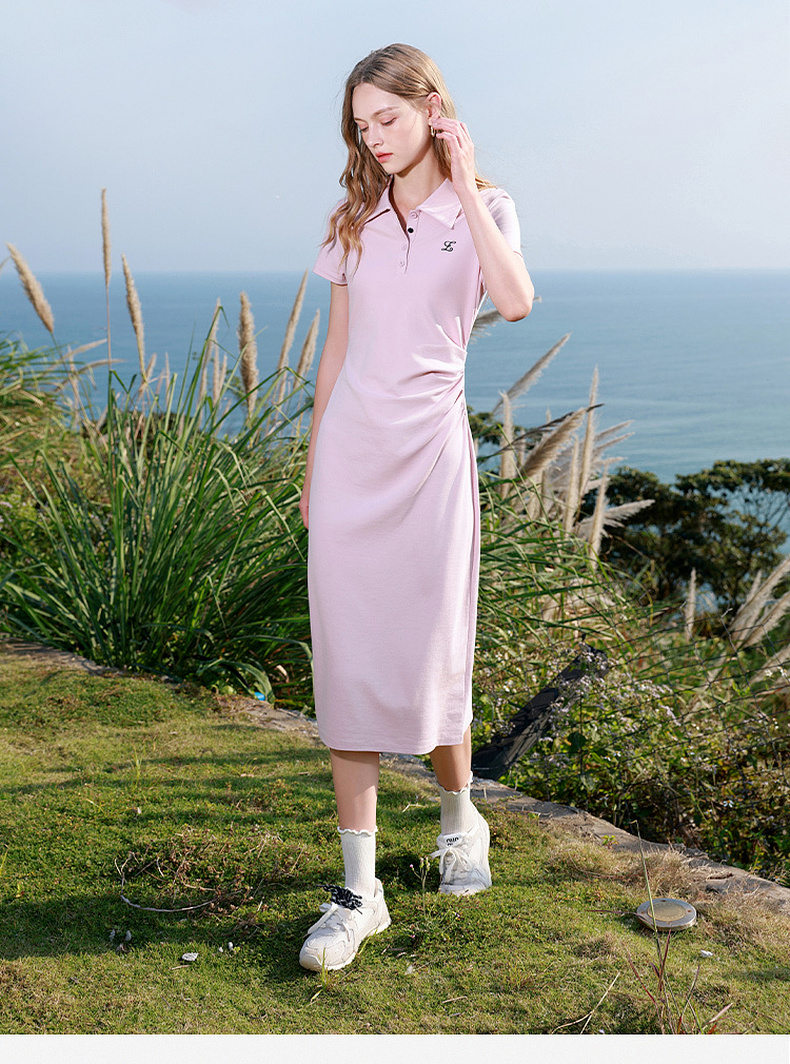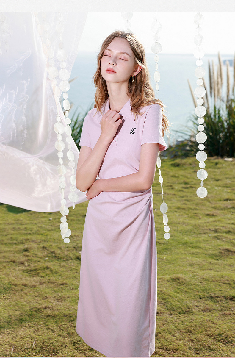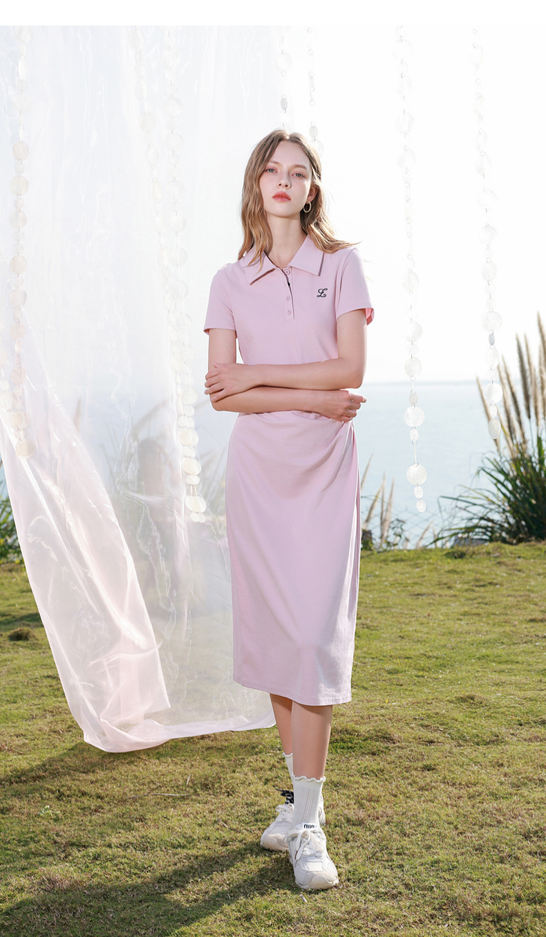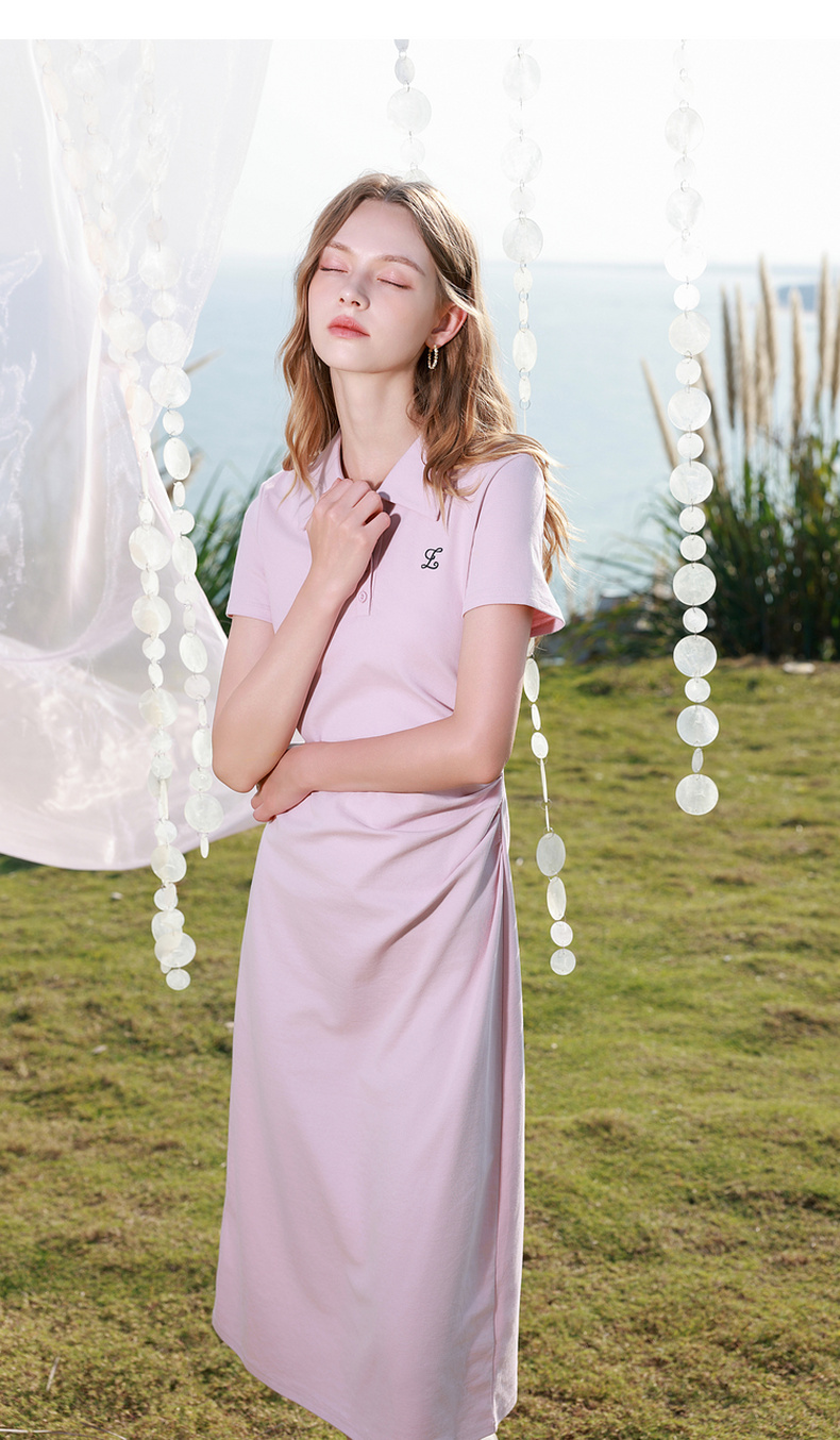 三彩2026春季新款刺绣连衣裙短袖收腰A字裙中长休闲M
