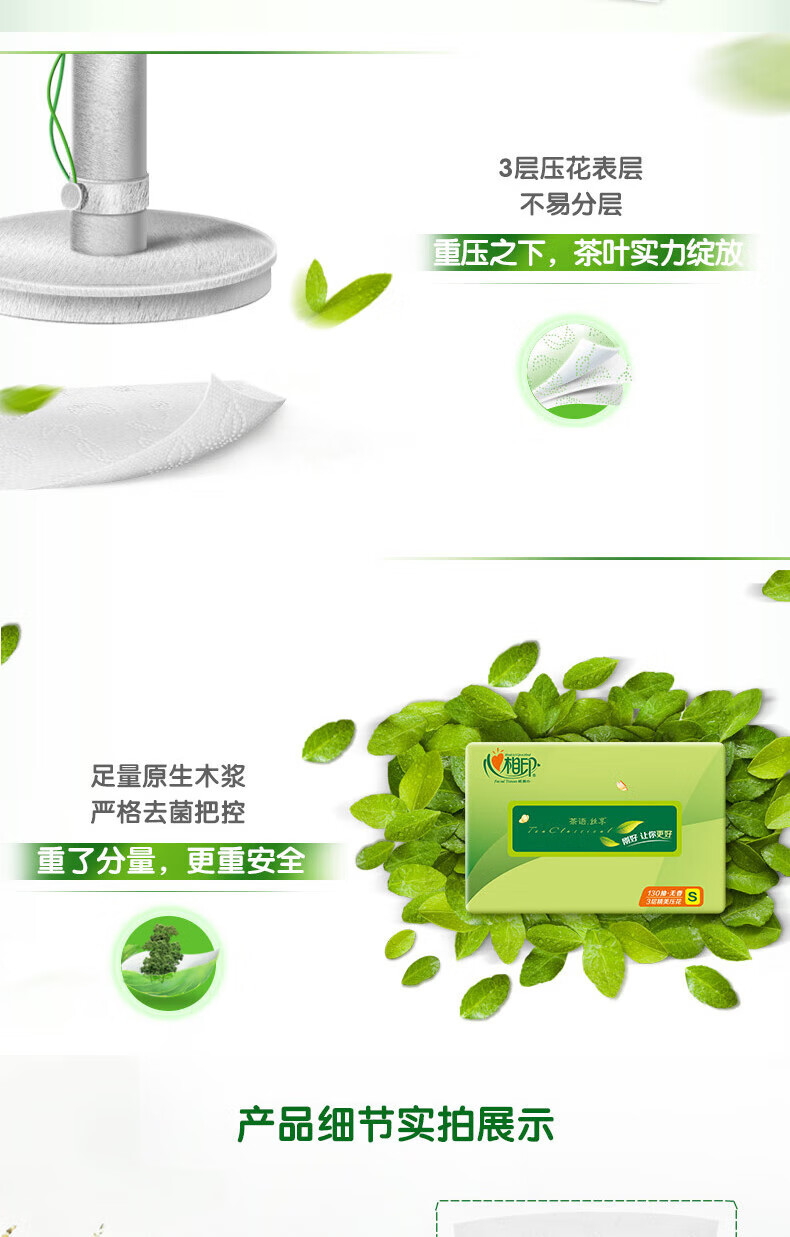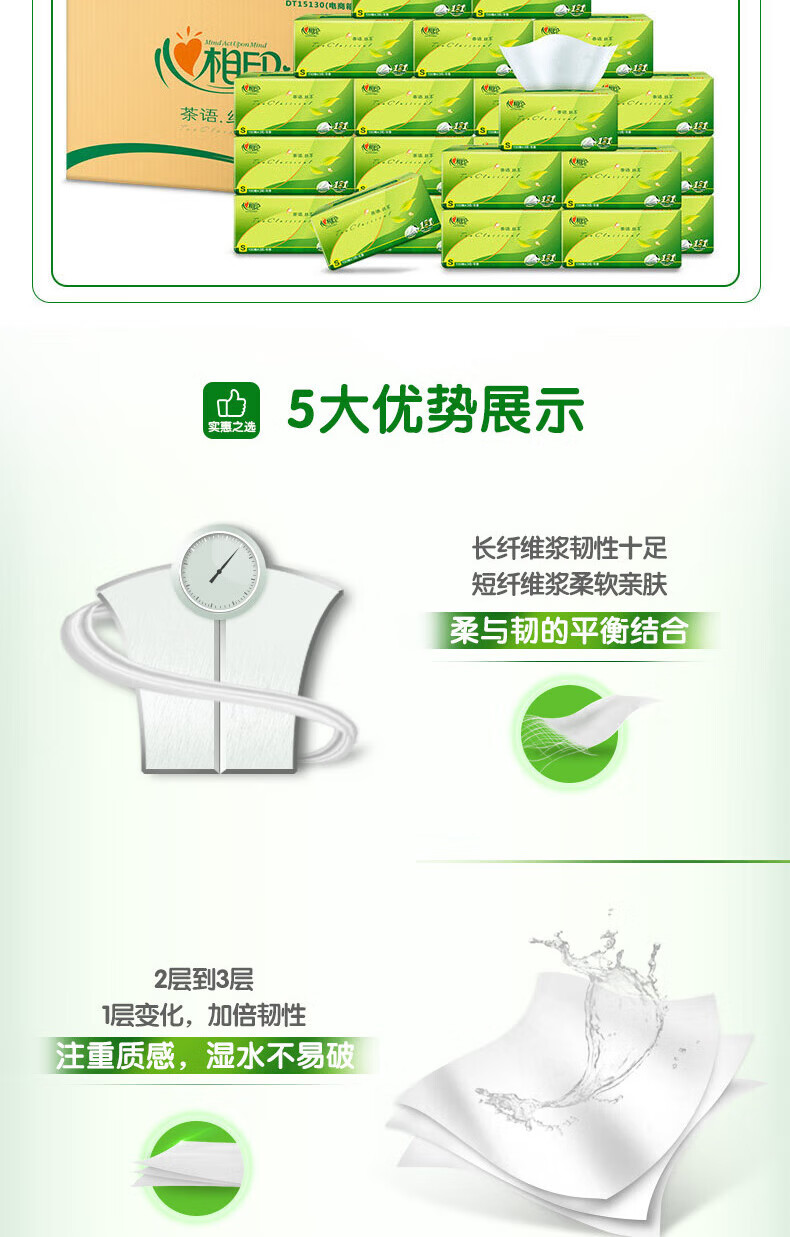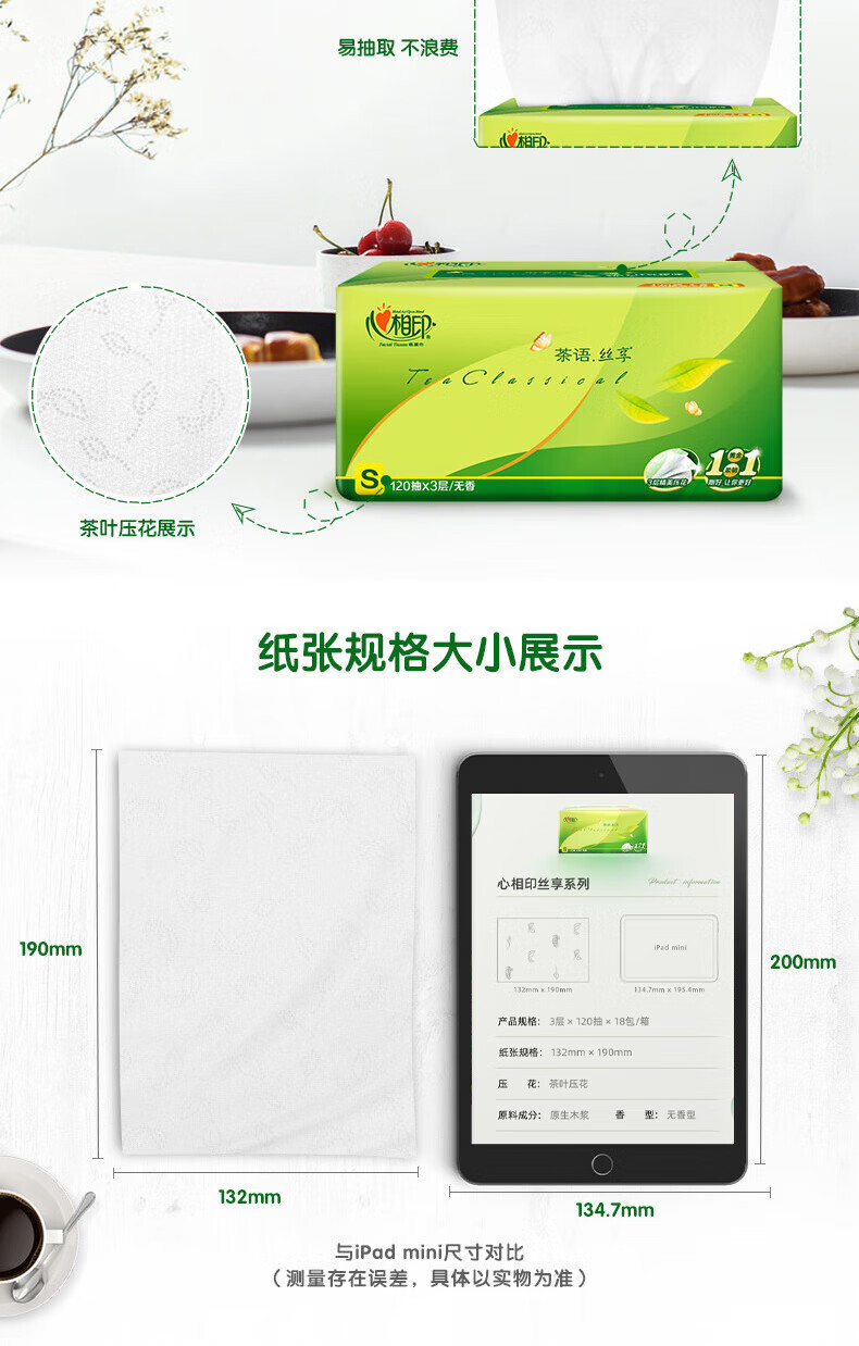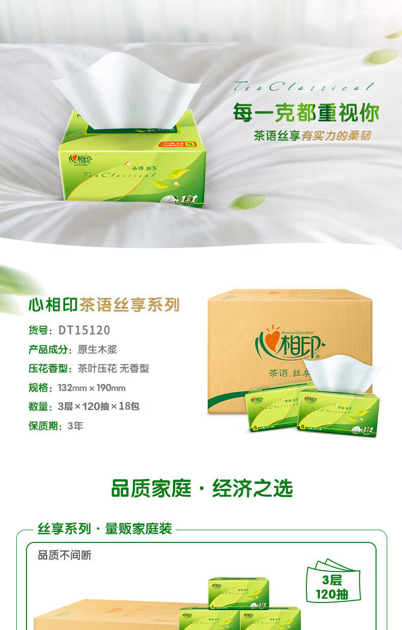 心相印DT15120茶语丝享系列120抽18包装三层塑装纸面巾
