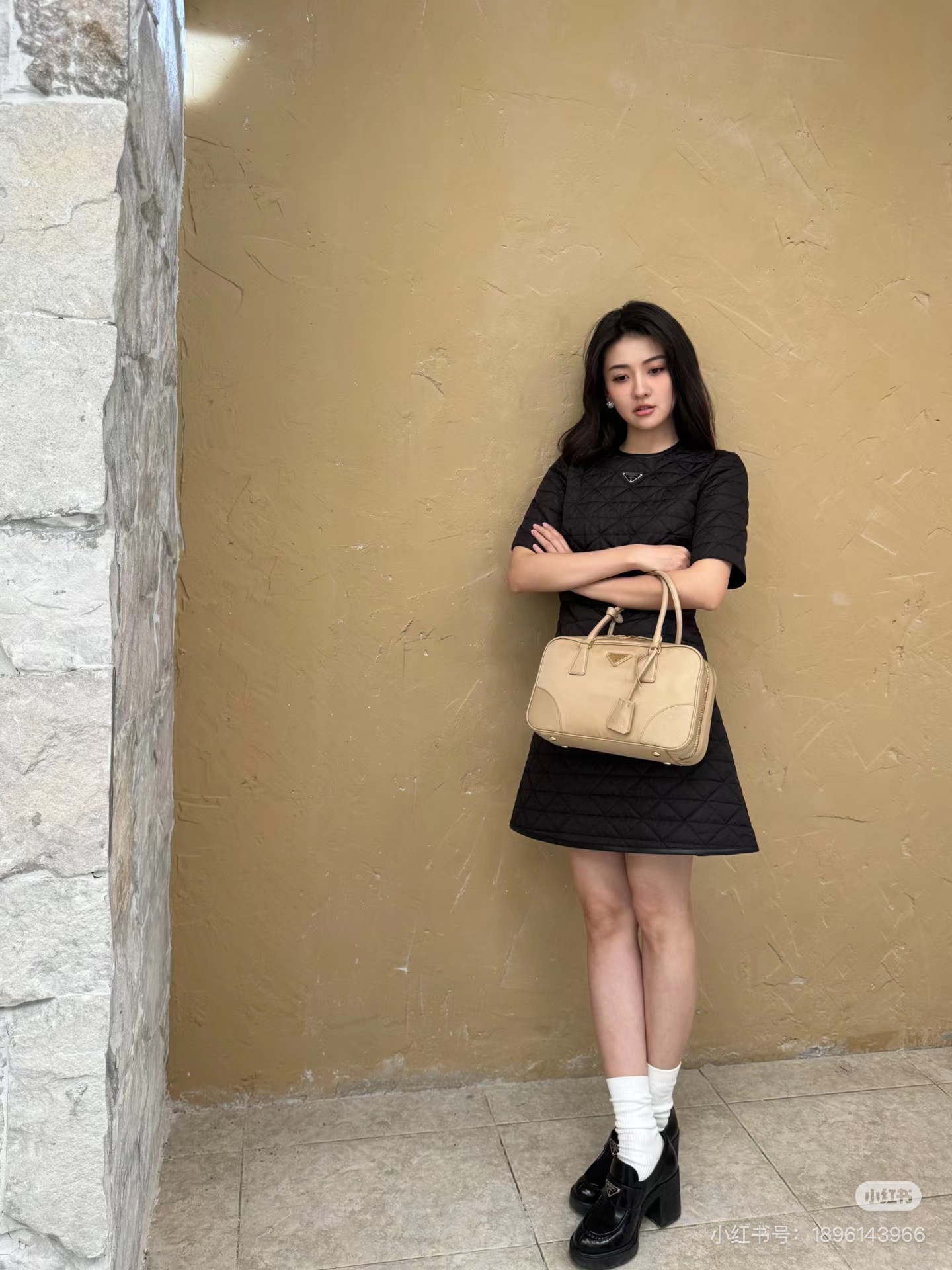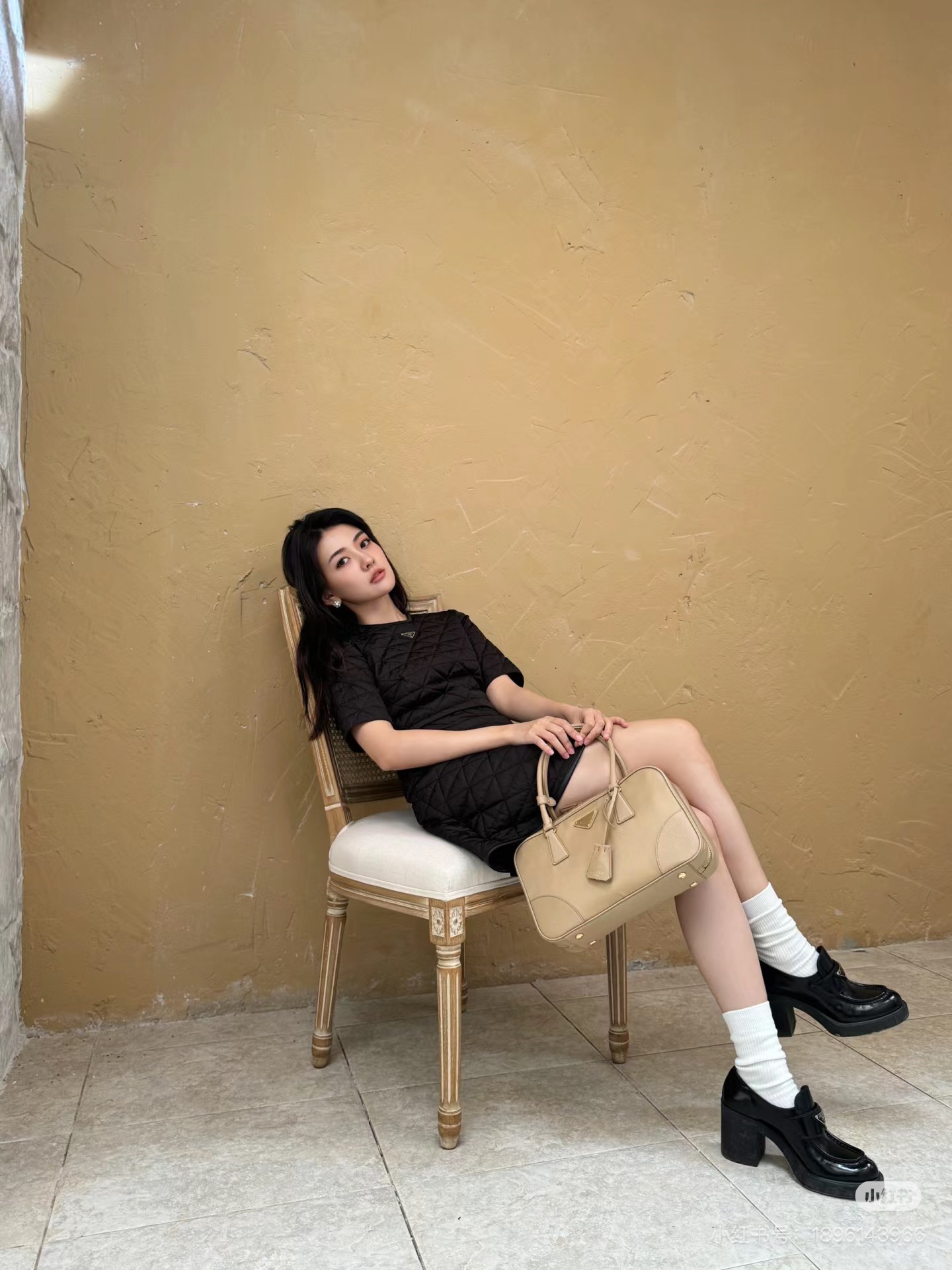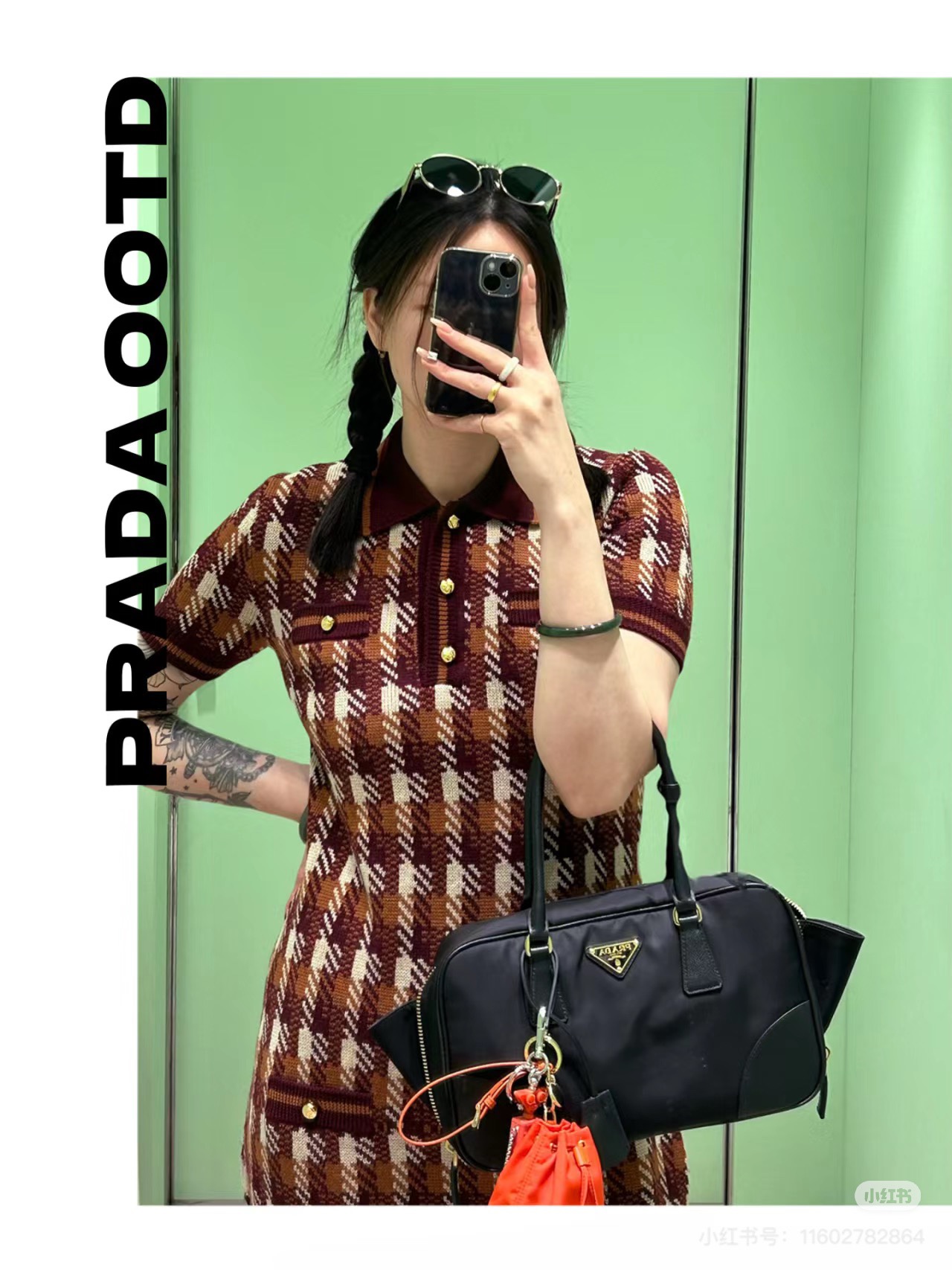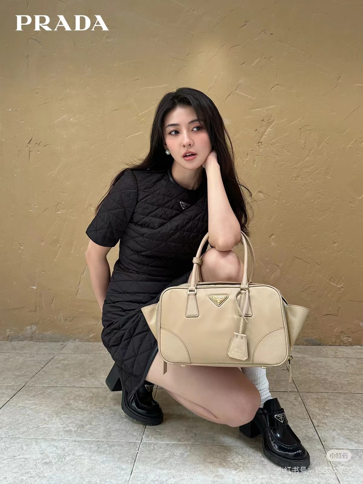 普拉达 24款1978尼龙拼皮保龄球手袋!这一季将复古进行到底,刘雯大表姐同款(MM)