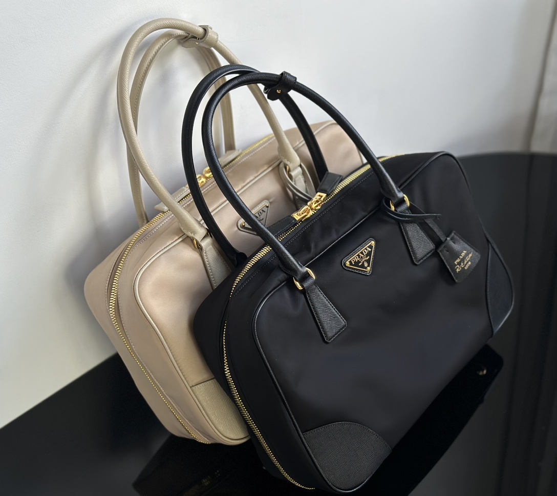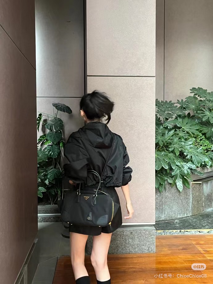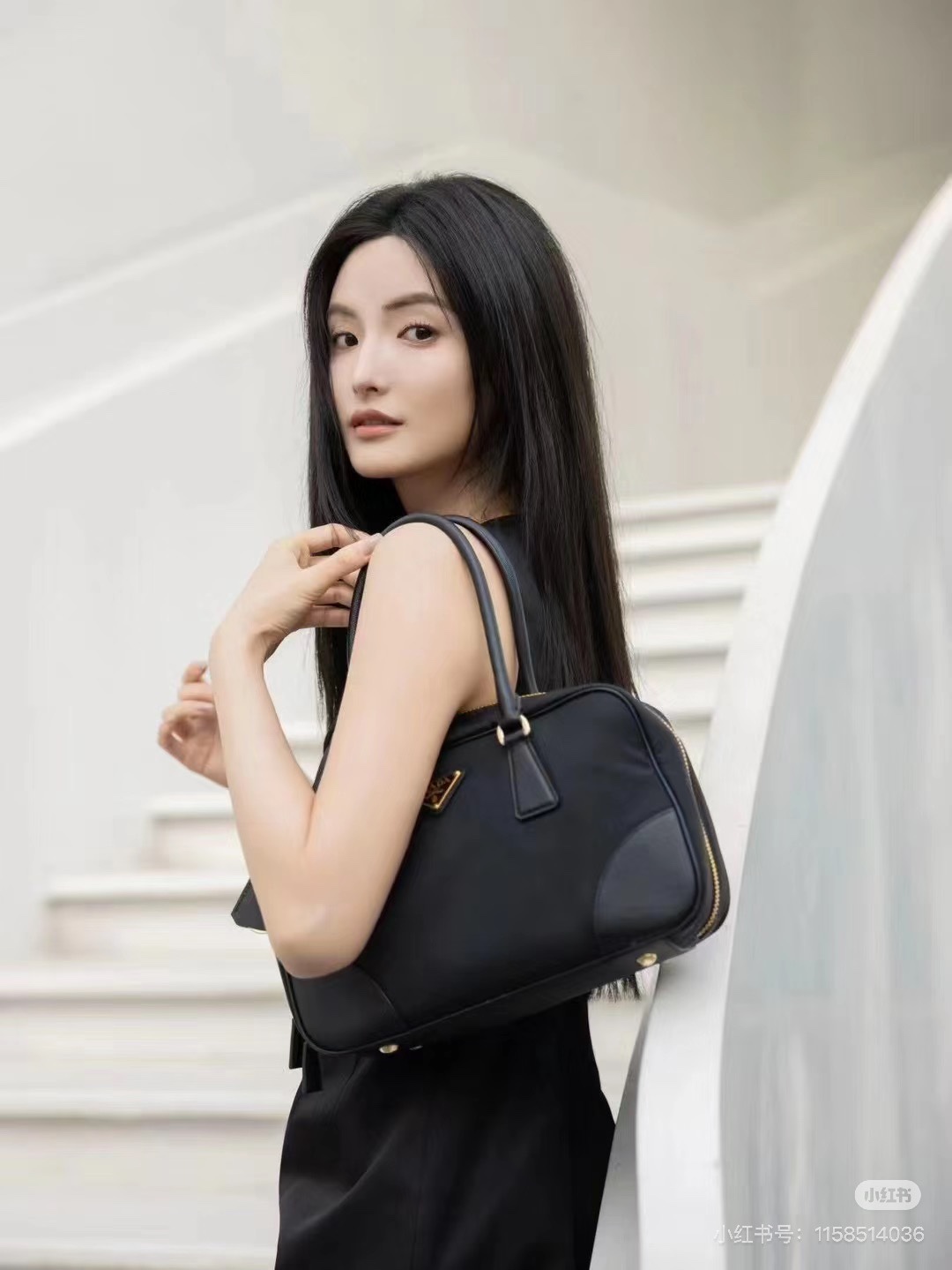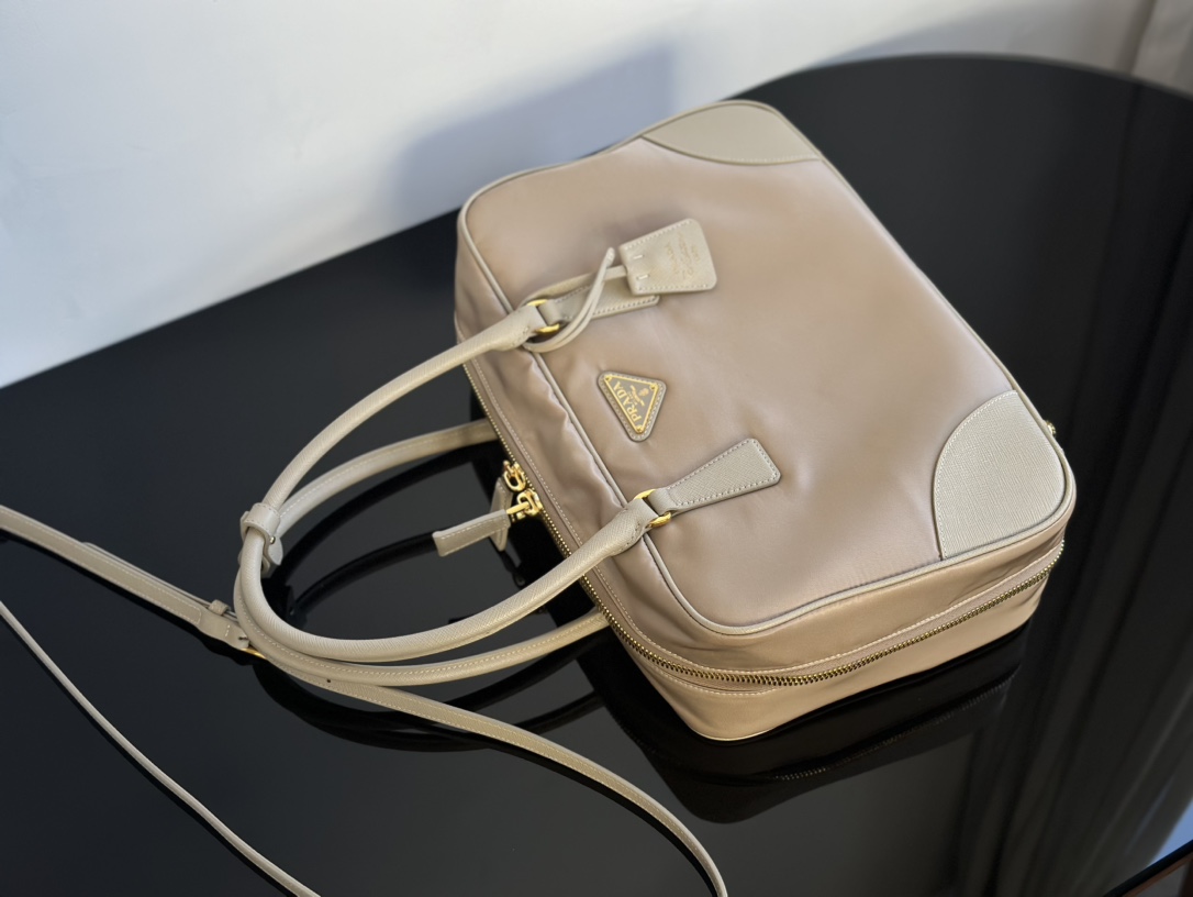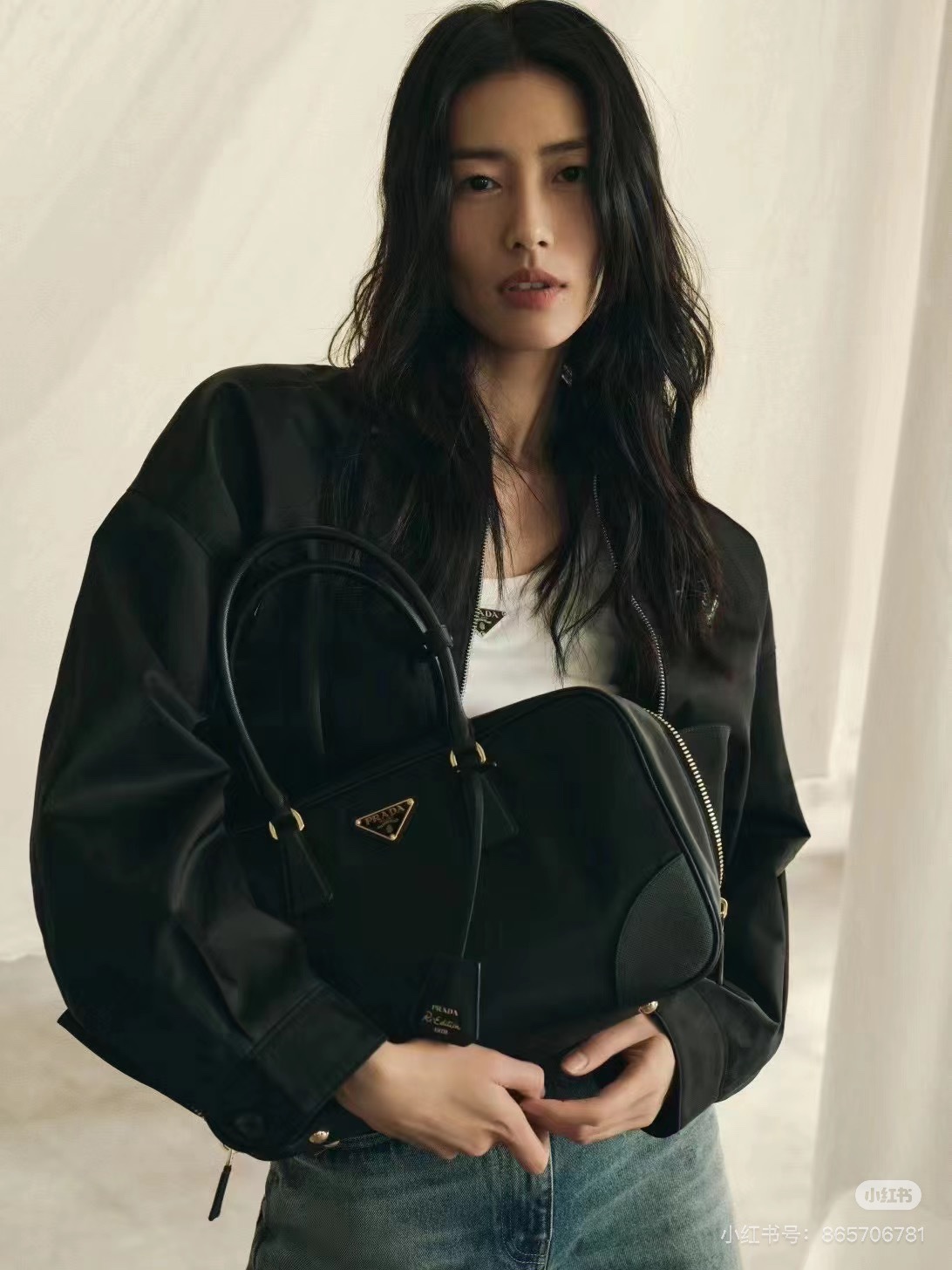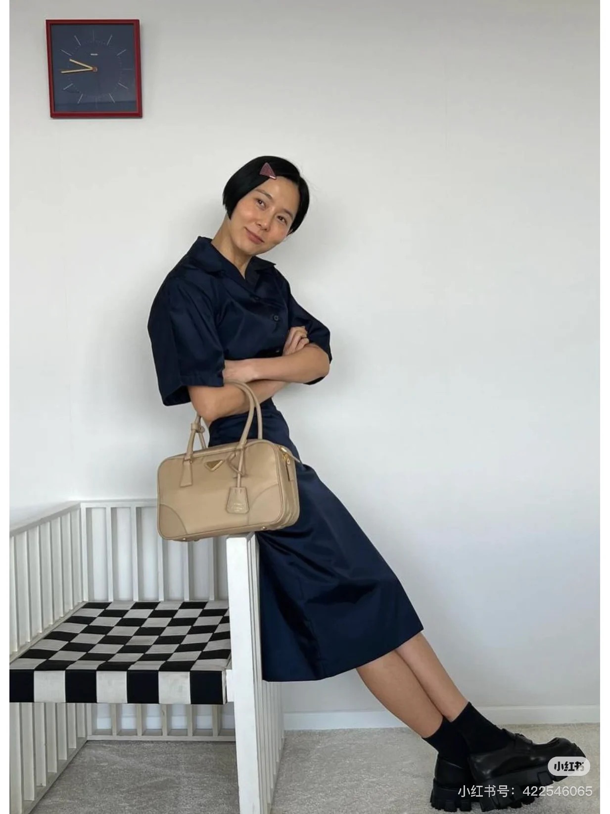 普拉达 24款1978尼龙拼皮保龄球手袋!这一季将复古进行到底,刘雯大表姐同款(MM)