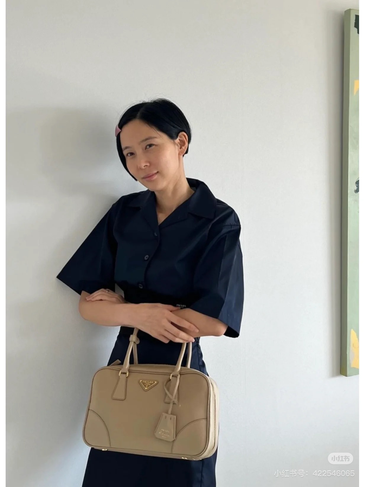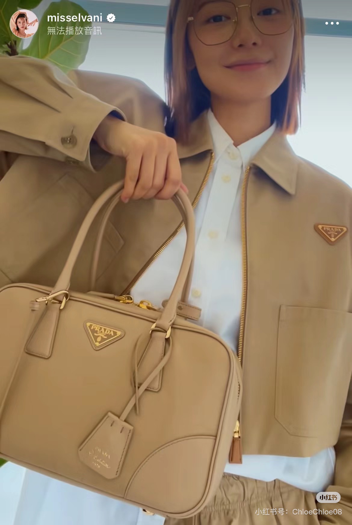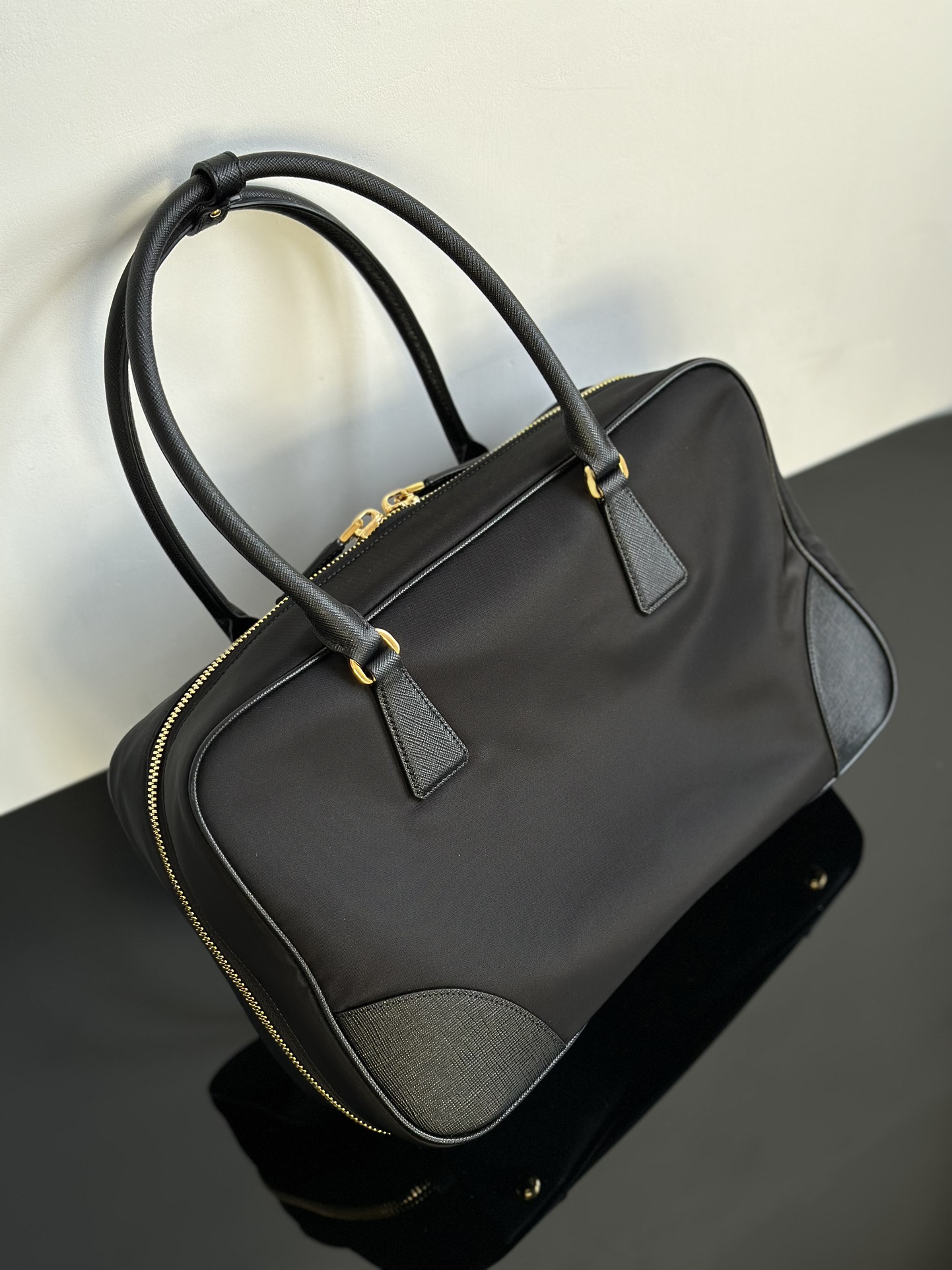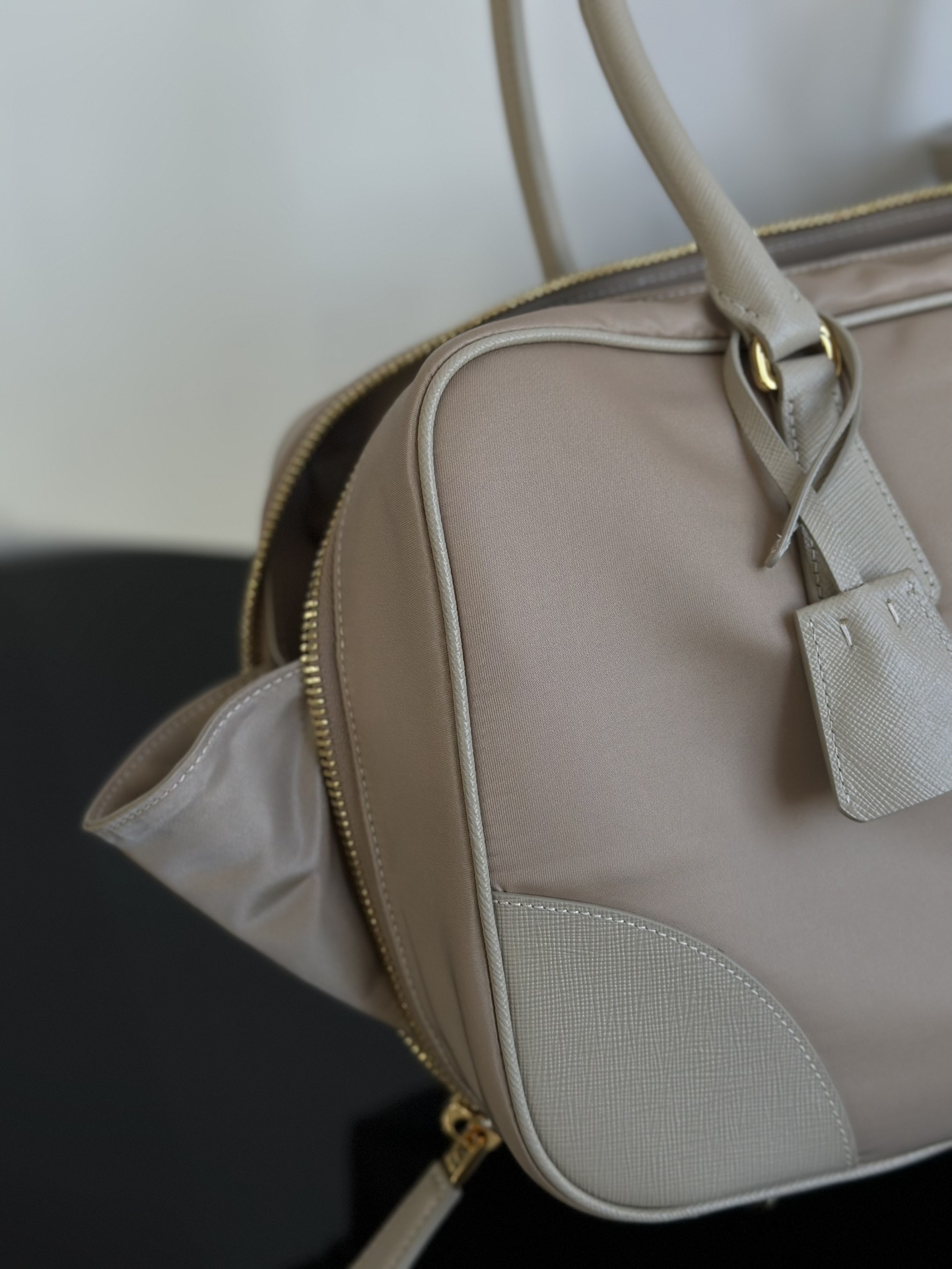 普拉达 24款1978尼龙拼皮保龄球手袋!这一季将复古进行到底,刘雯大表姐同款(MM)