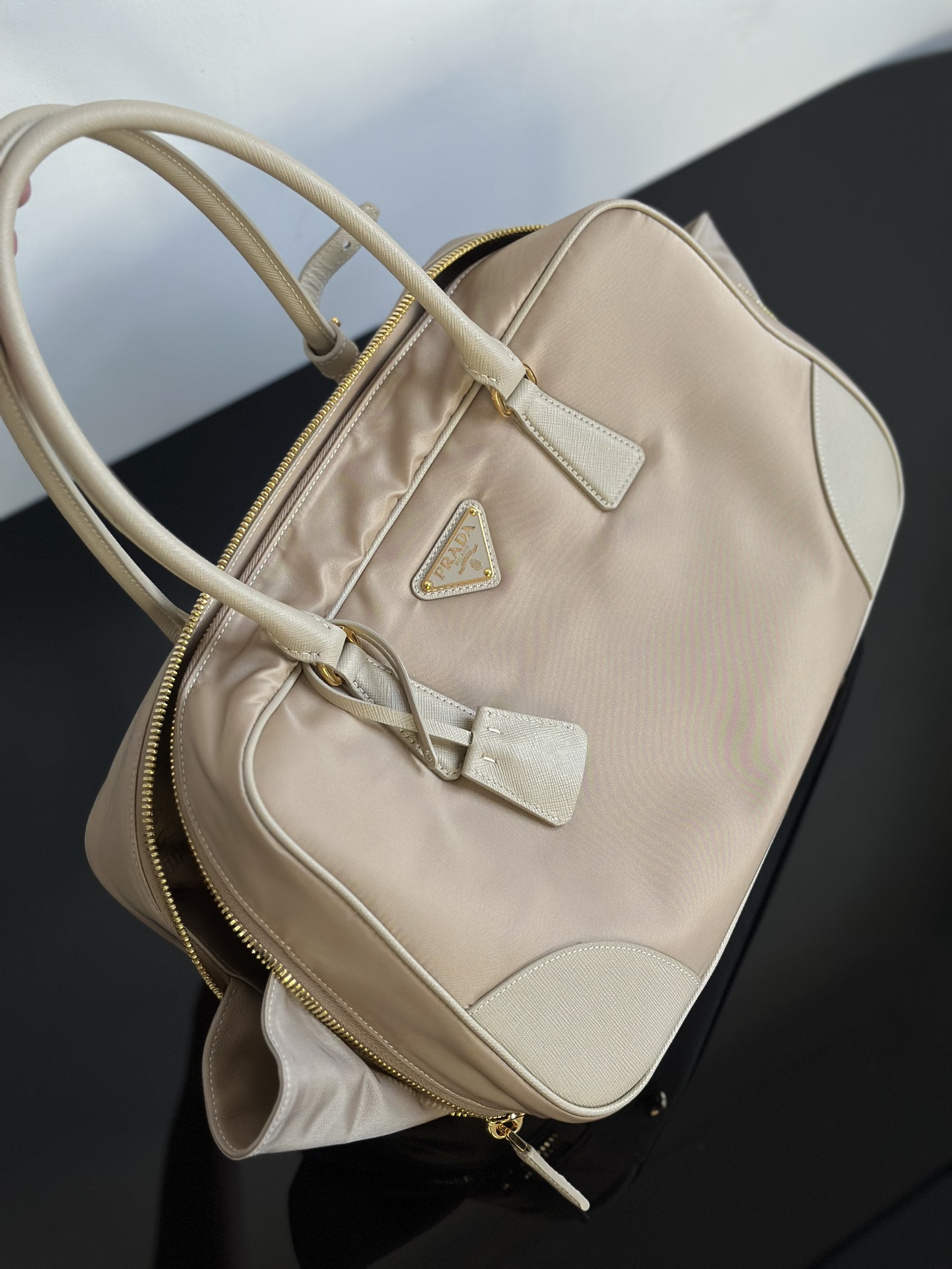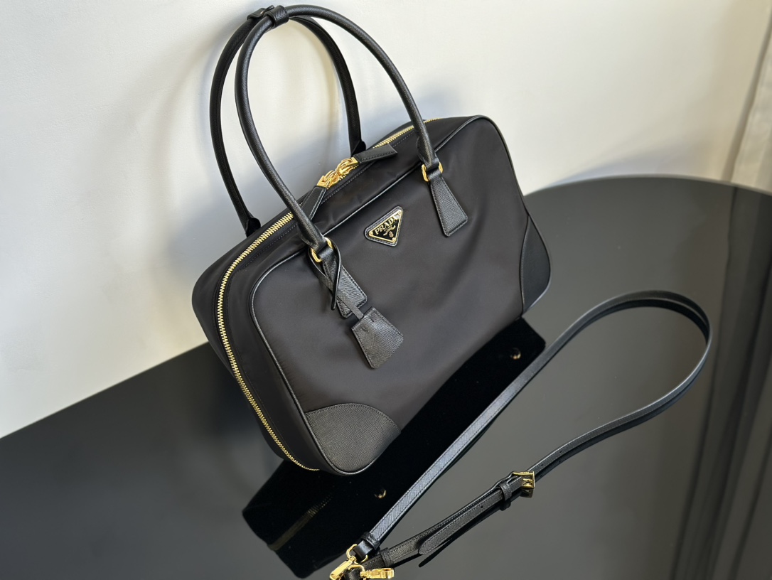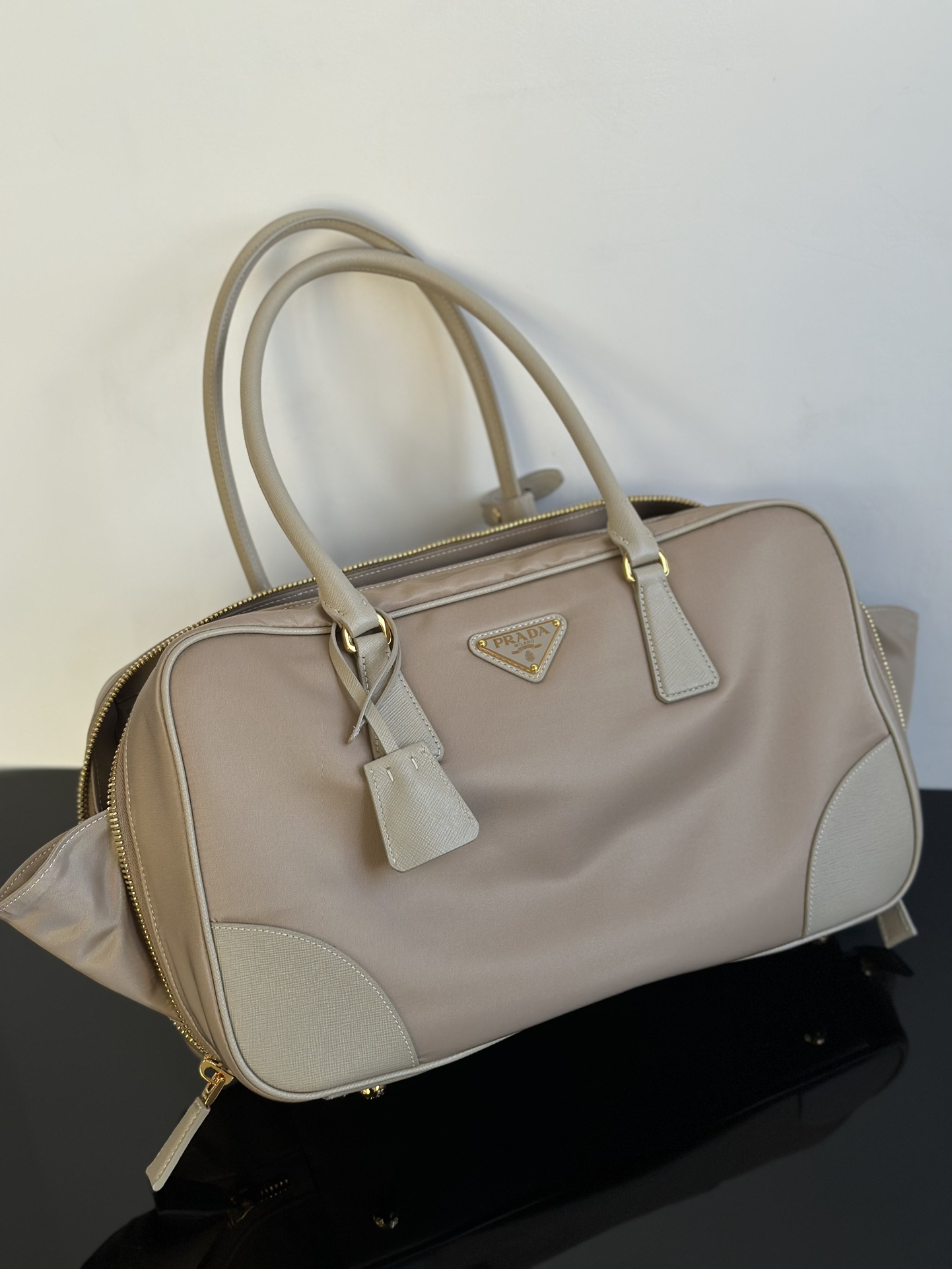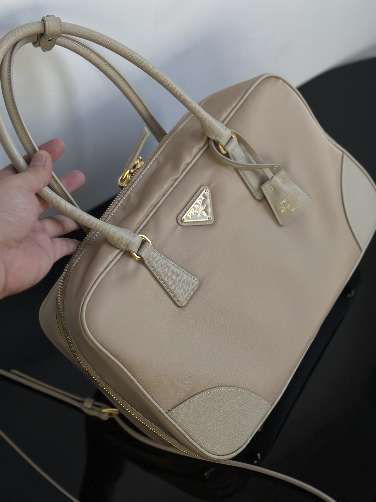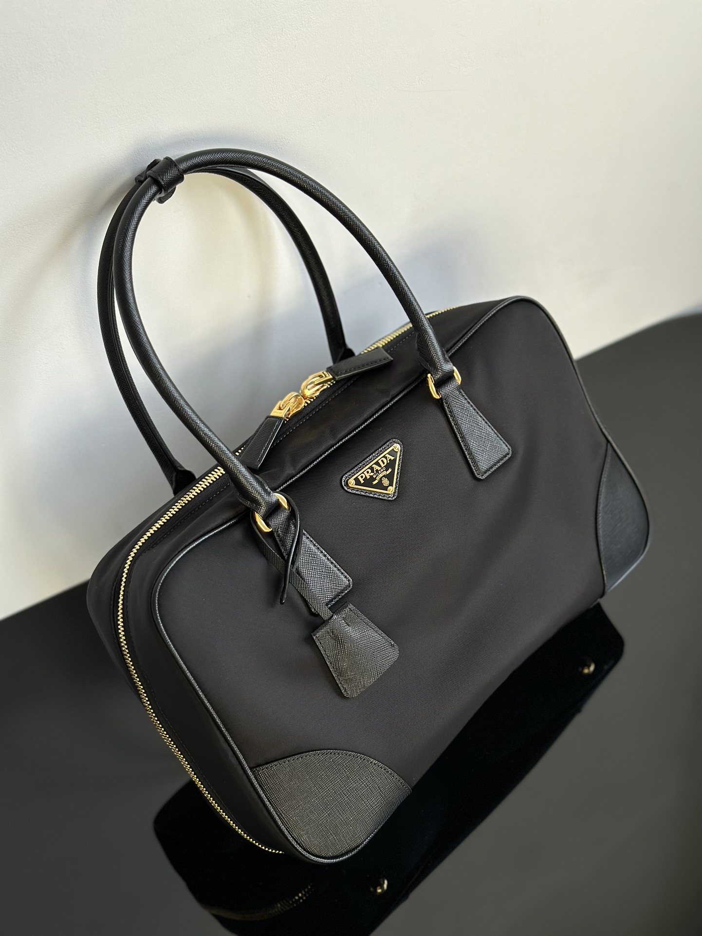 普拉达 24款1978尼龙拼皮保龄球手袋!这一季将复古进行到底,刘雯大表姐同款(MM)