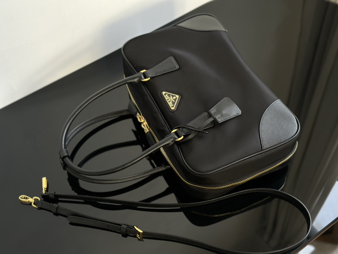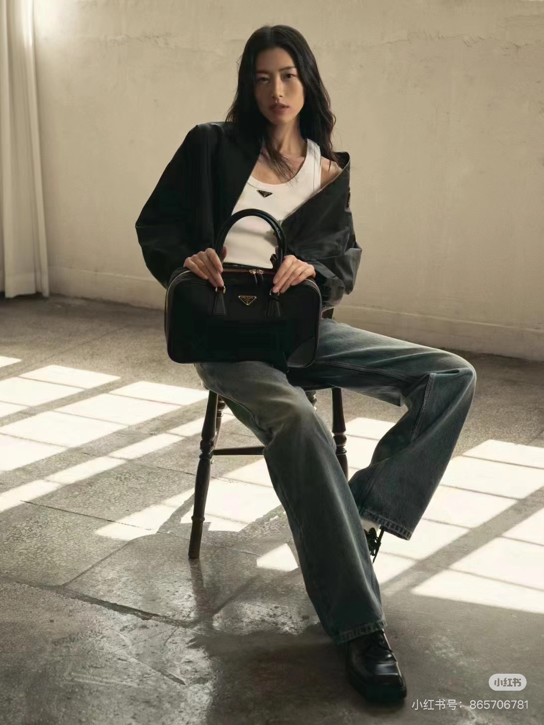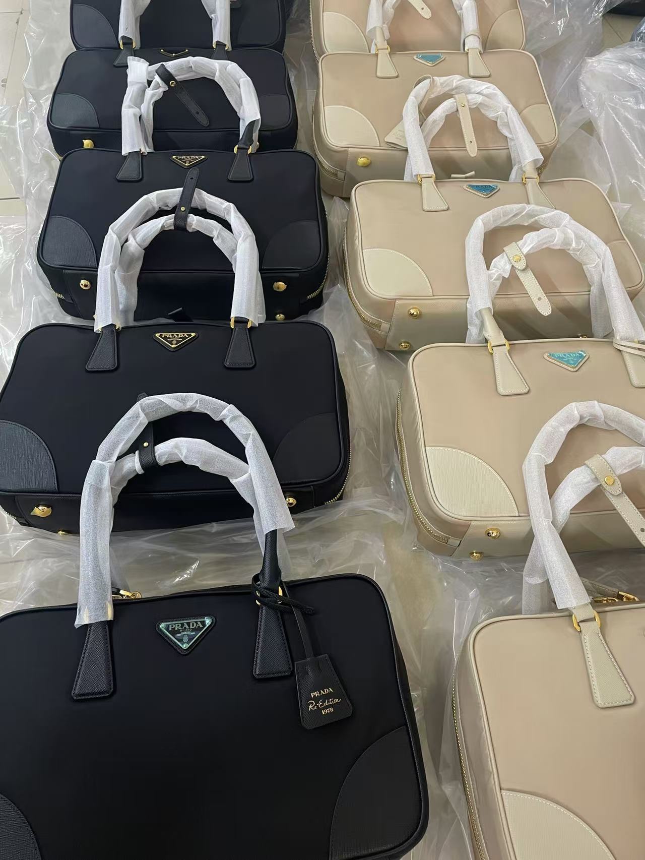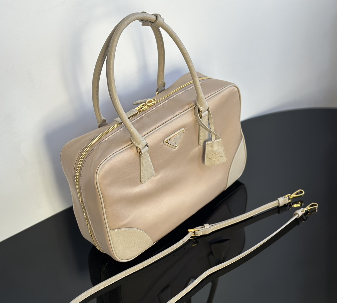 普拉达 24款1978尼龙拼皮保龄球手袋!这一季将复古进行到底,刘雯大表姐同款(MM)