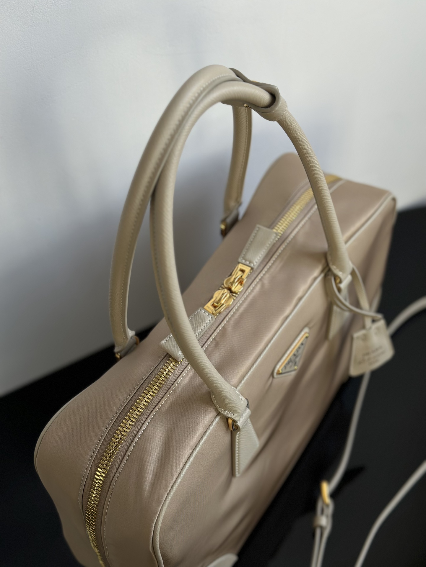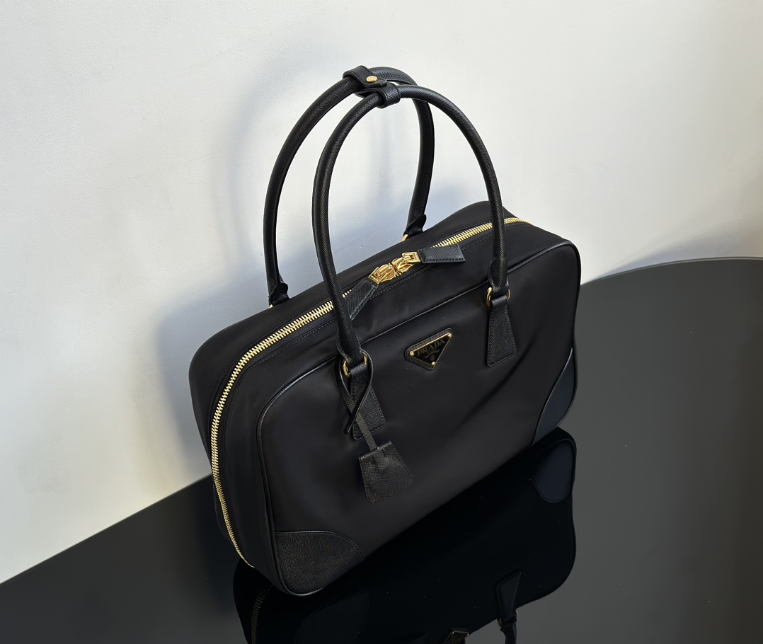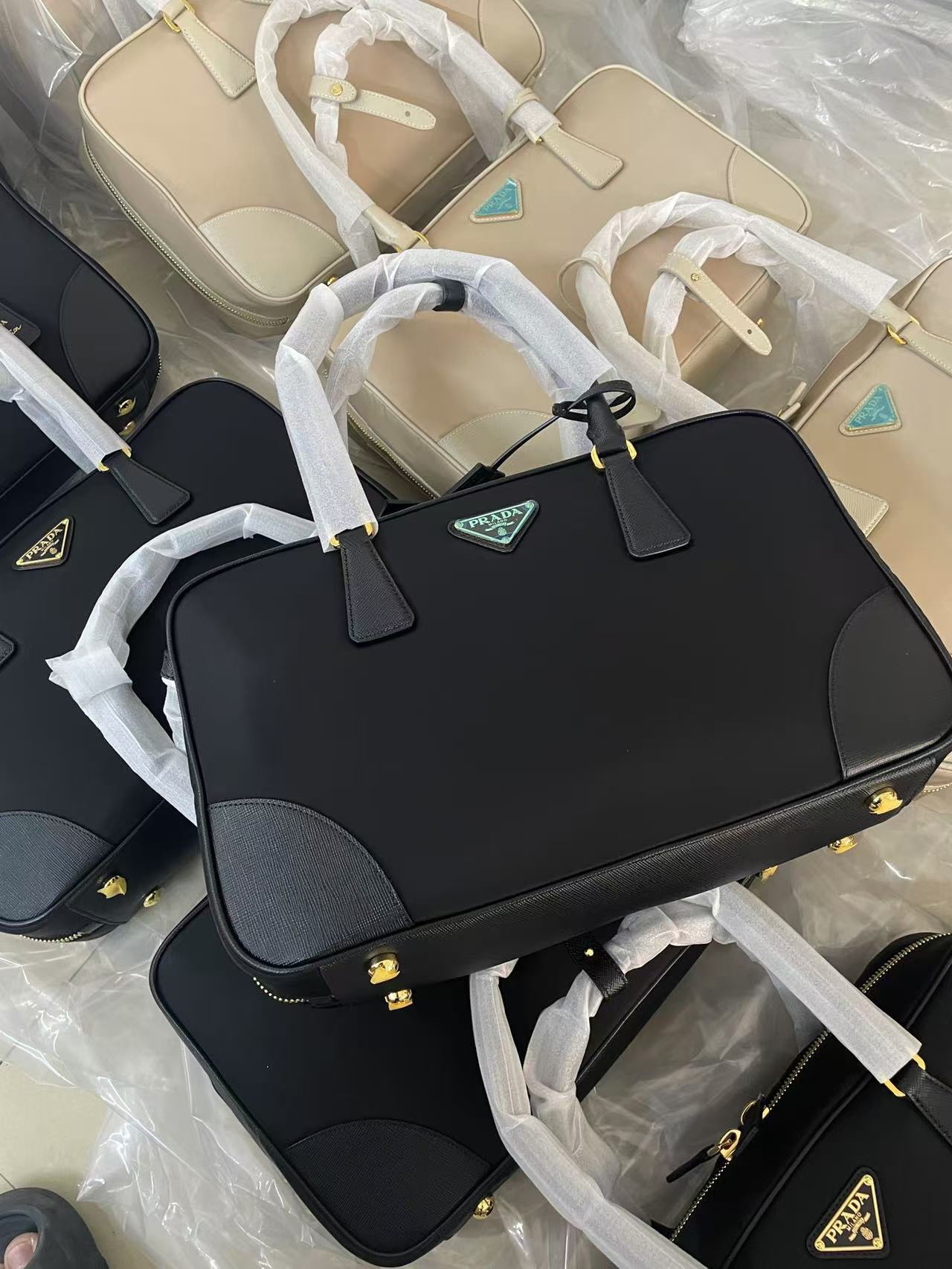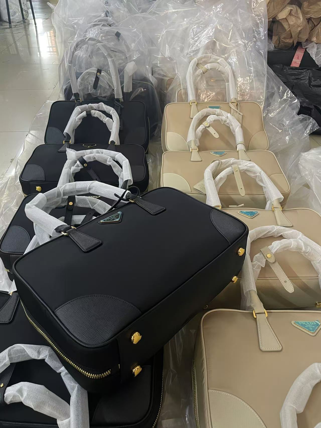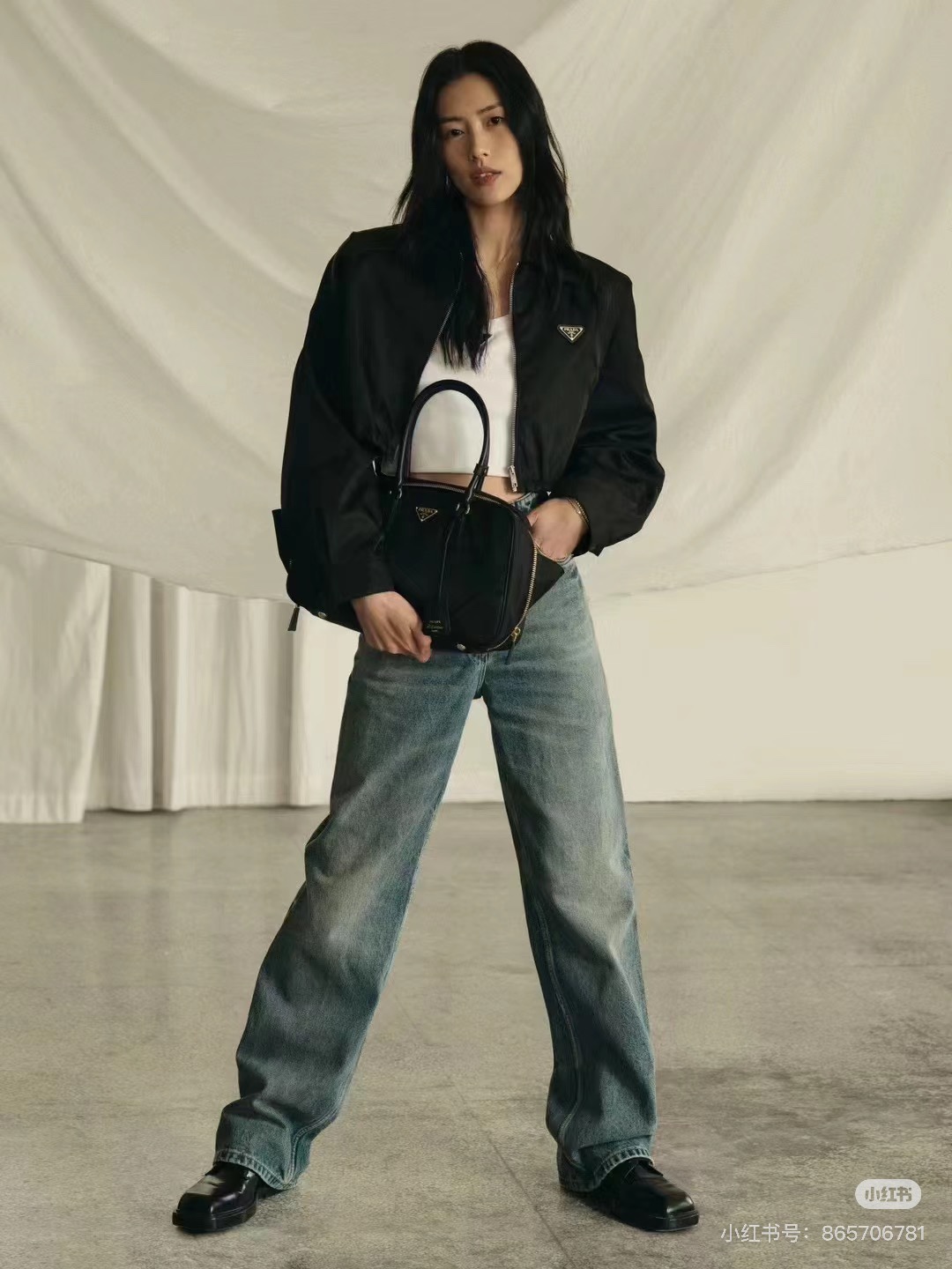 普拉达 24款1978尼龙拼皮保龄球手袋!这一季将复古进行到底,刘雯大表姐同款(MM)