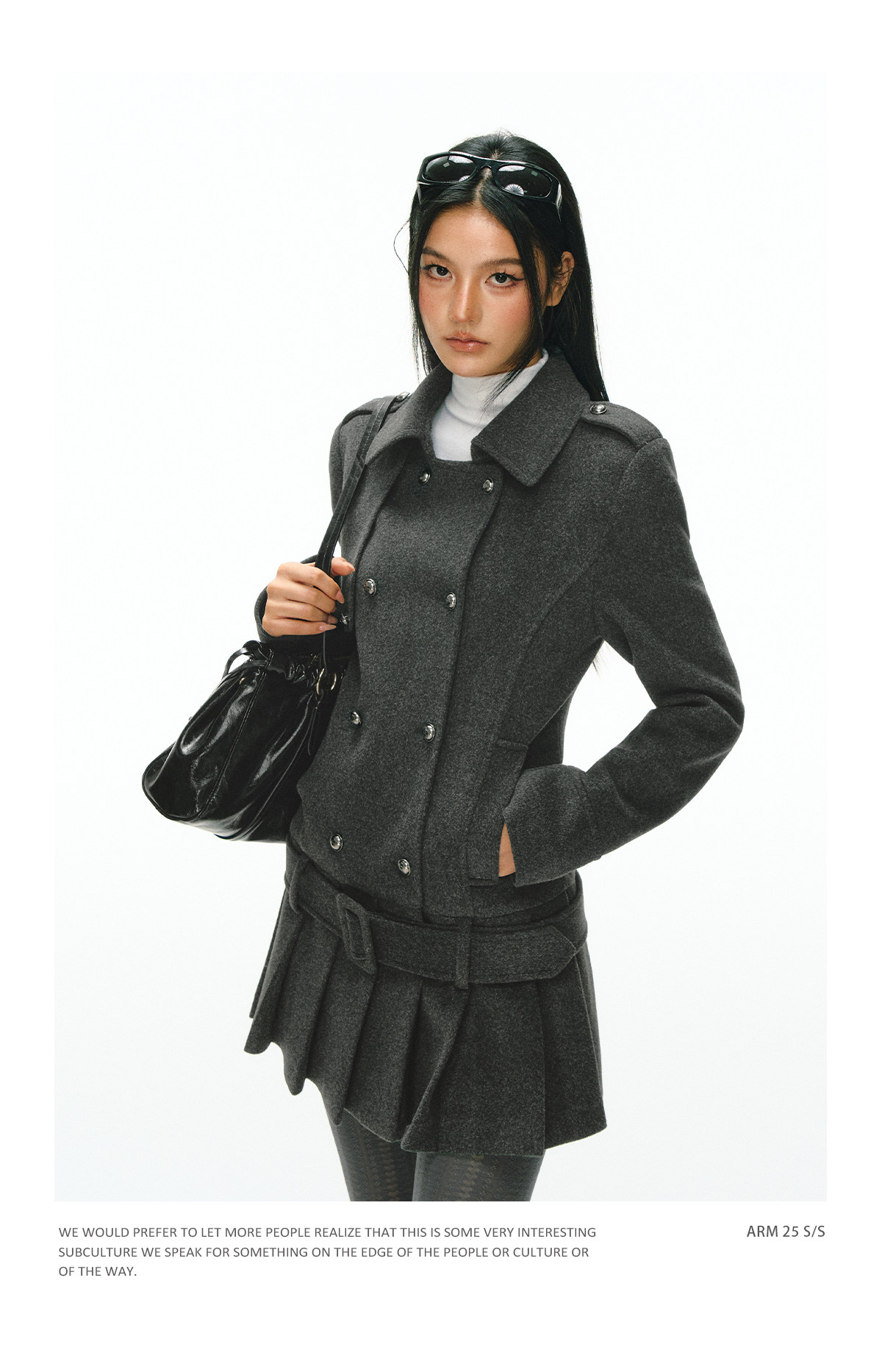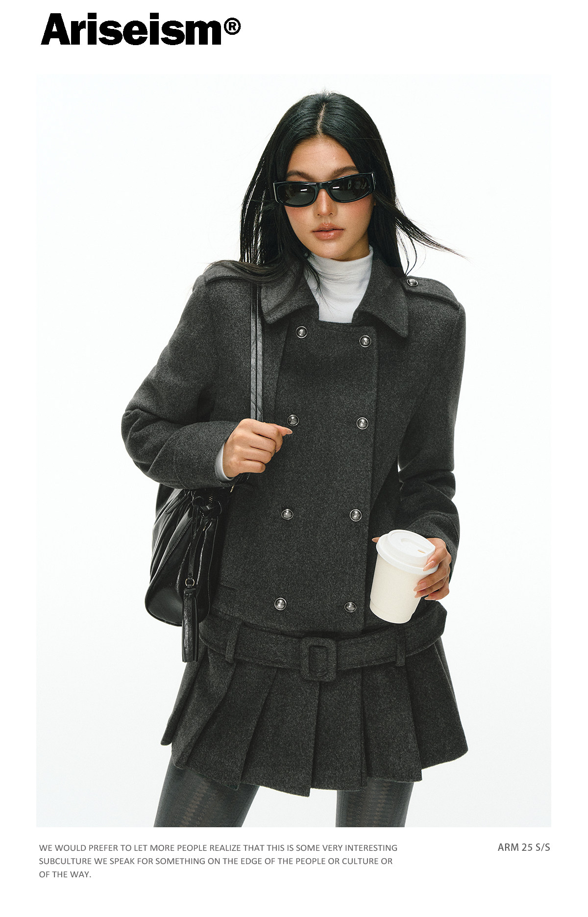 Ariseism 美式复古高级感毛呢连衣裙女秋冬新款裙子