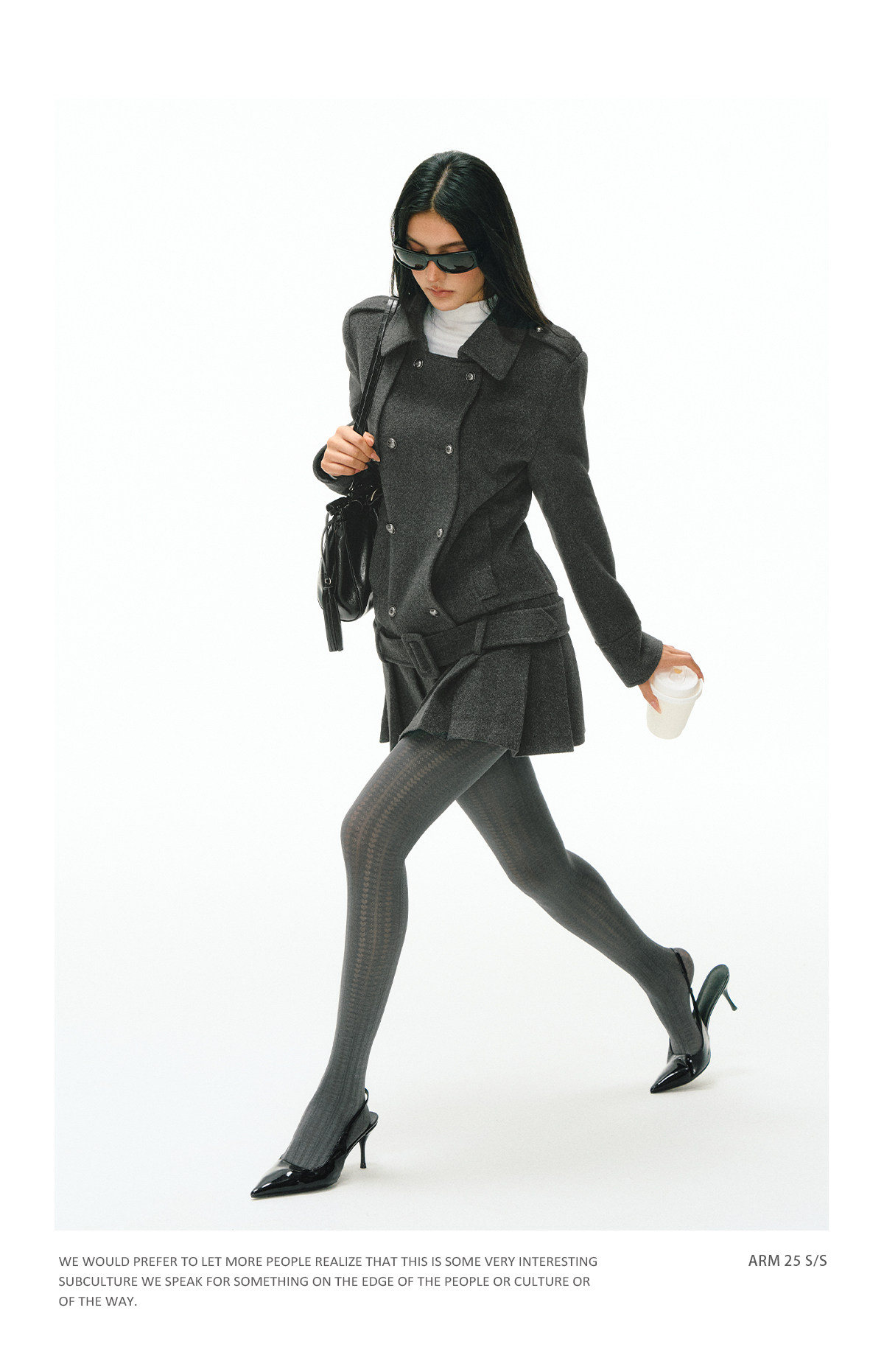 Ariseism 美式复古黑色西装半身短裙女春季新款显瘦裙子