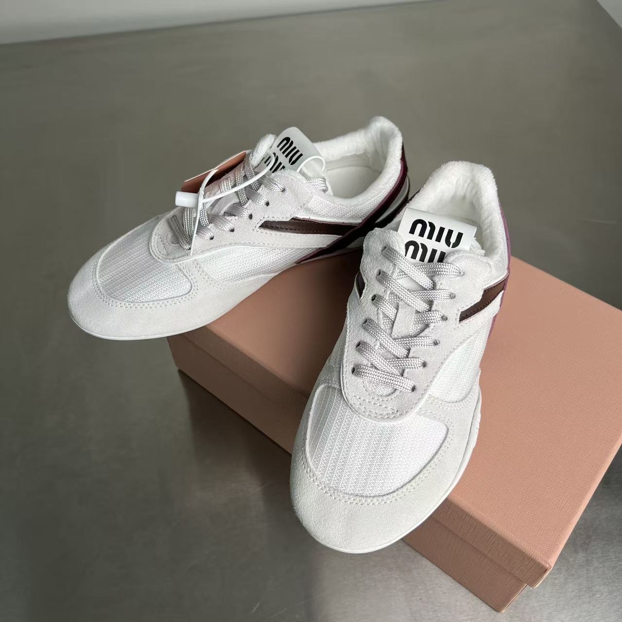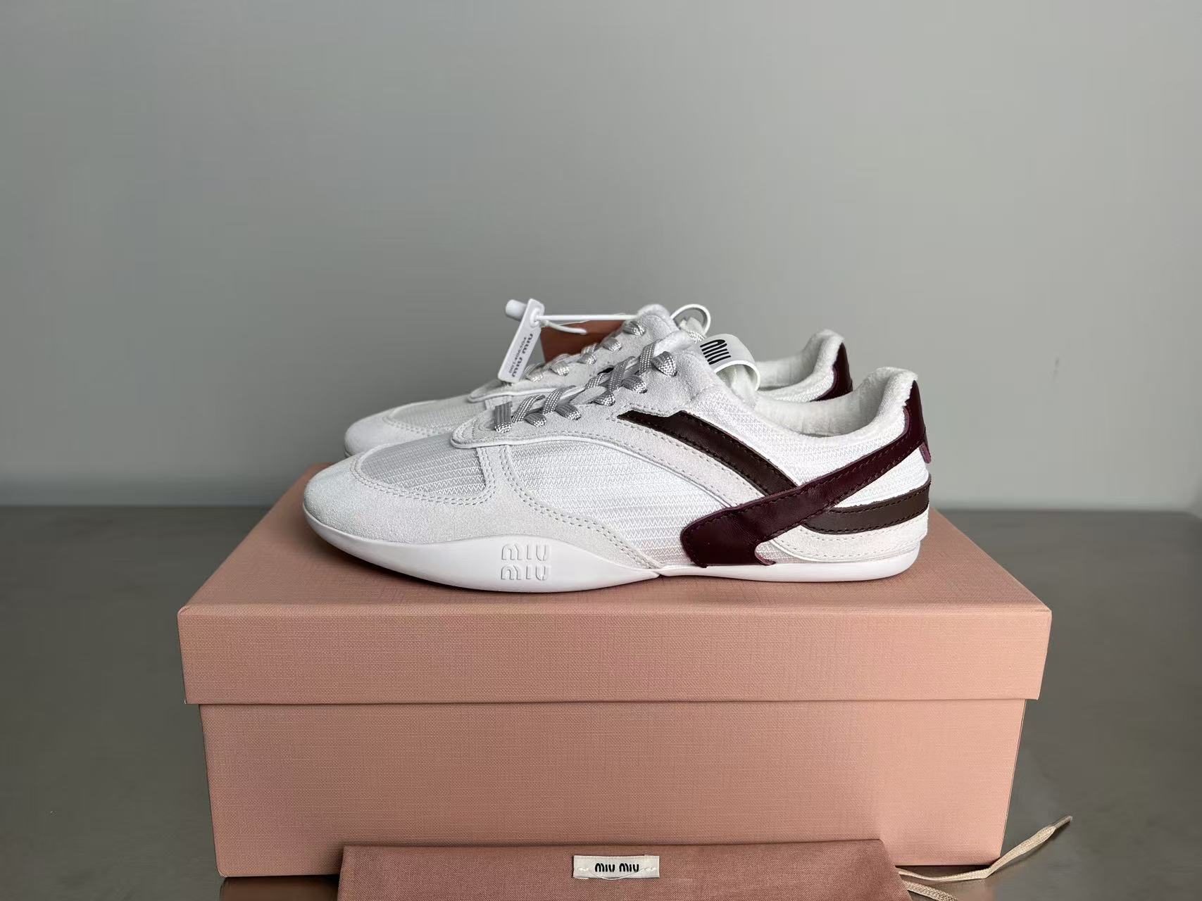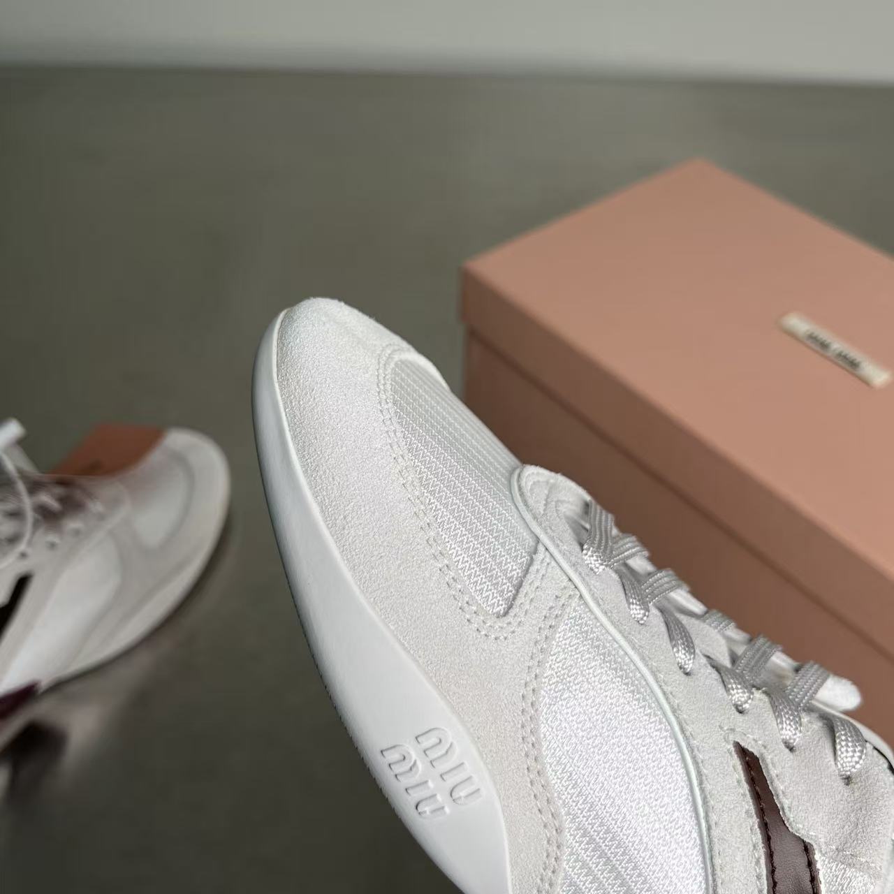 缪缪 女士织物面料与绒面牛皮革运动鞋(DBG)
