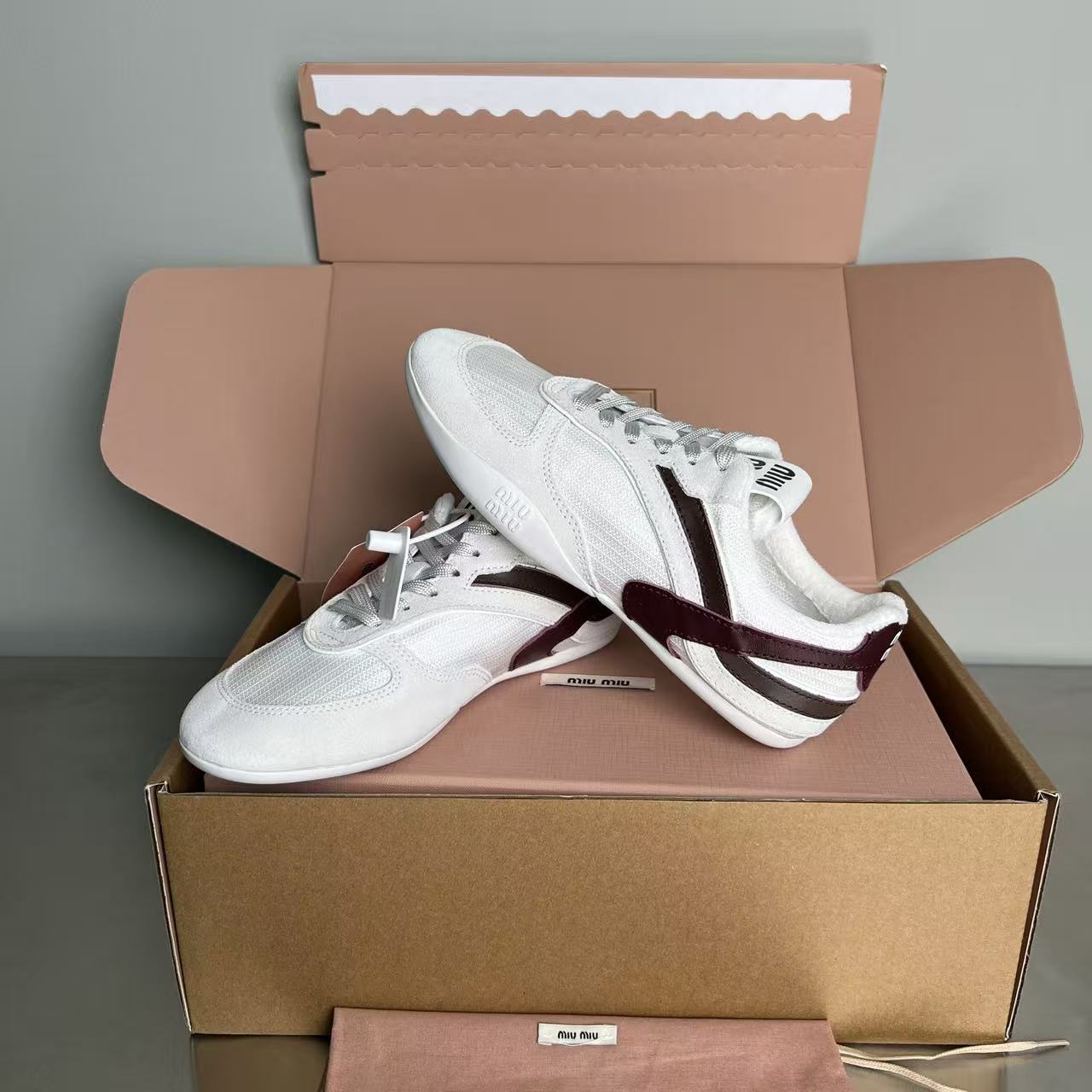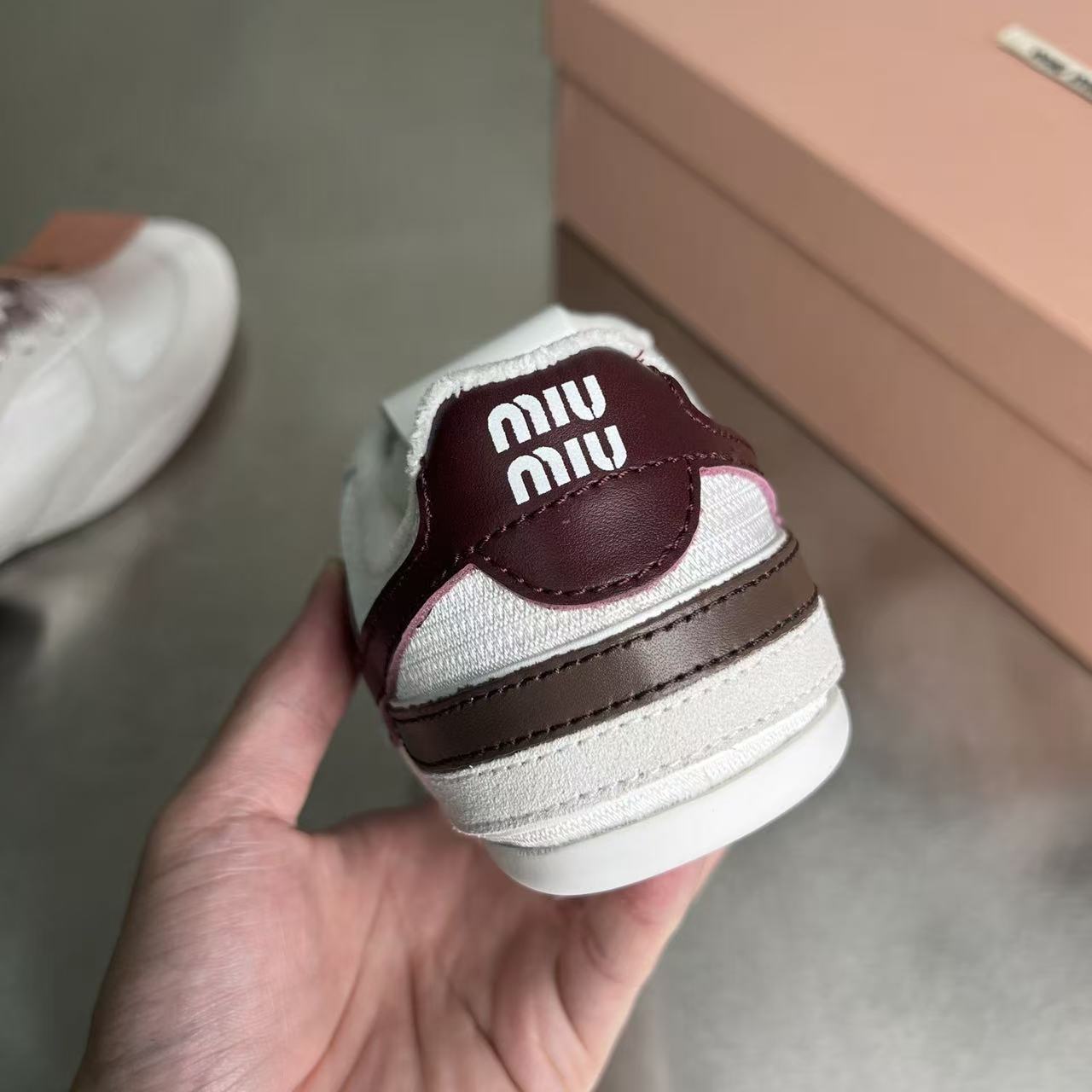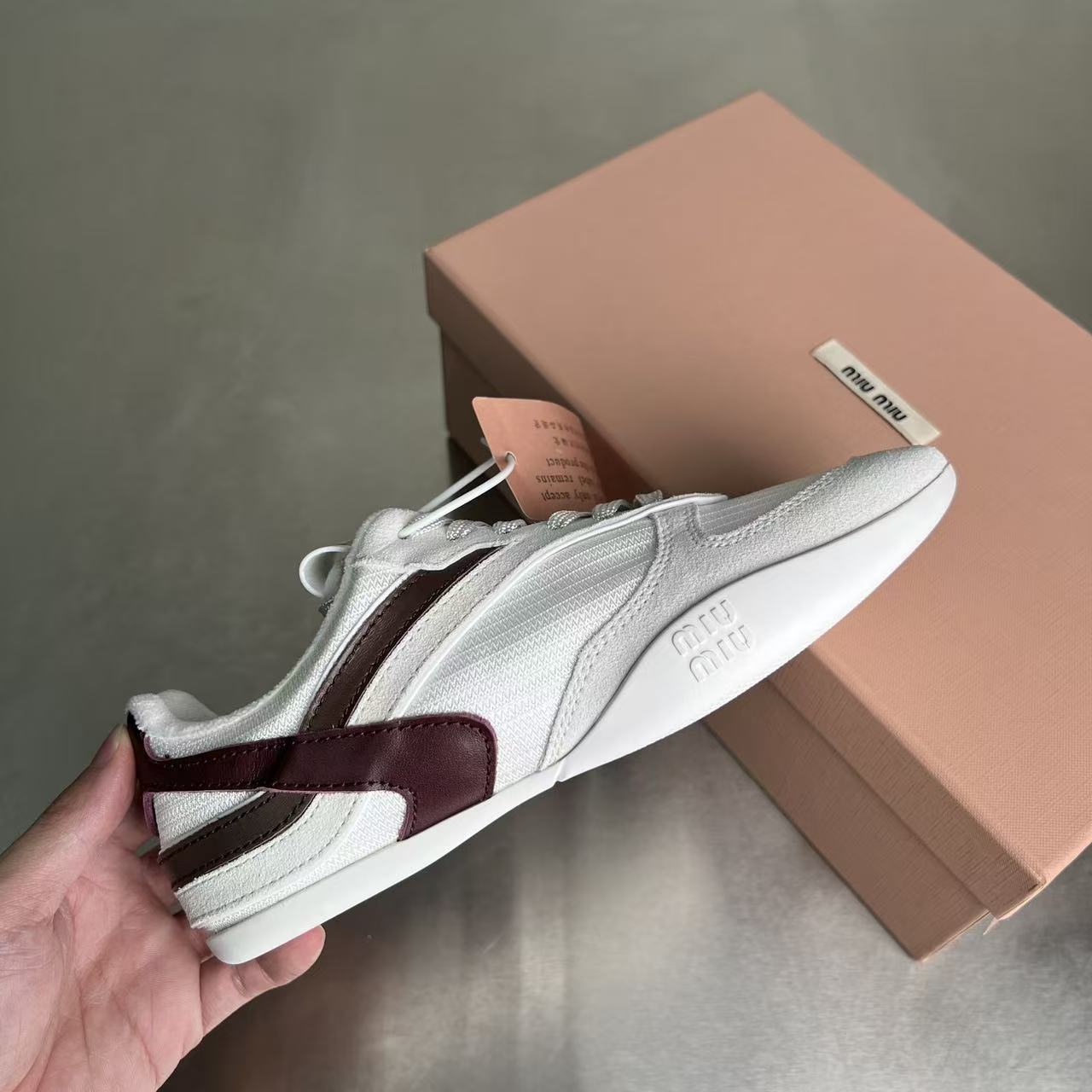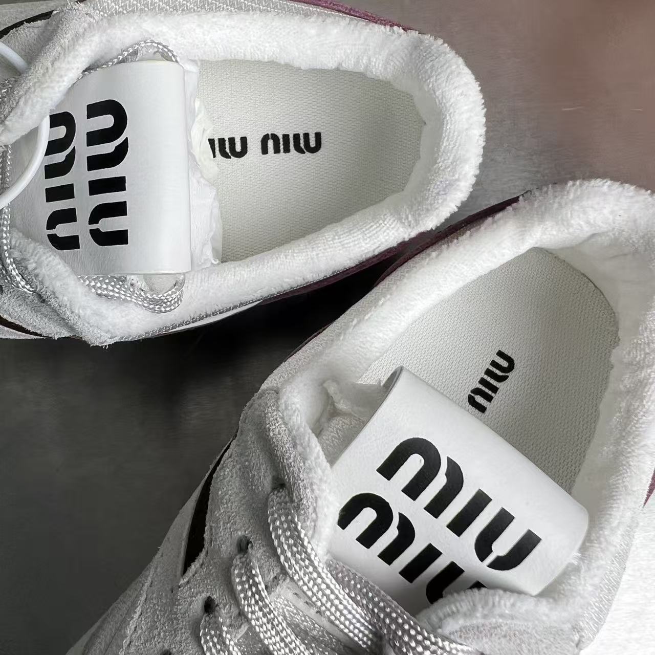 缪缪 女士织物面料与绒面牛皮革运动鞋(DBG)