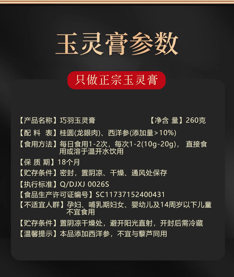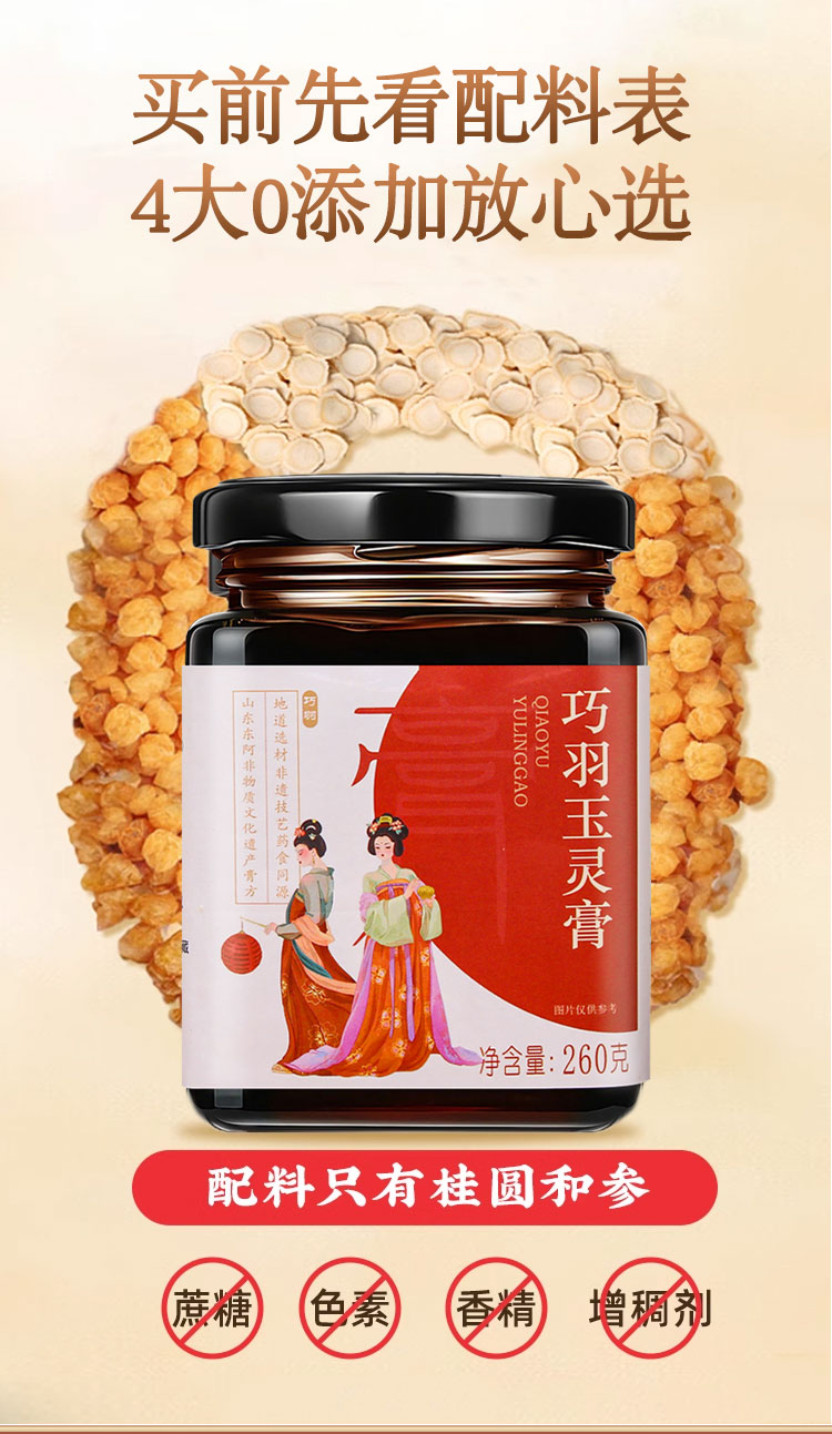 巧羽玉灵膏蒸桂圆补气养血西洋参玉灵膏气色安神助眠官方旗舰店