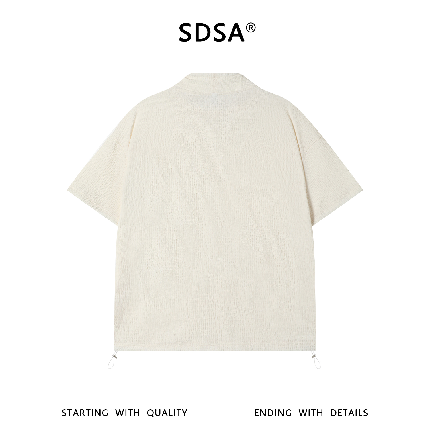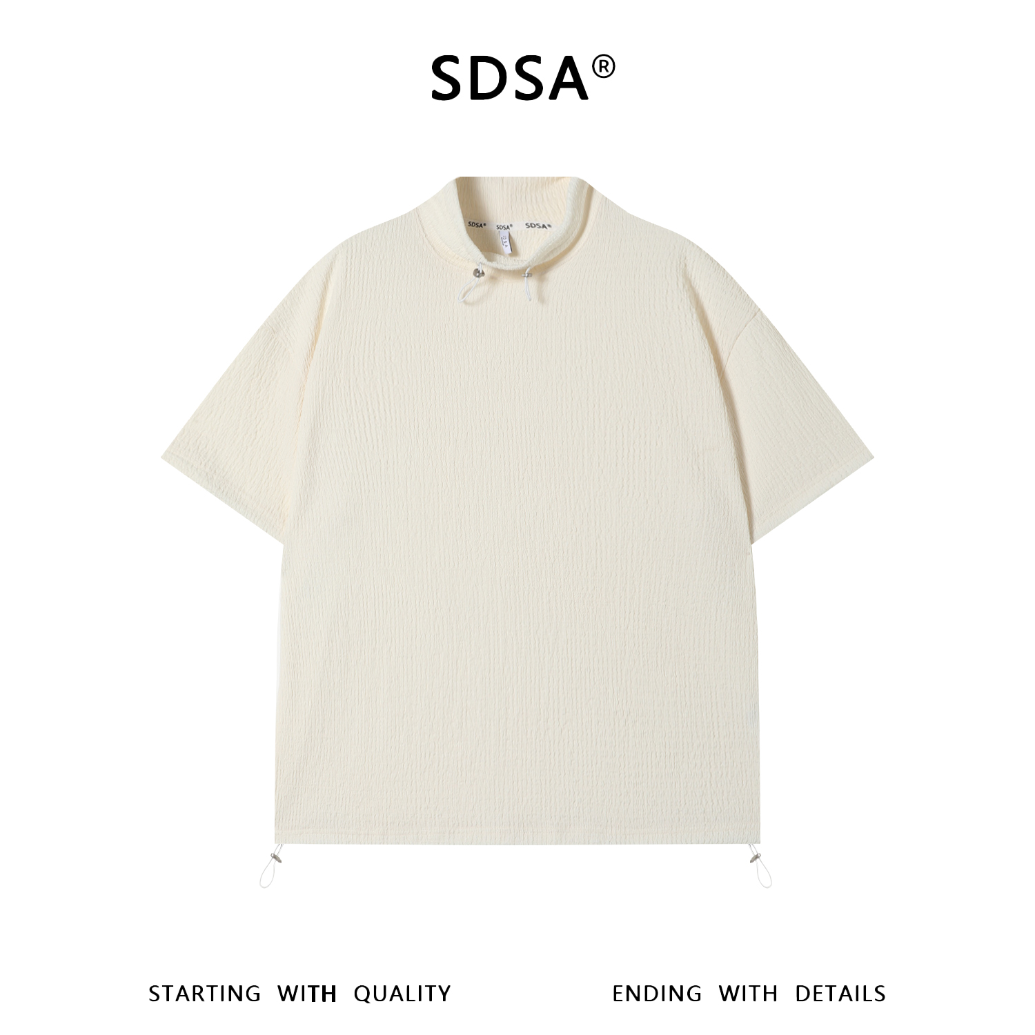SDSA男装2026新款华夫格新中式盘扣抽绳短袖T恤宽松立领休闲上衣