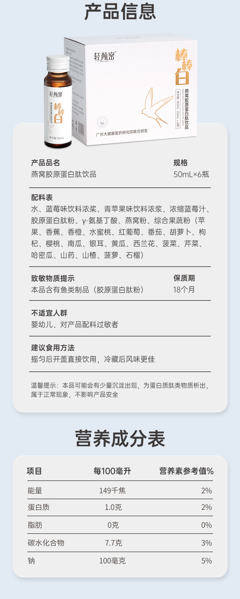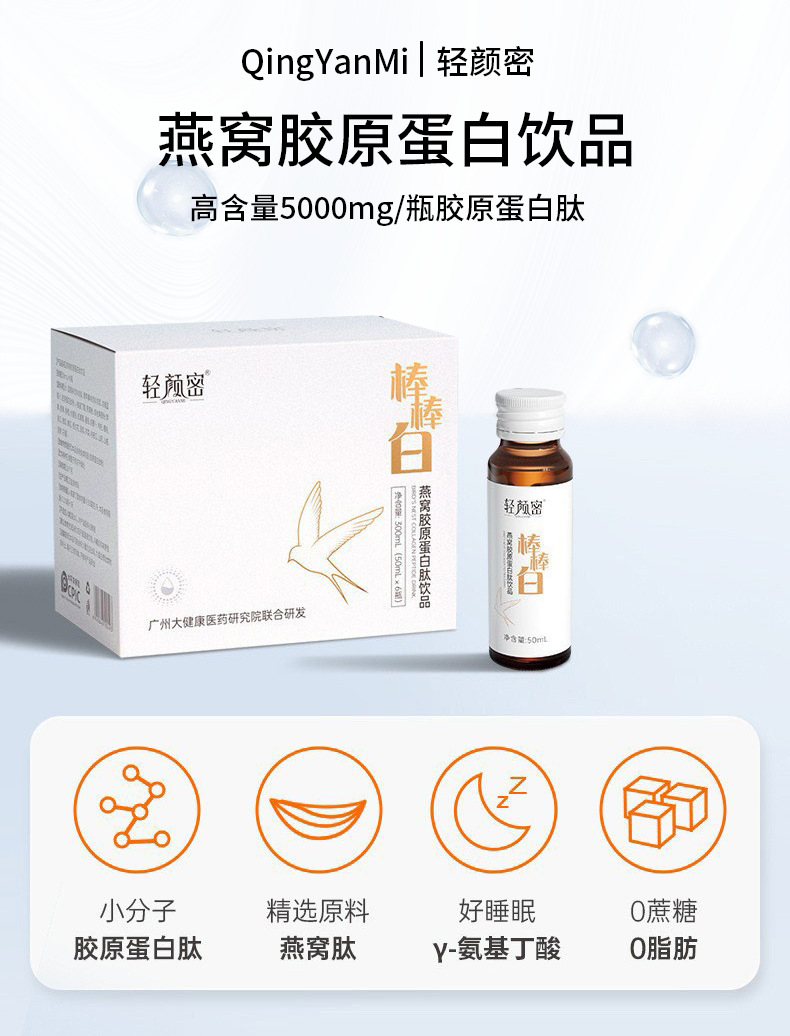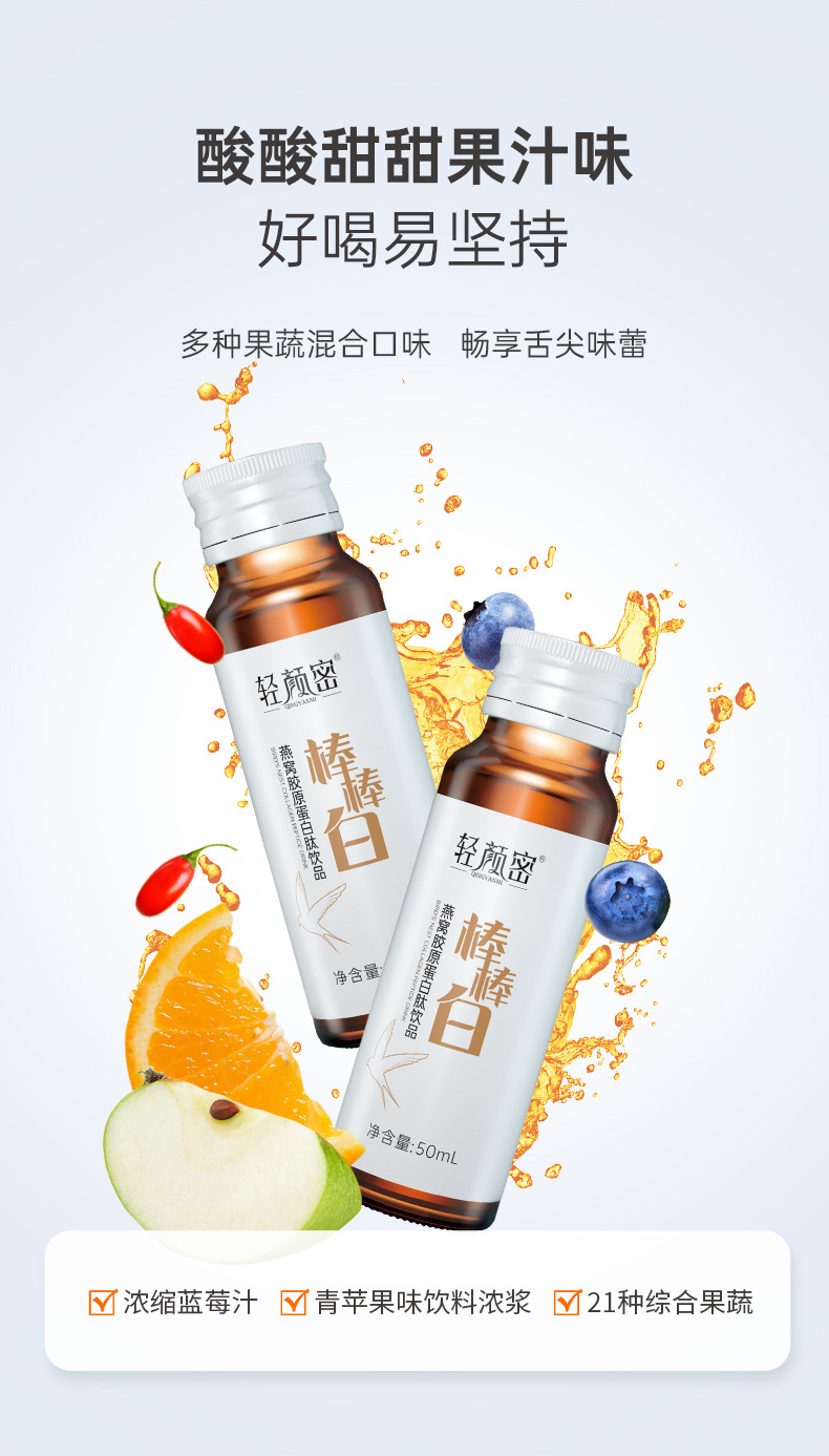 轻颜密 燕窝胶原蛋白肽口服液 50ml*6瓶 氨基丁酸活性态胶原蛋白饮品 美白饮多种果蔬混合口味 畅享舌尖味蕾 酸酸甜甜果汁味 好喝易坚持