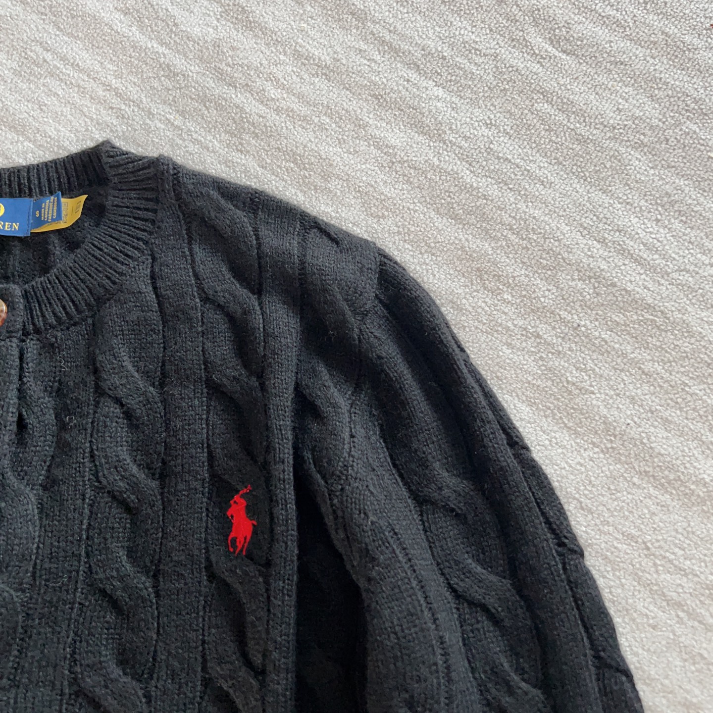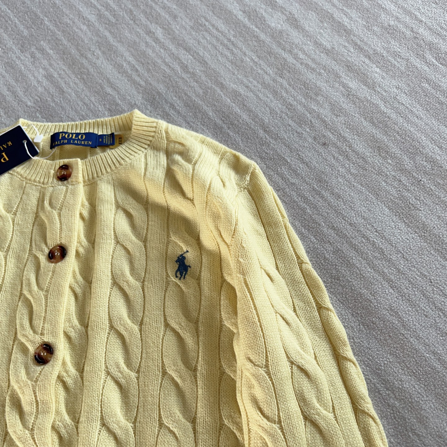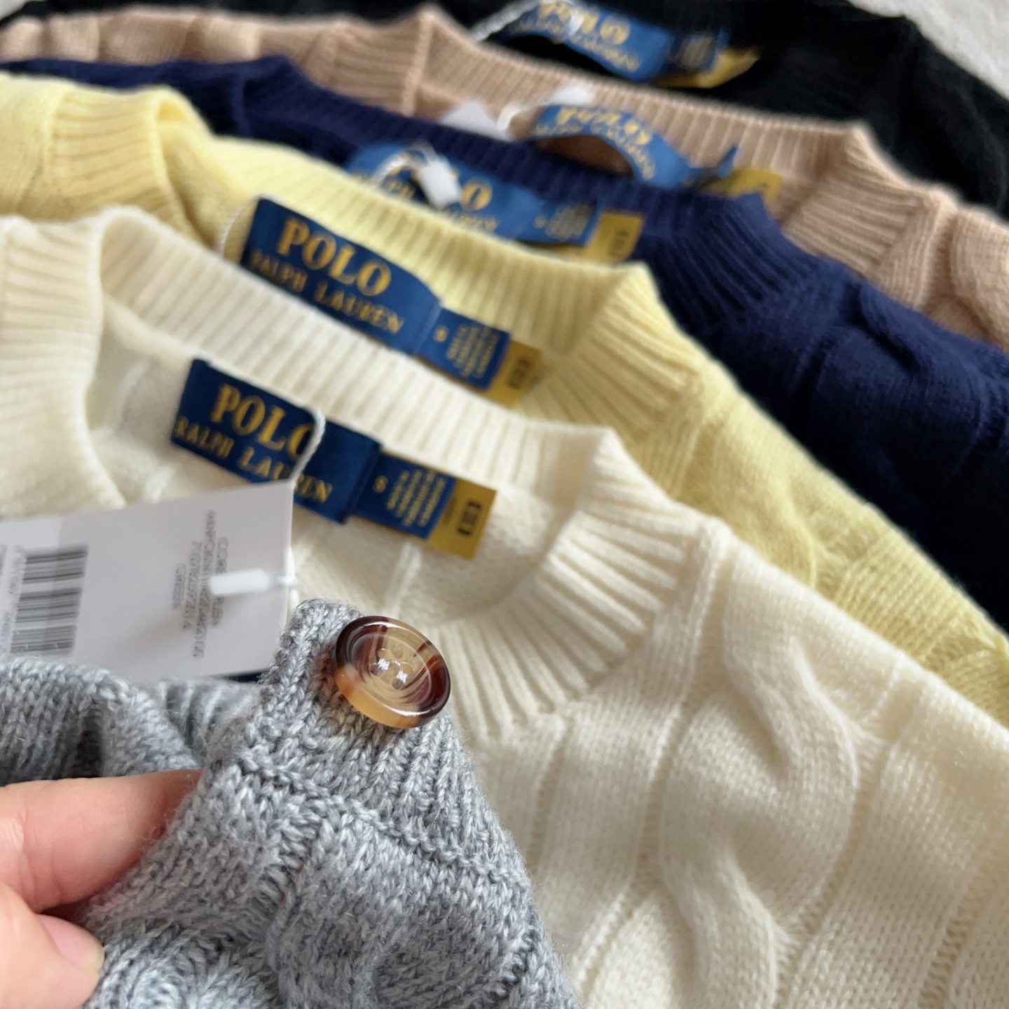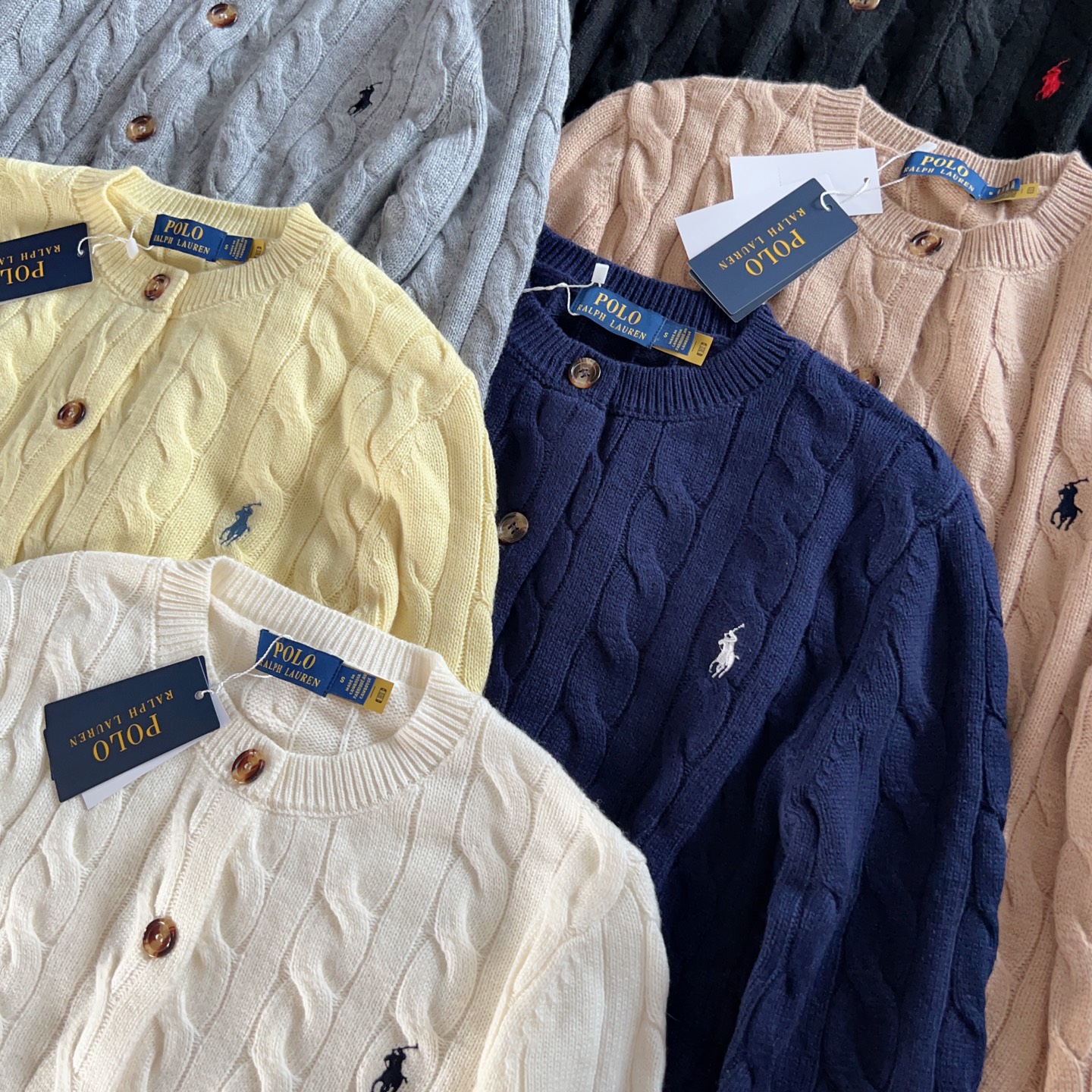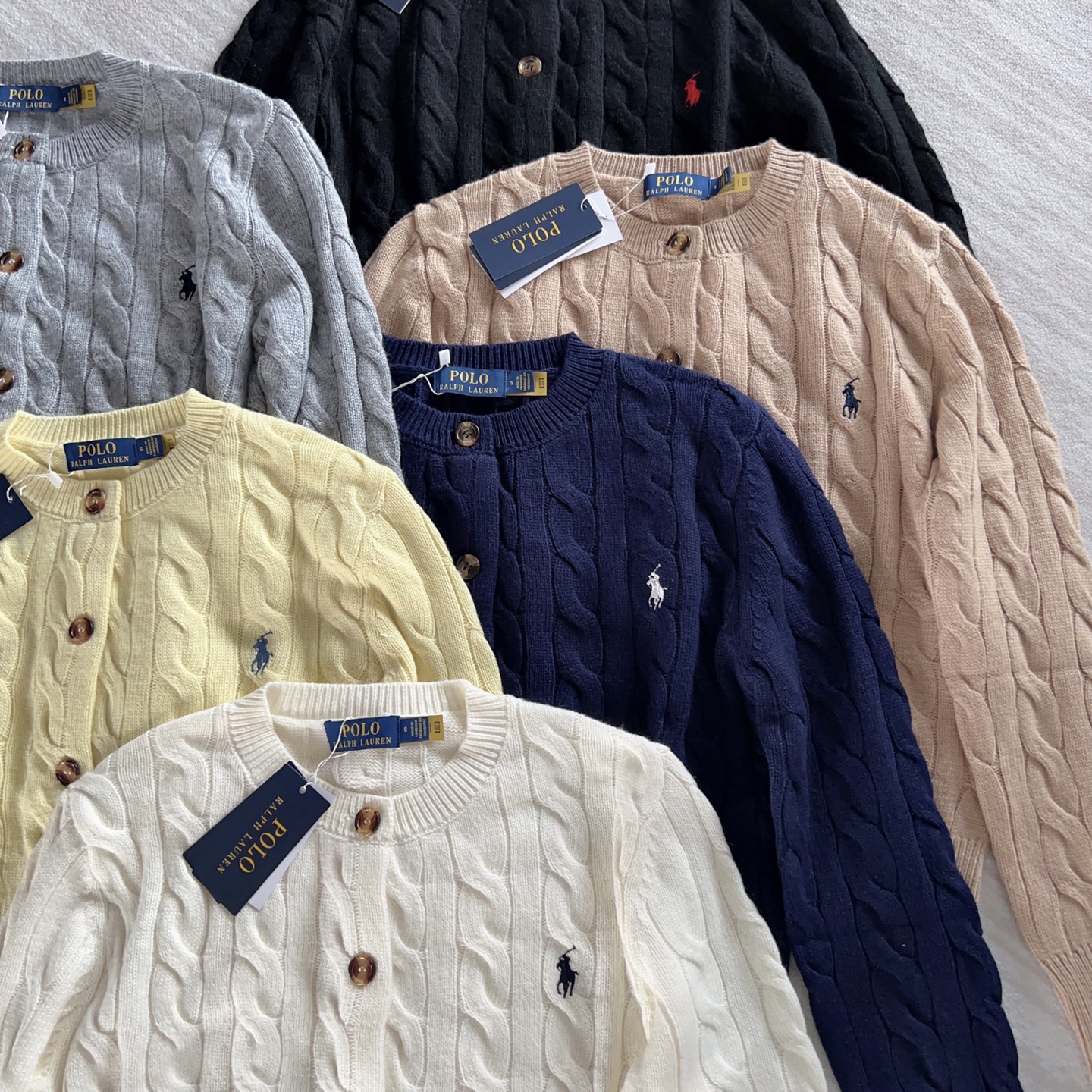 上新 ❤️ RL Polo 绞花编结针织羊毛开衫 羊毛混纺面料 蓬松柔软,保暖亲肤舒适,版型常规偏大一点,腰身与肩线利落贴合,袖长会偏长一点但不影响,袖口有做收紧,绞花纹理纵向延伸,视觉上显瘦显薄,轻松隐藏腰腹赘肉,无论什么身材都能穿出优雅曲线。 左胸经典小🐎标采用精密刺绣工艺,绣工精湛,彰显品牌身份,低调又不失格调 。天然牛角扣开襟,延续品牌经典设计,质感十足,开合顺滑,基础百搭,强烈推荐 包装吊牌齐全 亲人自留都合适。 6️⃣色可选 黑色藏青白色卡其 灰色 鹅黄 码数 S M L