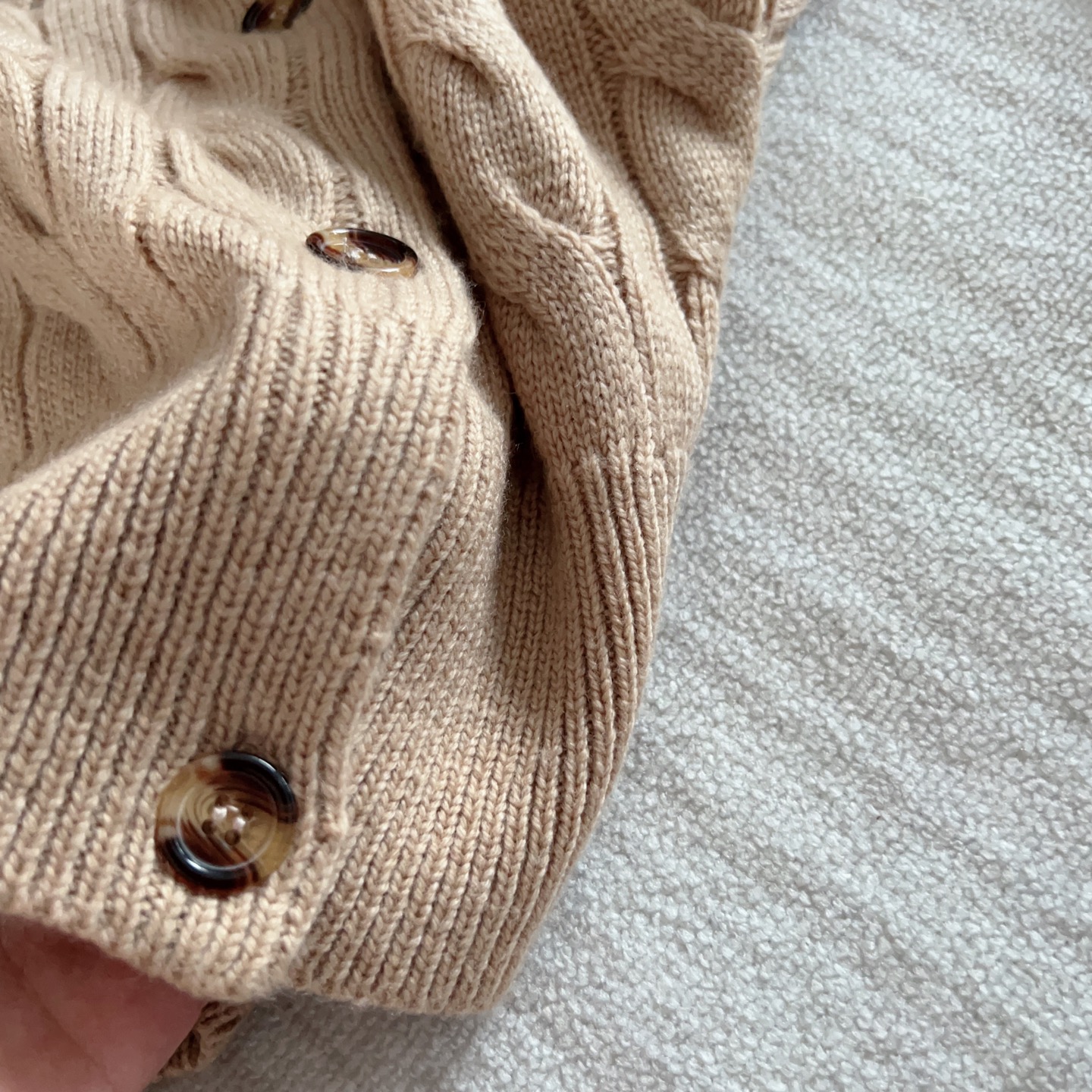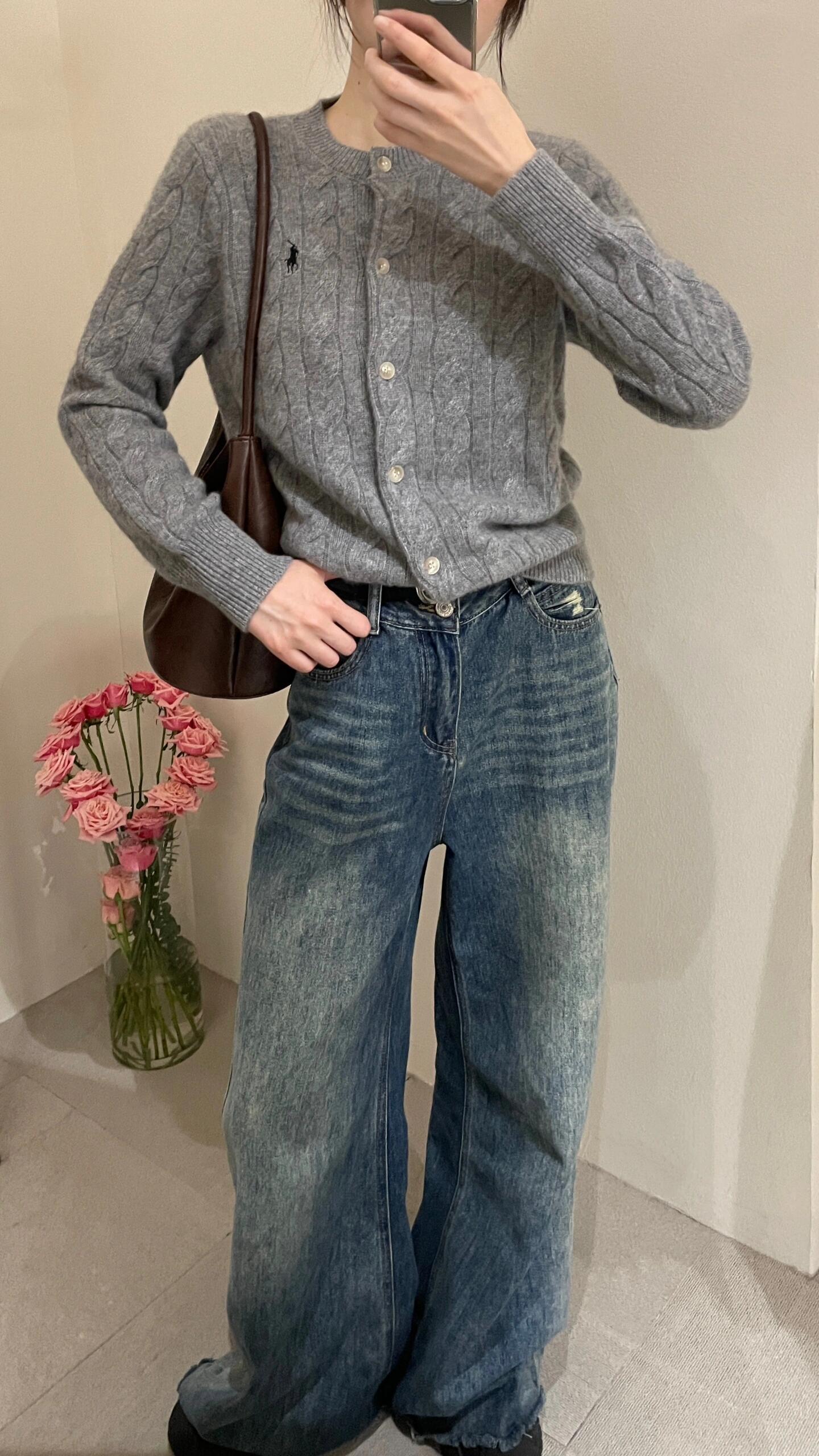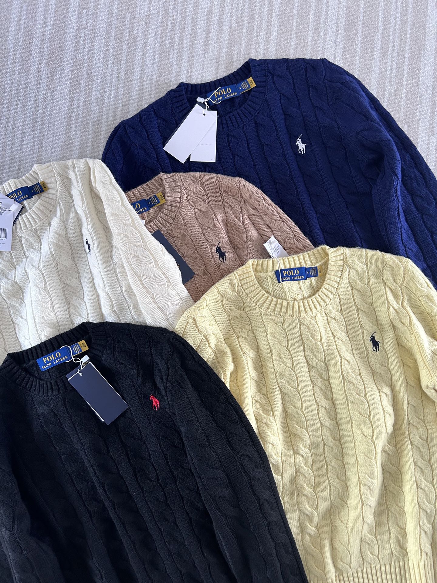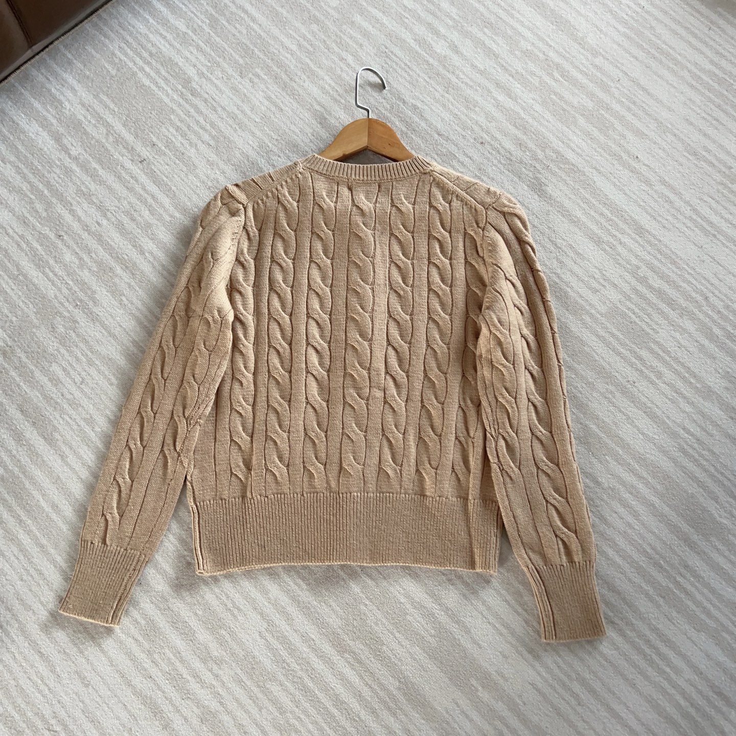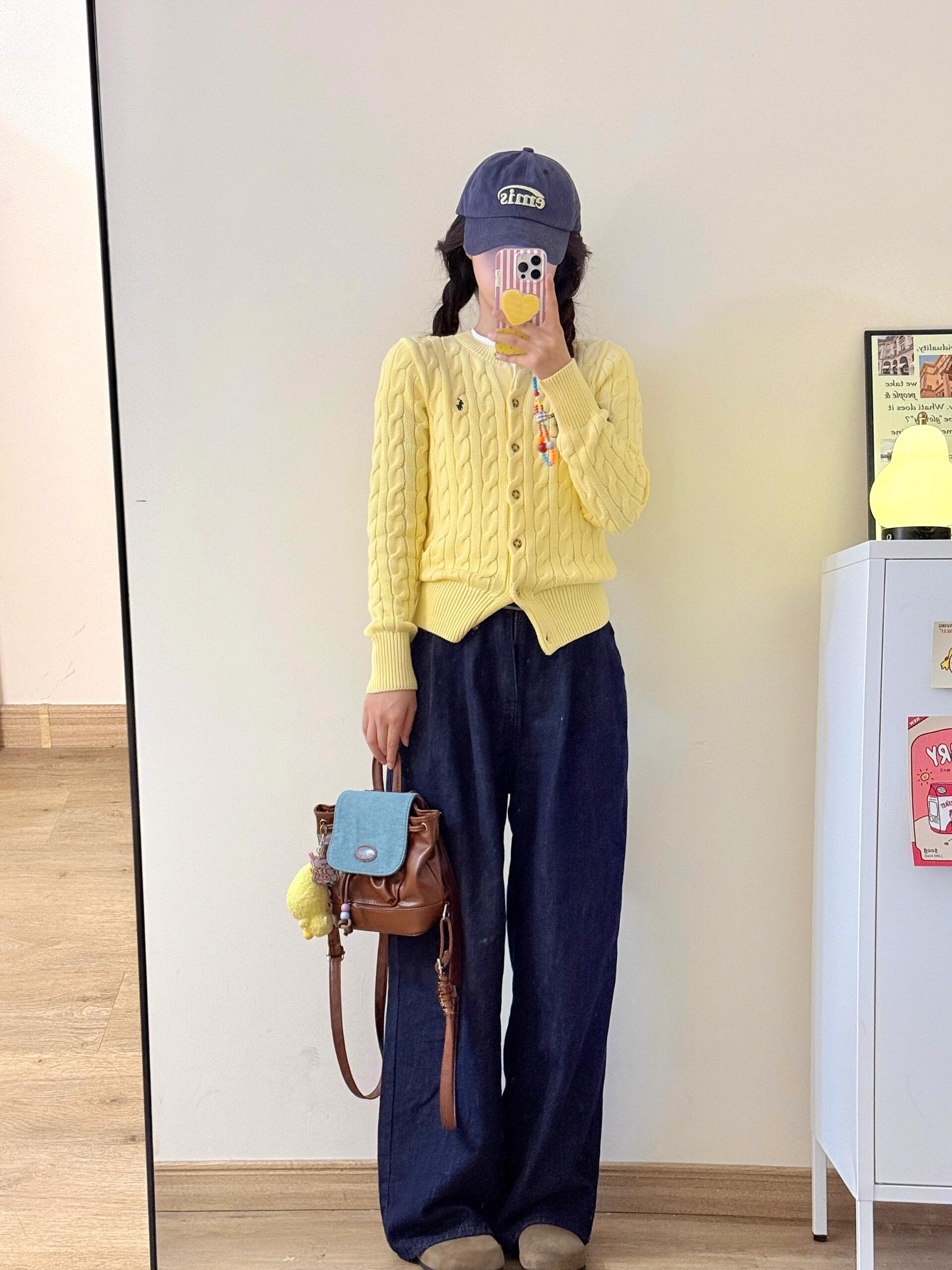 上新 ❤️ RL Polo 绞花编结针织羊毛开衫 羊毛混纺面料 蓬松柔软,保暖亲肤舒适,版型常规偏大一点,腰身与肩线利落贴合,袖长会偏长一点但不影响,袖口有做收紧,绞花纹理纵向延伸,视觉上显瘦显薄,轻松隐藏腰腹赘肉,无论什么身材都能穿出优雅曲线。 左胸经典小🐎标采用精密刺绣工艺,绣工精湛,彰显品牌身份,低调又不失格调 。天然牛角扣开襟,延续品牌经典设计,质感十足,开合顺滑,基础百搭,强烈推荐 包装吊牌齐全 亲人自留都合适。 6️⃣色可选 黑色藏青白色卡其 灰色 鹅黄 码数 S M L
