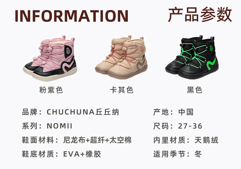 1.24号中午12点截单 2.5号恢复发货 鞋垫加绒❗️【NOMII系列】CHUCHUNA丘丘纳NOMII系列高帮抽绳加绒雪地靴