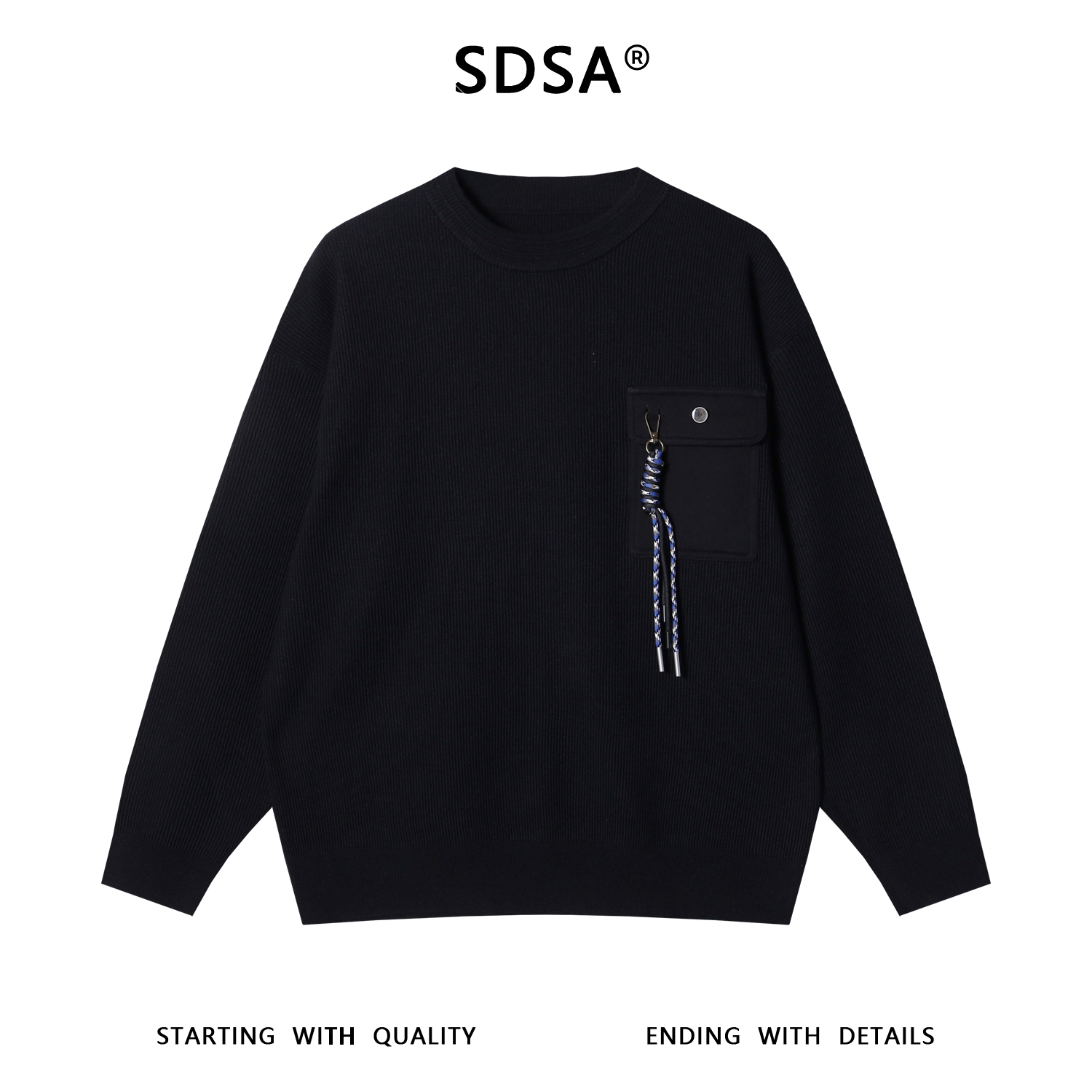 257167SDSA男士秋冬新款痞帅男装设计师纯色小众设计领口毛衣百搭针织衫