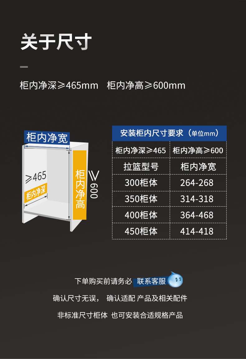 拉篮质保5年,导轨质保1年,质保期内质量问题免费维修或更换,非质量问题售出不退不换