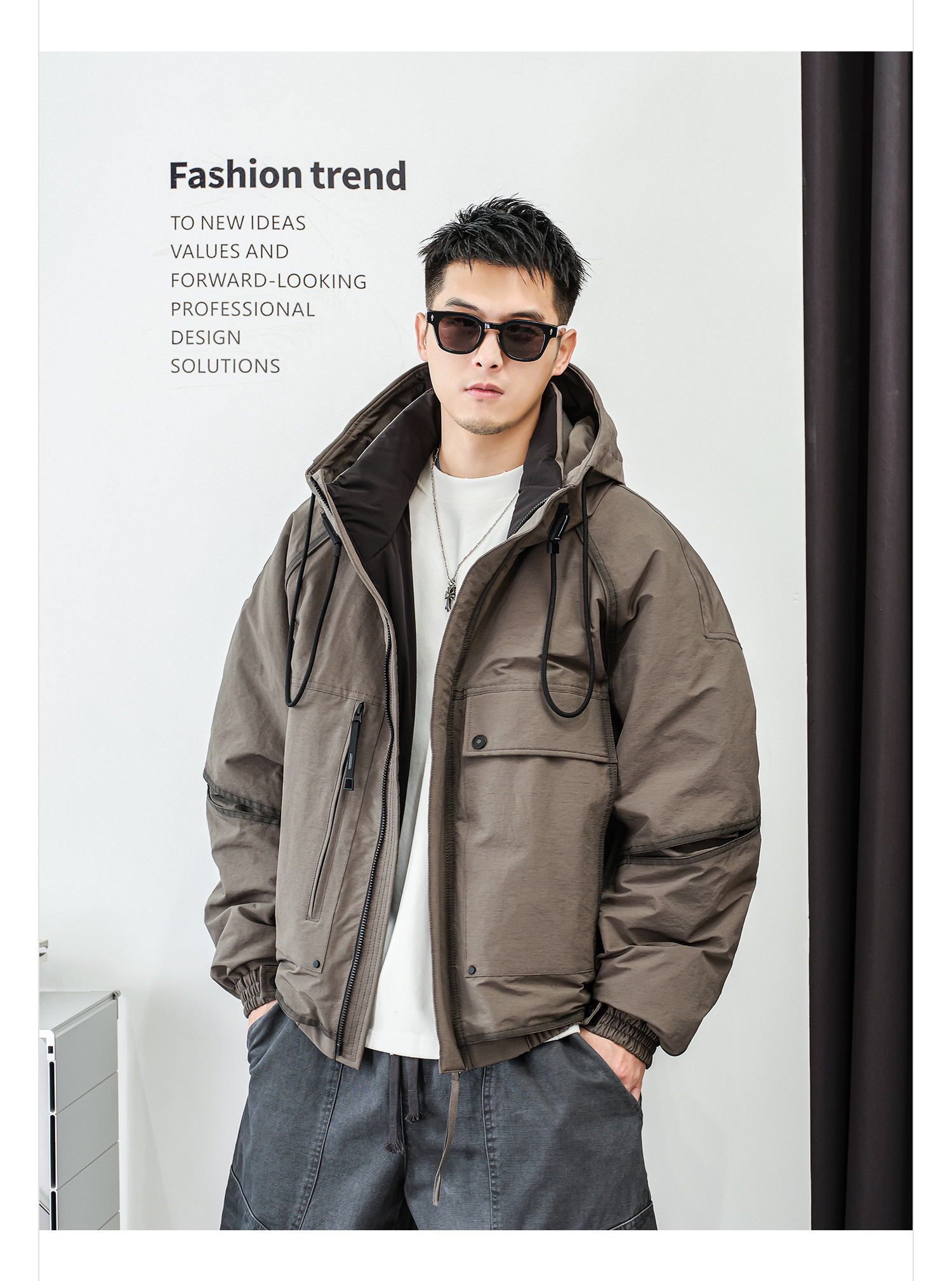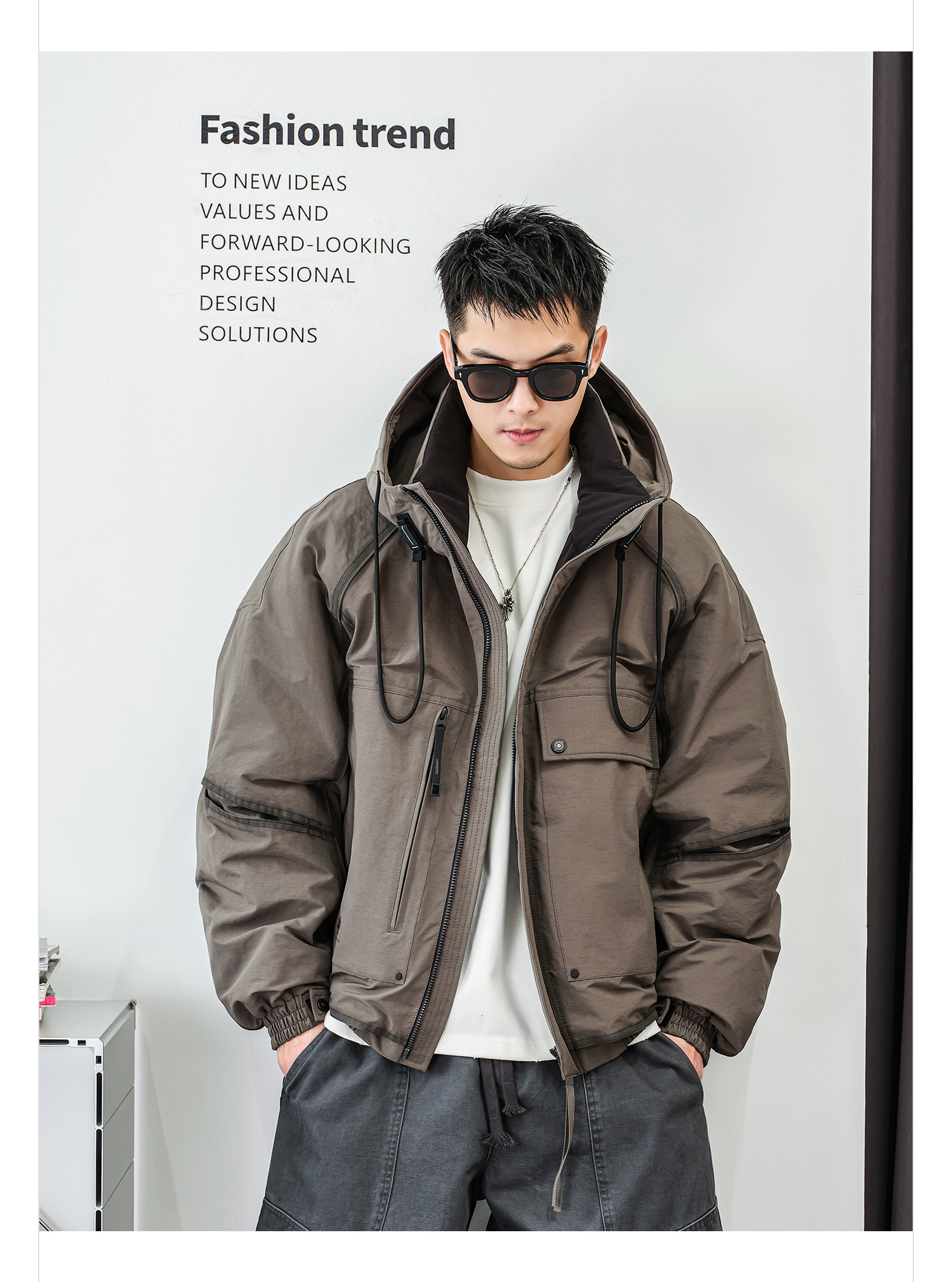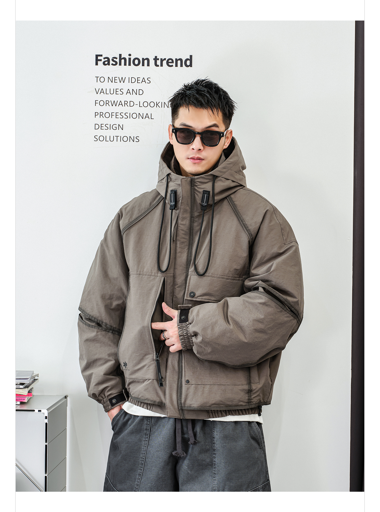 徐太浪【白鹅绒 拉链明线】连帽羽绒服男冬季厚款保暖防寒服外套
